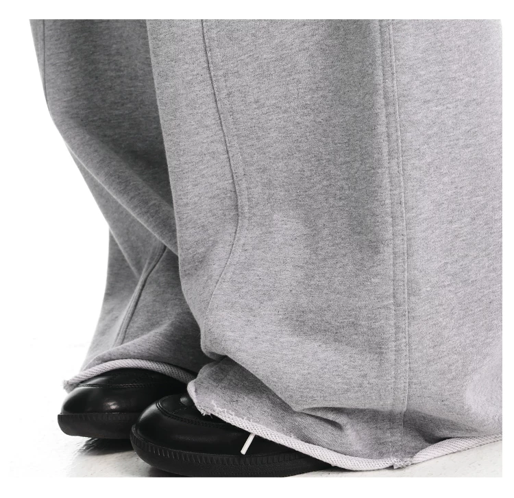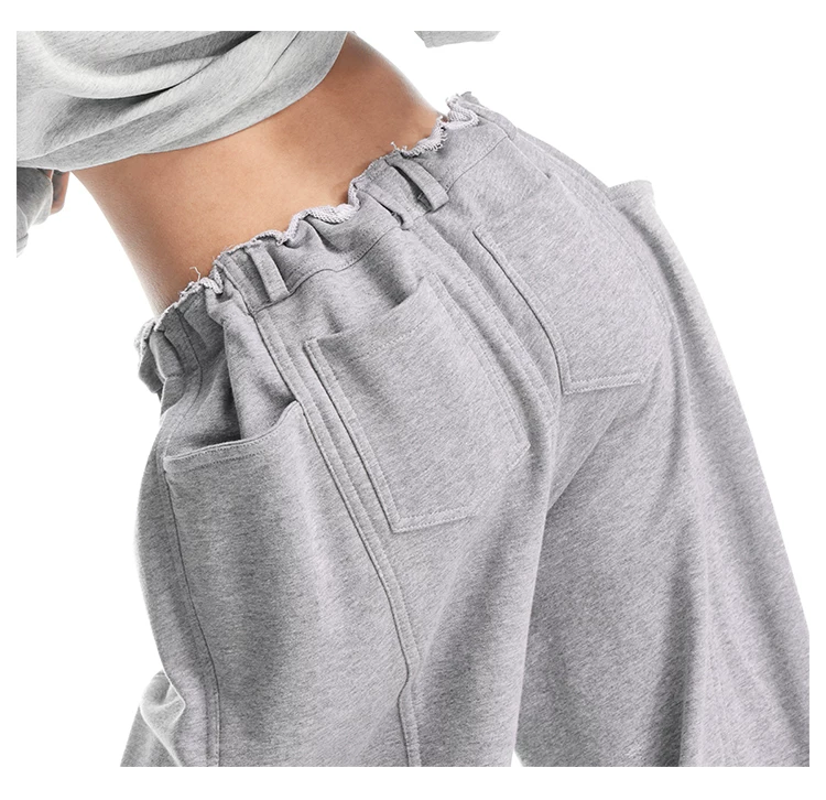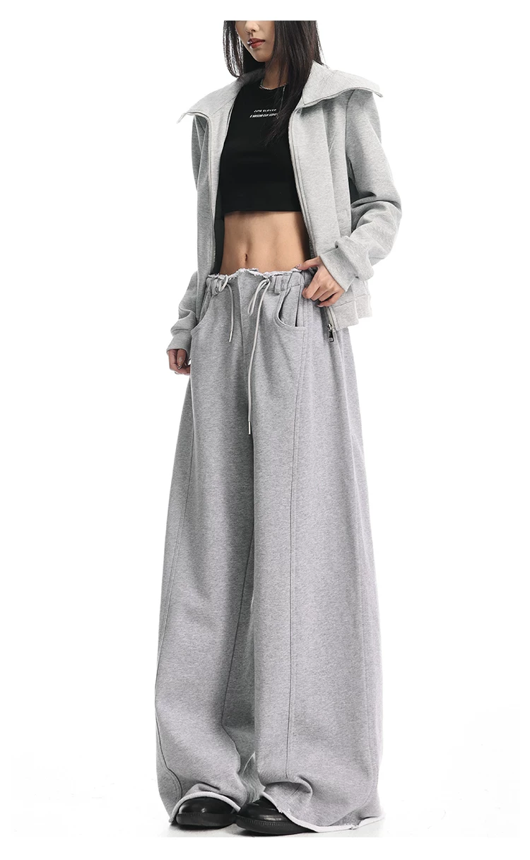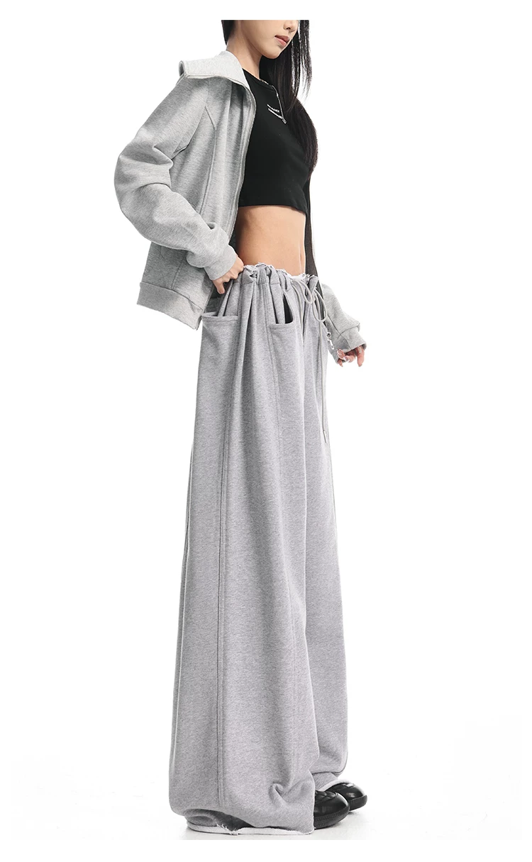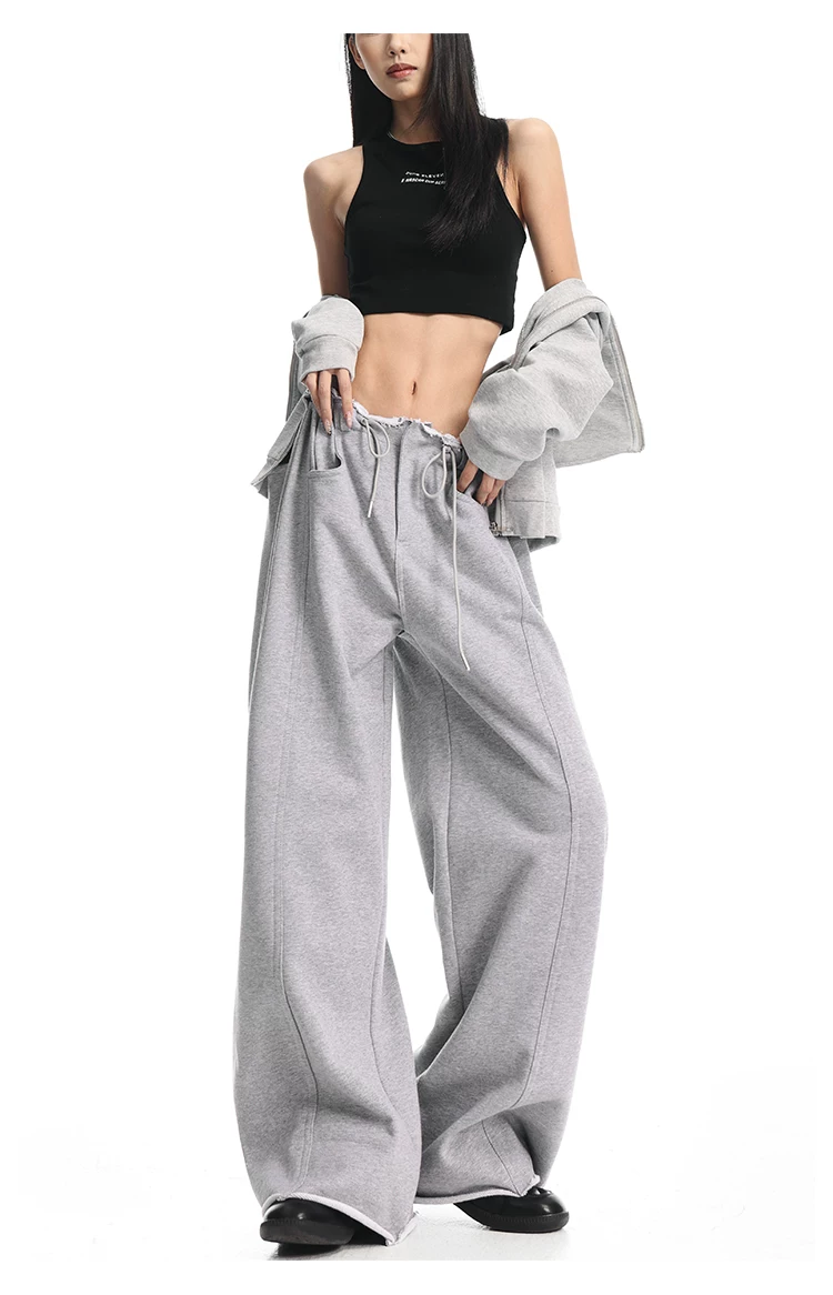 - KEN STUDIO Xuân Thu Mới Màu Xám Dây Rút Quần Âu Nữ Cao Cấp Quần Ống Rộng Quần Dài Tới Chân
