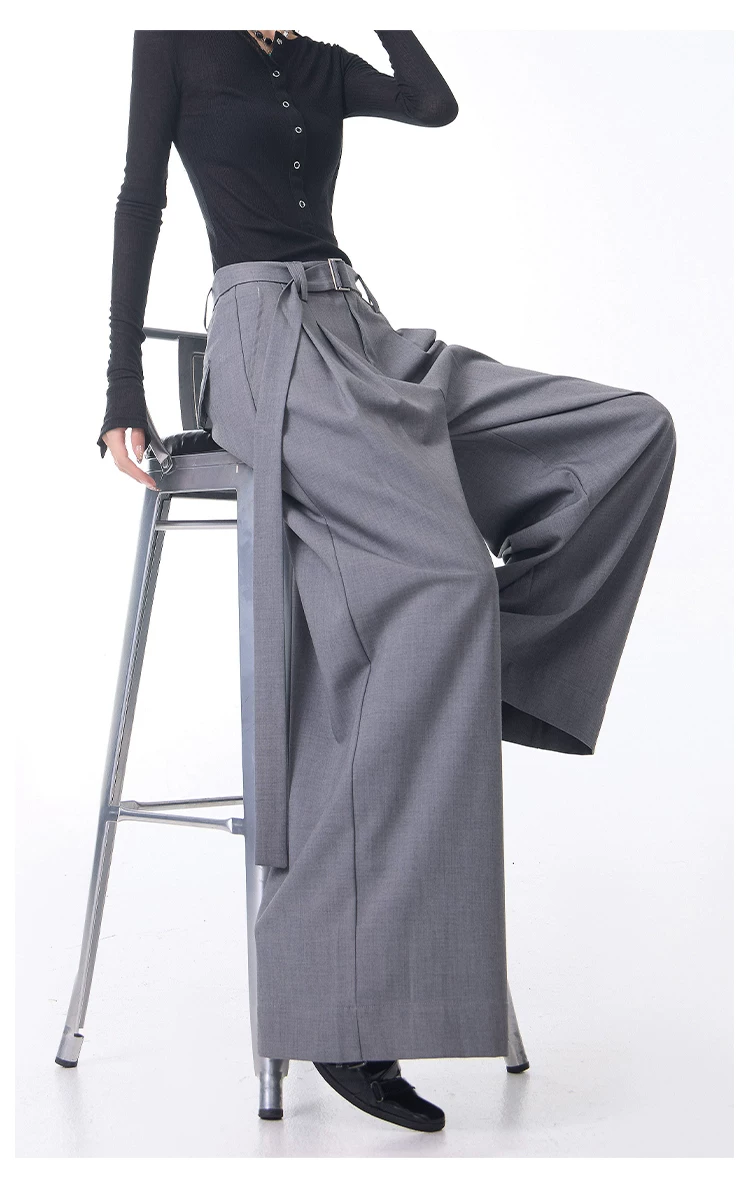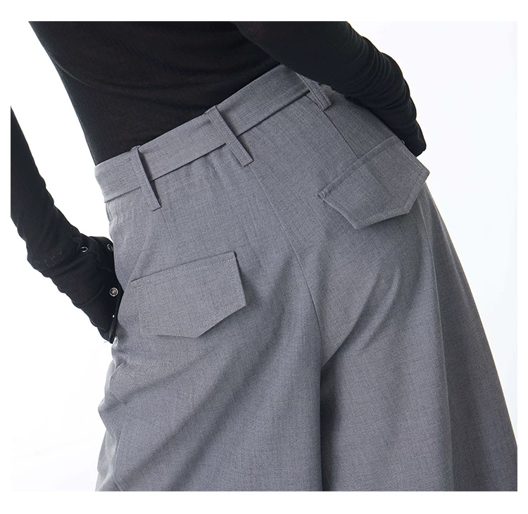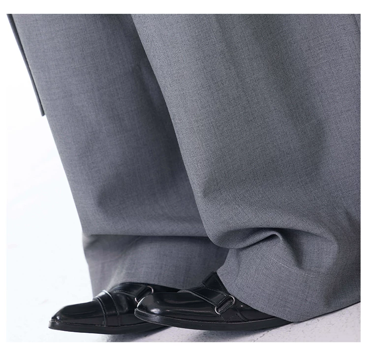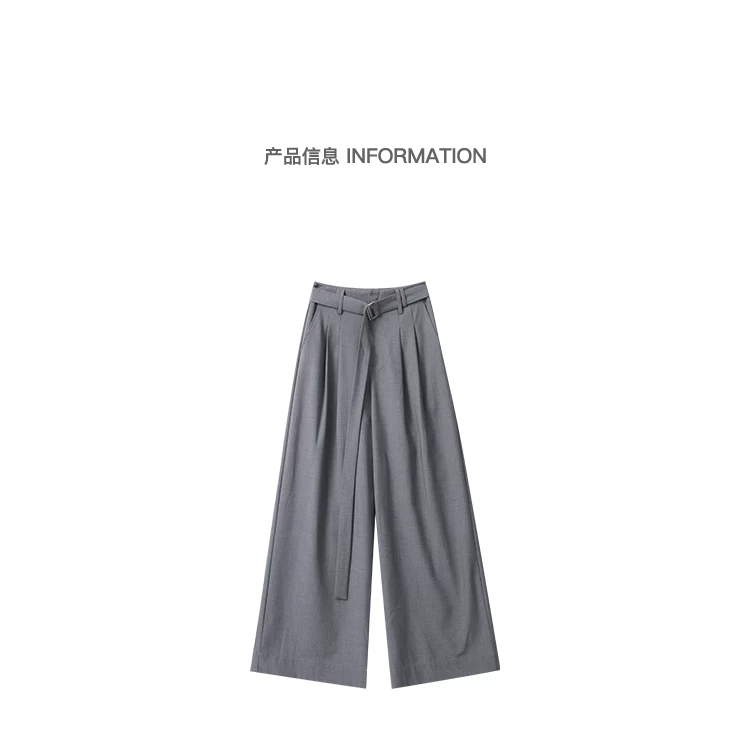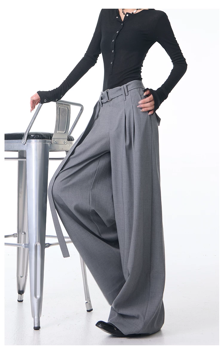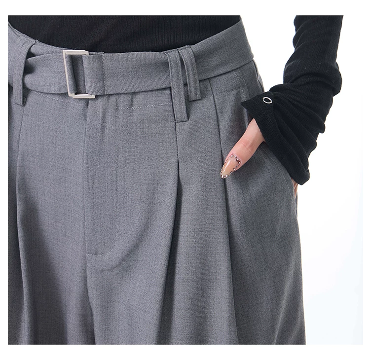 - KEN STUDIO Xuân Thu Mới Màu Xám Xếp Ly Quần Tây Nữ Cao Cấp Dáng Rộng Giảm Béo Quần Dài Đến Tầng