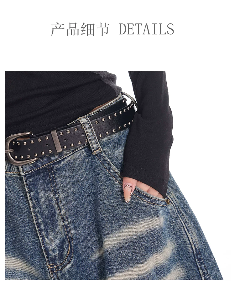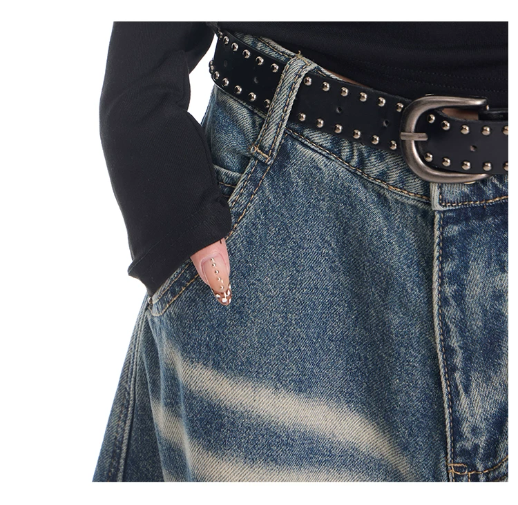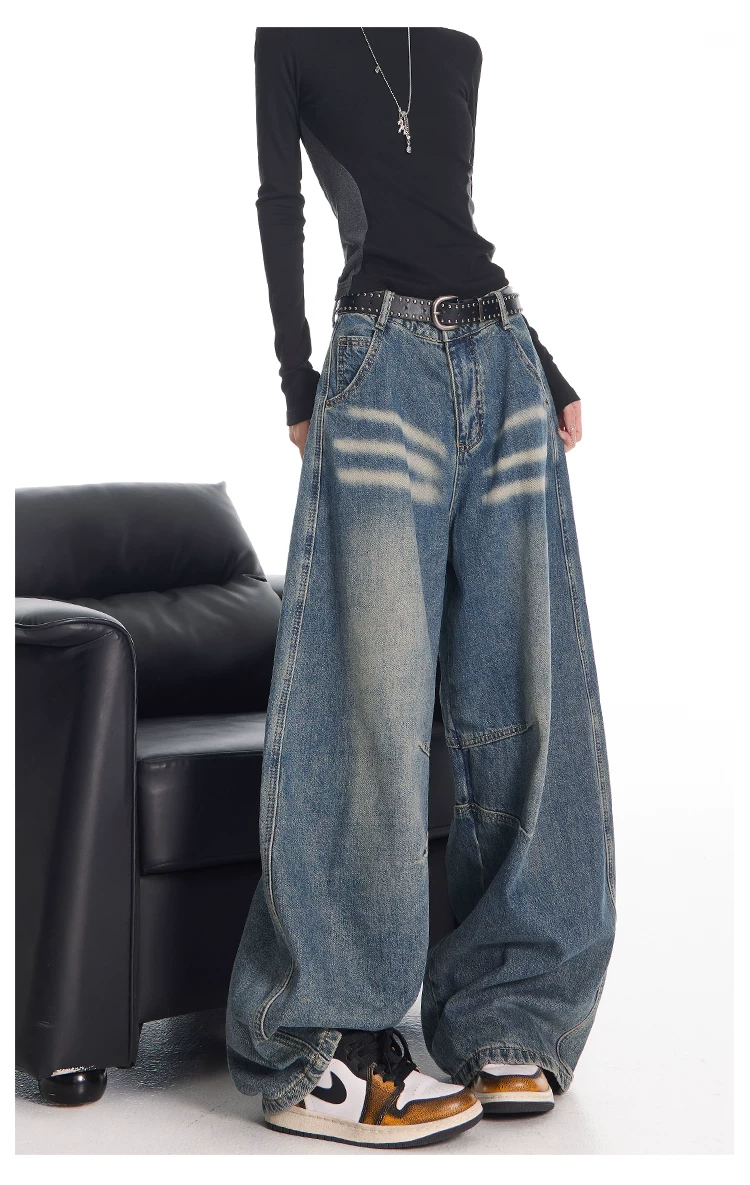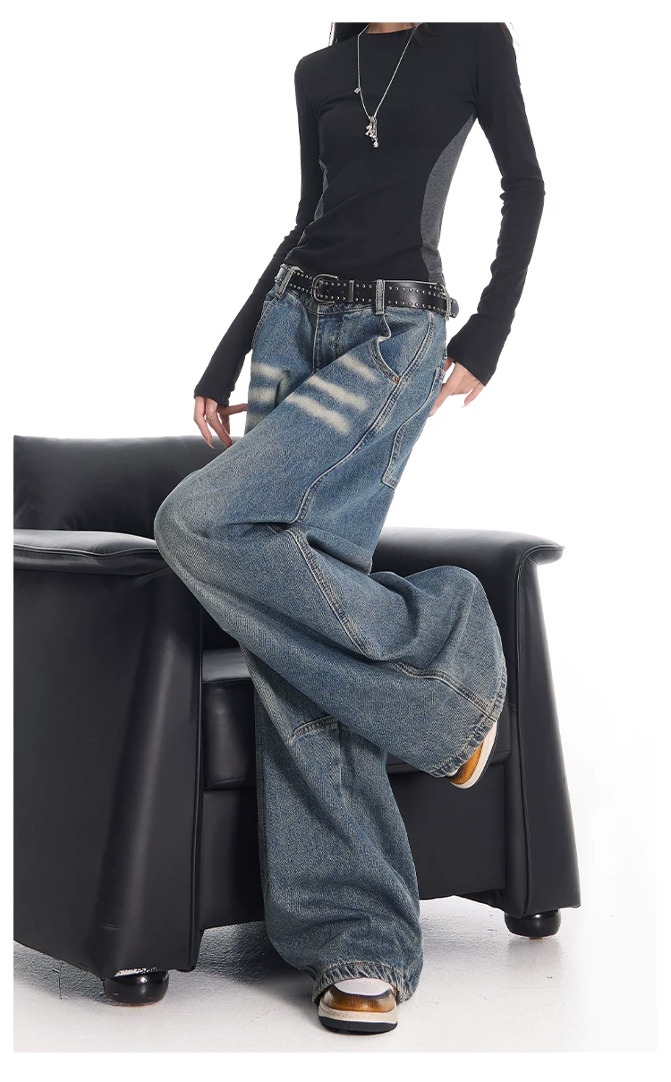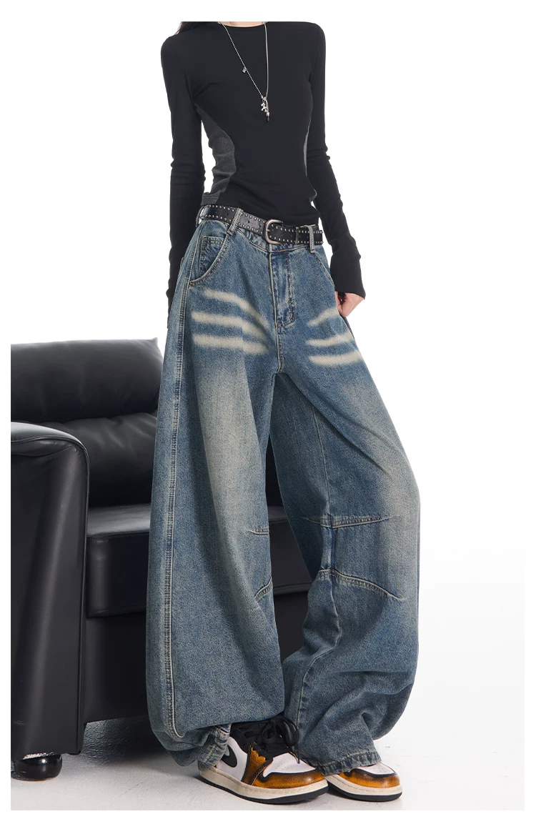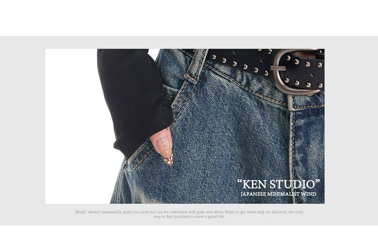 - KEN STUDIO Xuân Thu Mới Phong Cách Đường Phố Mỹ Quần Jean Vintage Nữ Cao Cấp Quần Ống Rộng Quần Ống Rộng Quần Scimitar