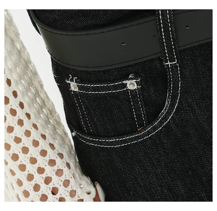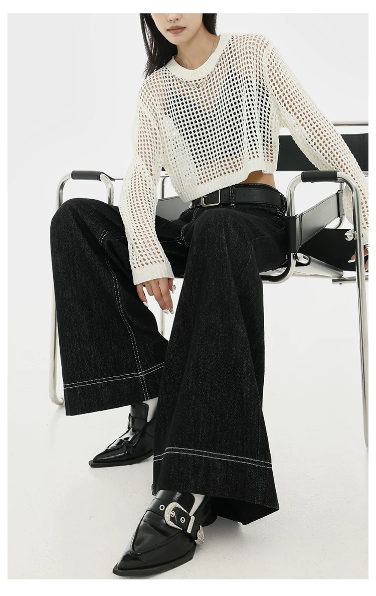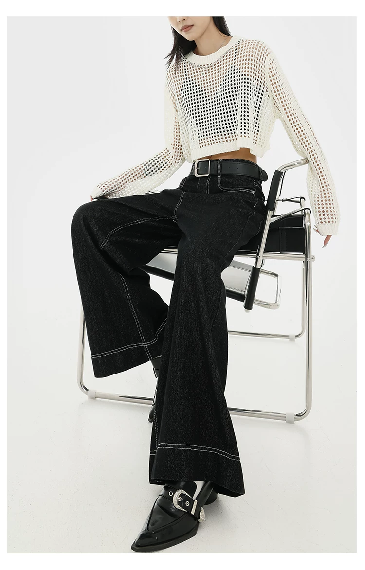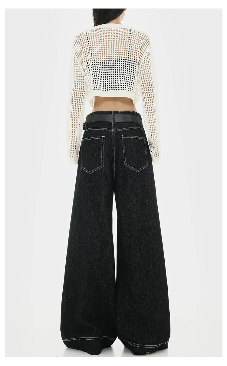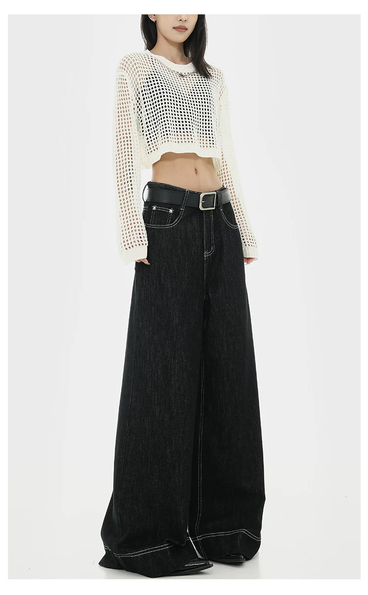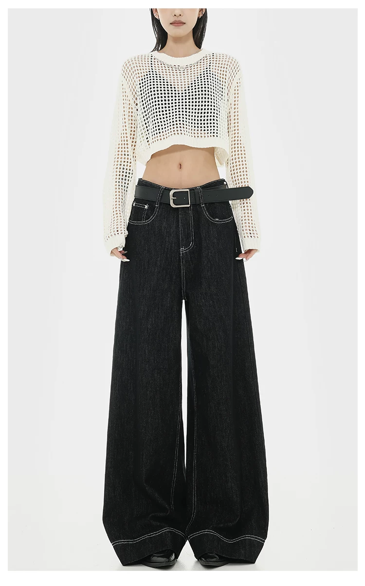 - KEN STUDIO Xuân Thu Mới Phong Cách Retro Mỹ Thiết Kế Đường May Đen Quần Jean Ống Thẳng Quần Ống Rộng Cao Cho Nữ