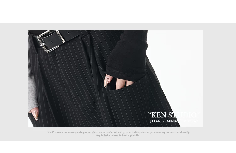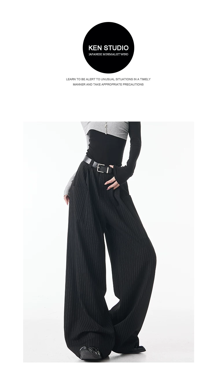 KEN STUDIO Xuân Thu Mới Quần Âu Sọc Đen Ống Rộng Cho Nữ Quần Âu Cạp Cao Draping Giảm Béo Quần Âu
