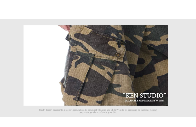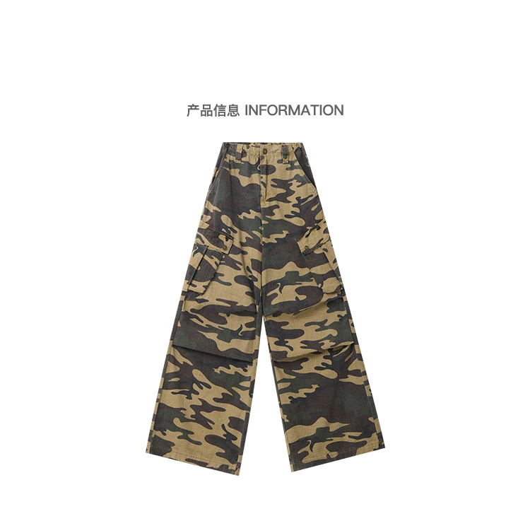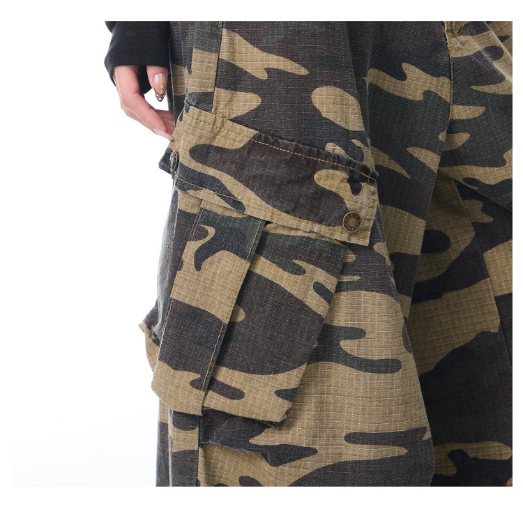 KEN STUDIO Xuân Thu Mới Quần Cargo Ngụy Trang Cổ Điển Quần ống rộng nhiều túi dáng rộng cho nữ Quần dài đến sàn