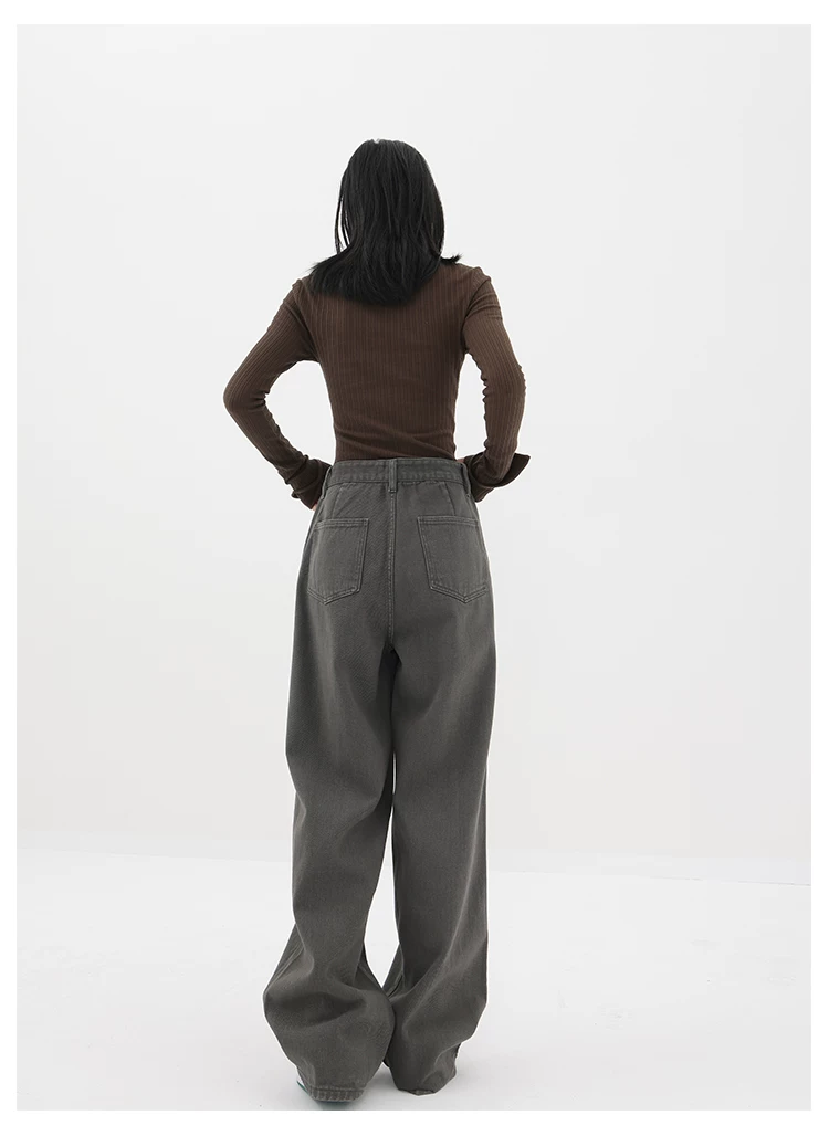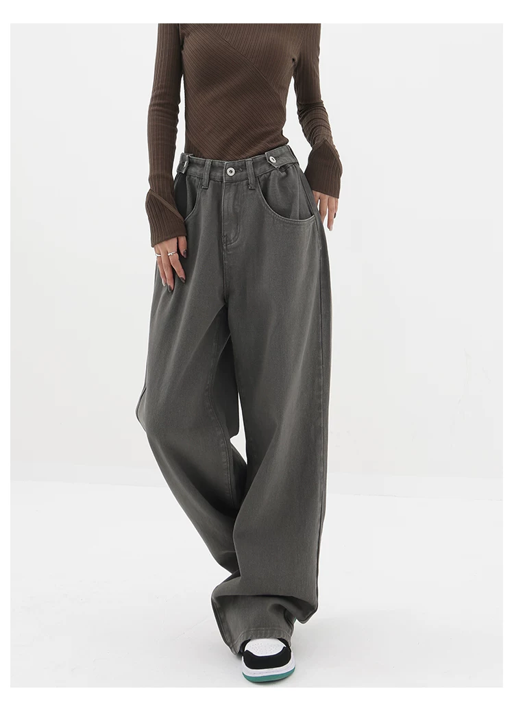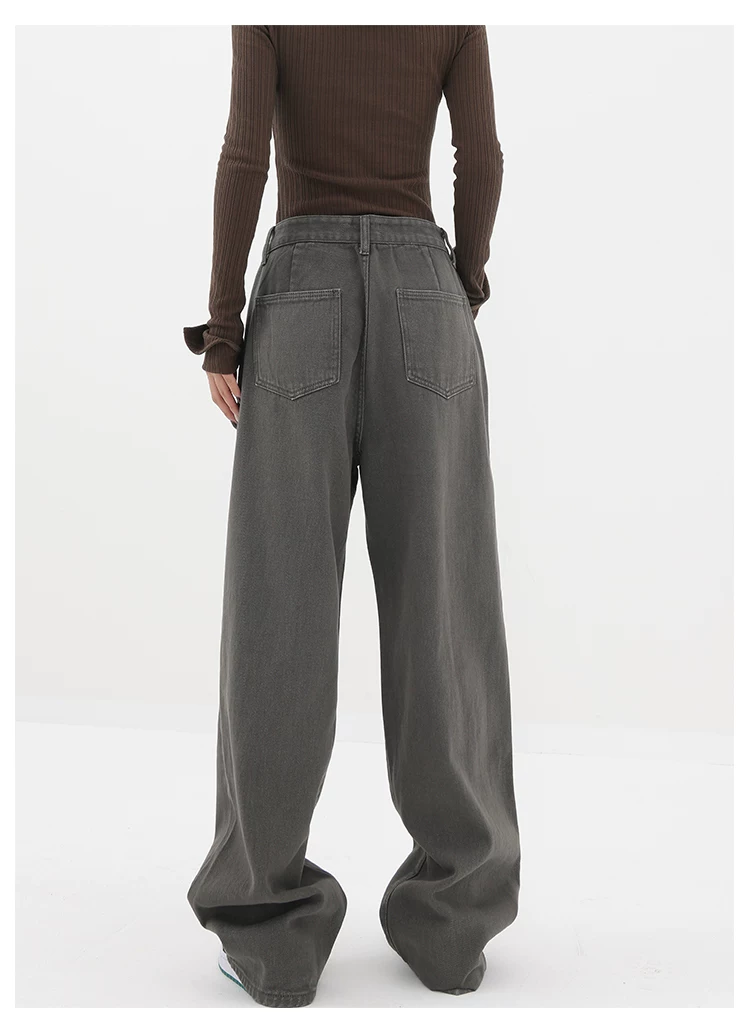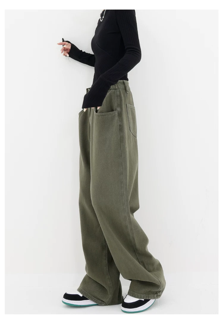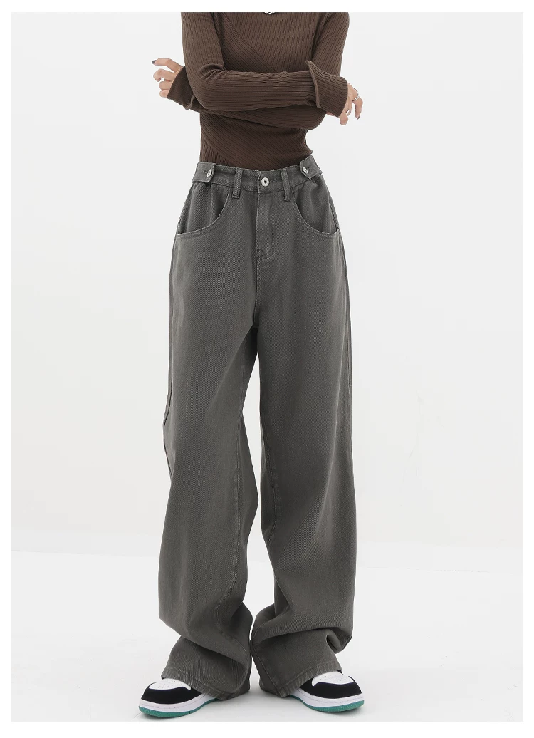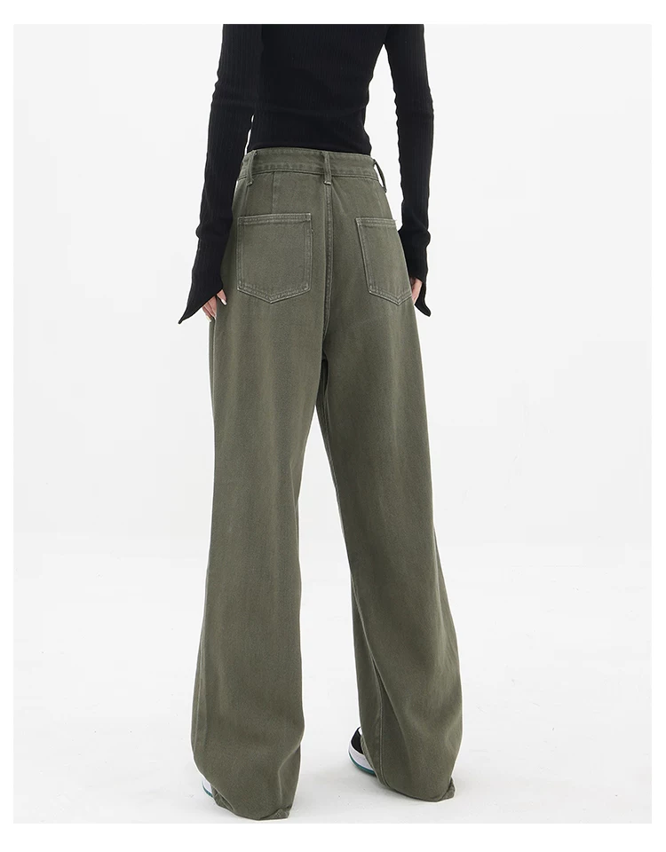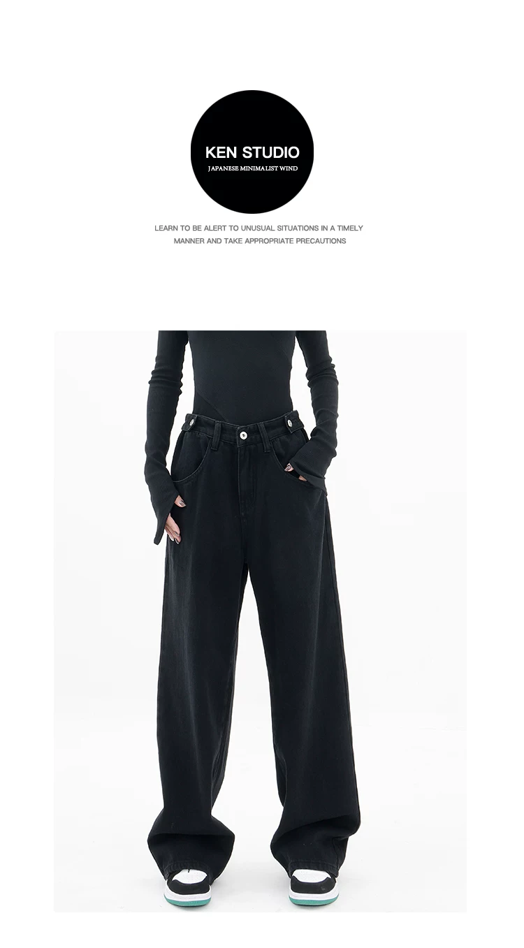 - KEN STUDIO Xuân Thu Mới Quần Jean Đen Nữ Cao Cấp Thẳng Rời Giảm Béo Quần Ống Rộng Quần Âu