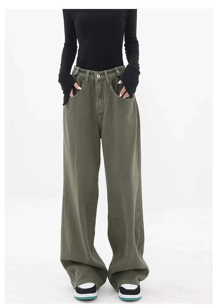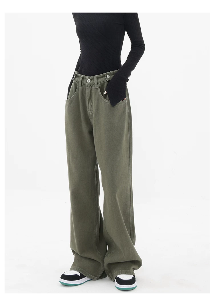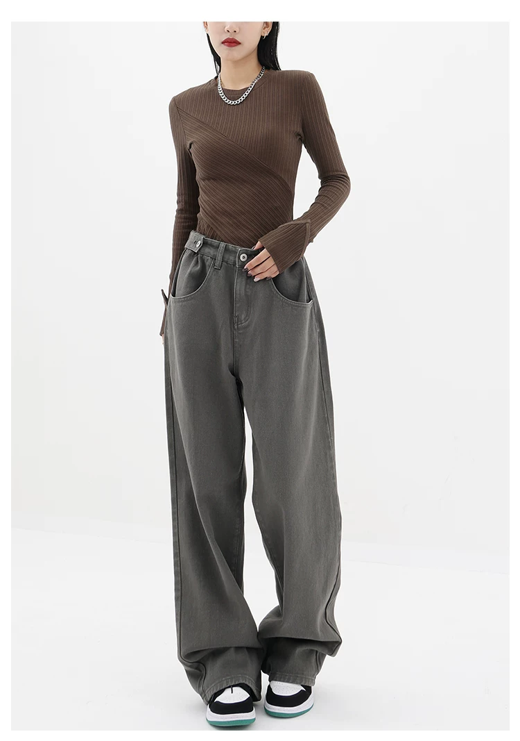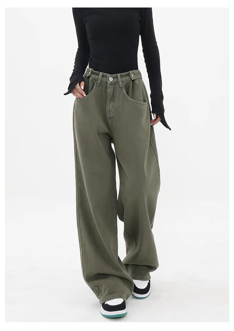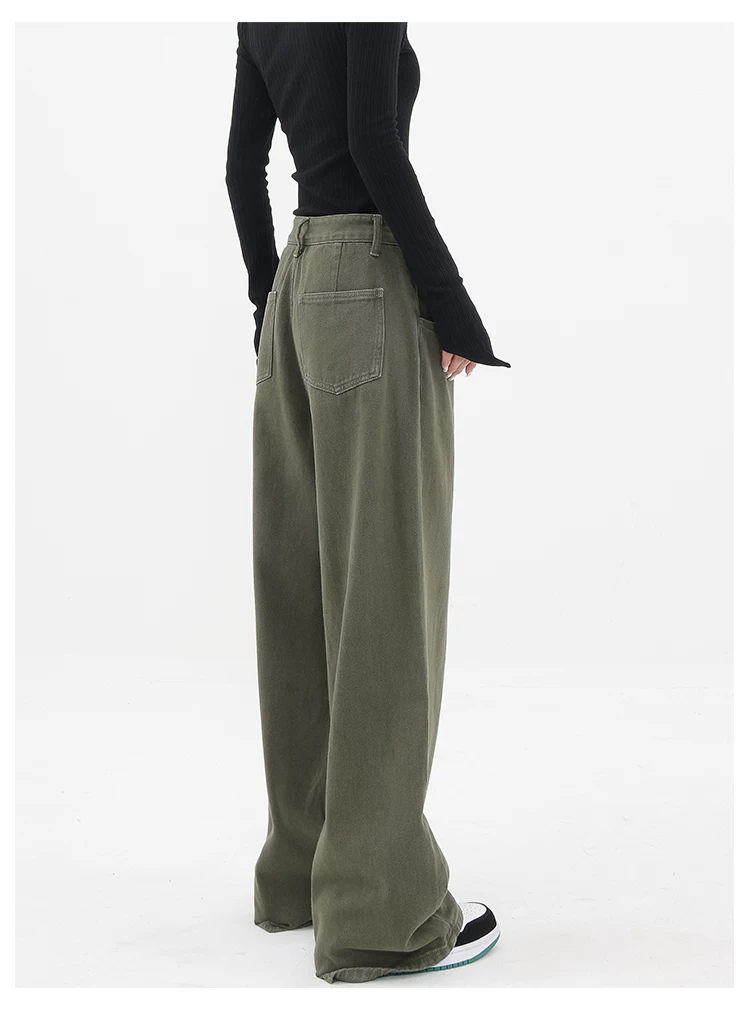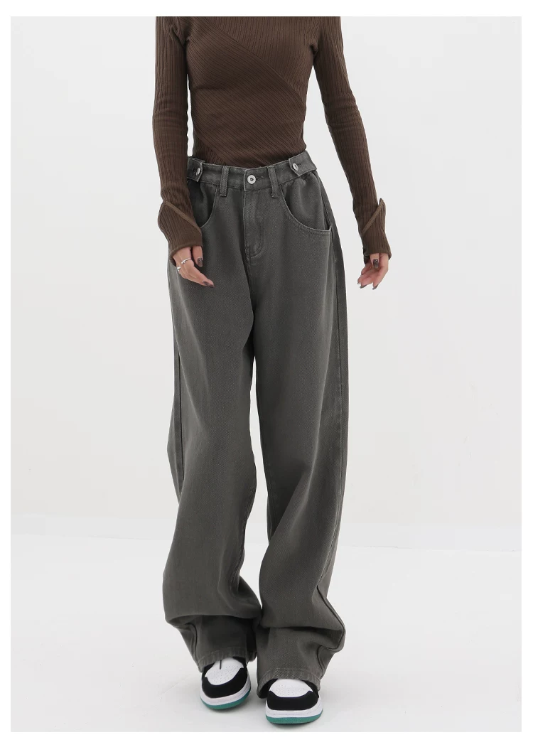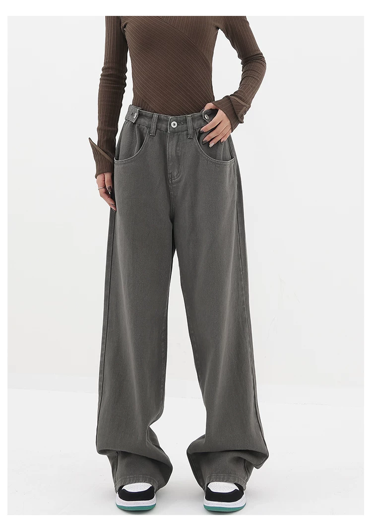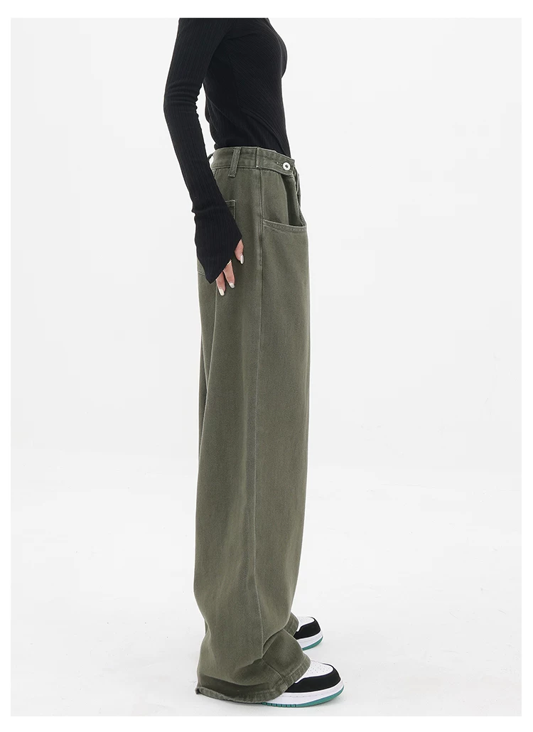 - KEN STUDIO Xuân Thu Mới Quần Jean Đen Nữ Cao Cấp Thẳng Rời Giảm Béo Quần Ống Rộng Quần Âu