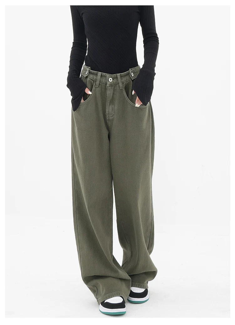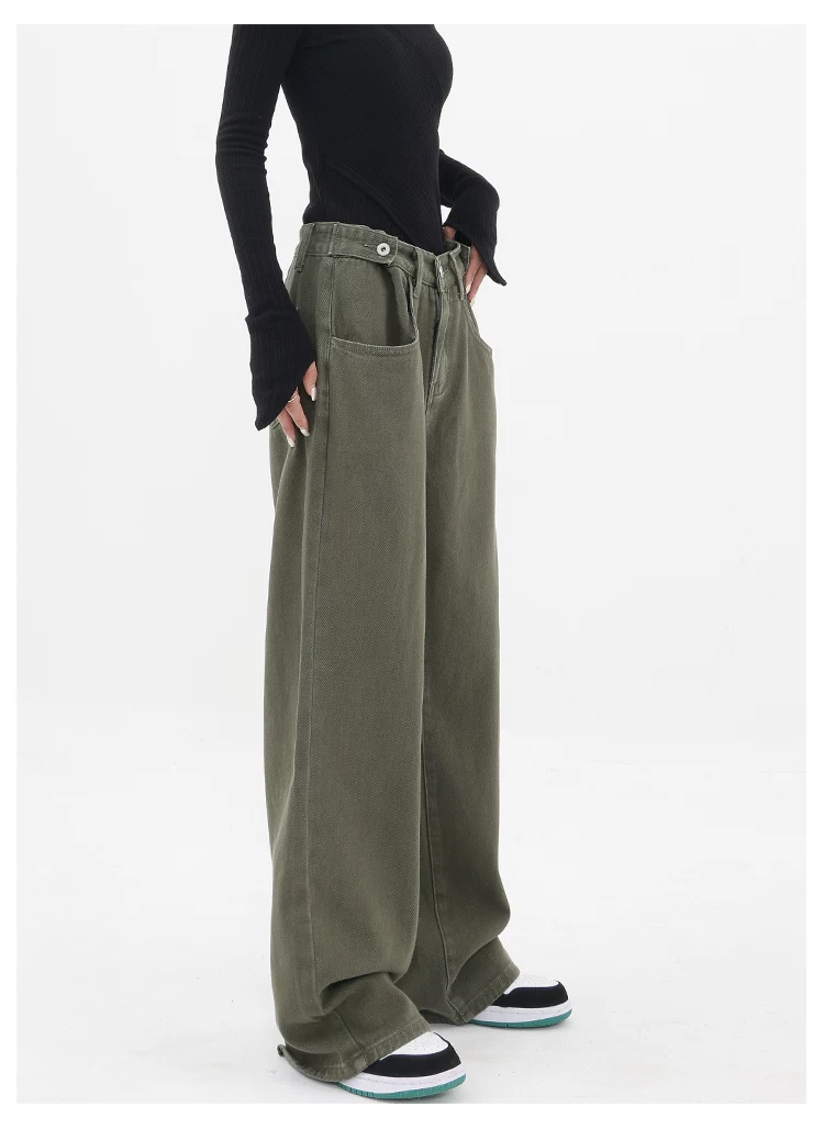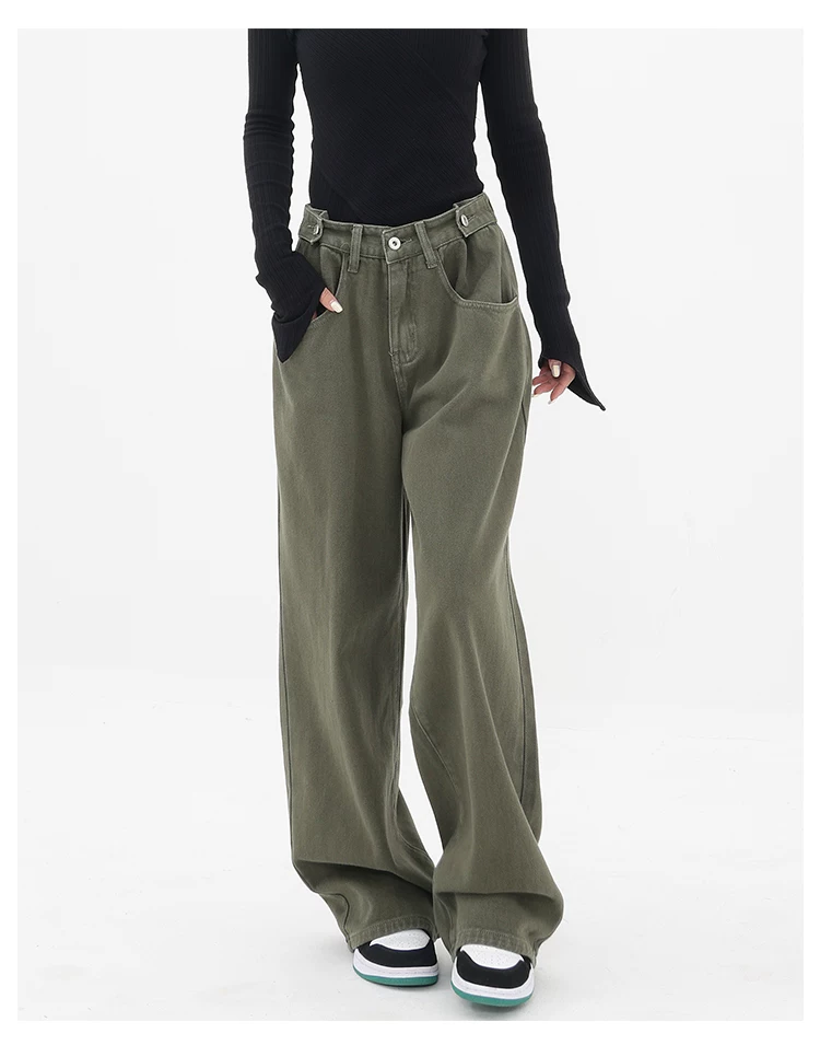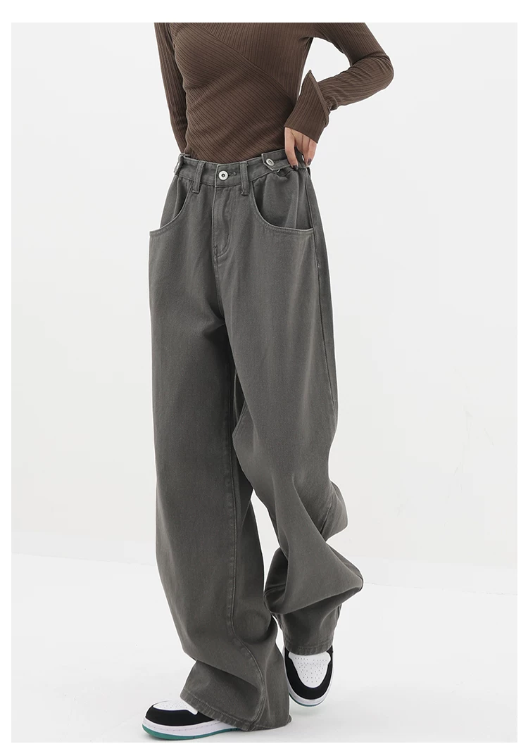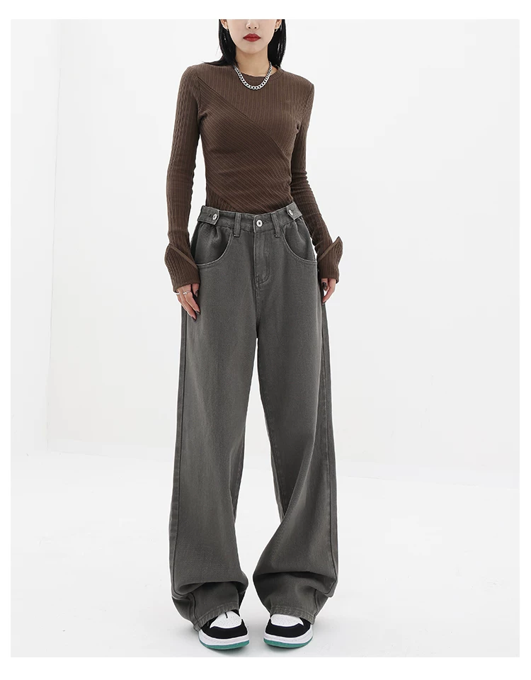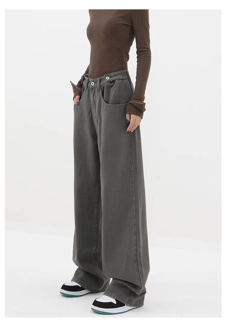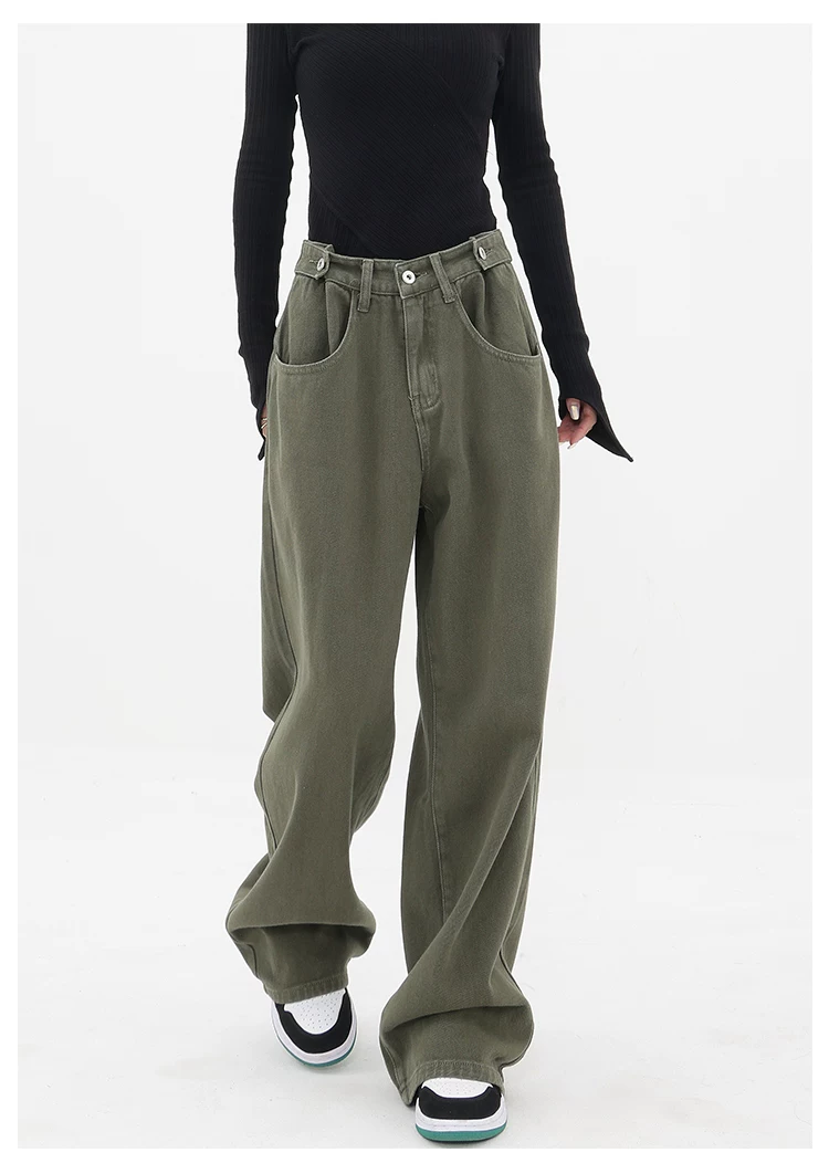 - KEN STUDIO Xuân Thu Mới Quần Jean Đen Nữ Cao Cấp Thẳng Rời Giảm Béo Quần Ống Rộng Quần Âu
