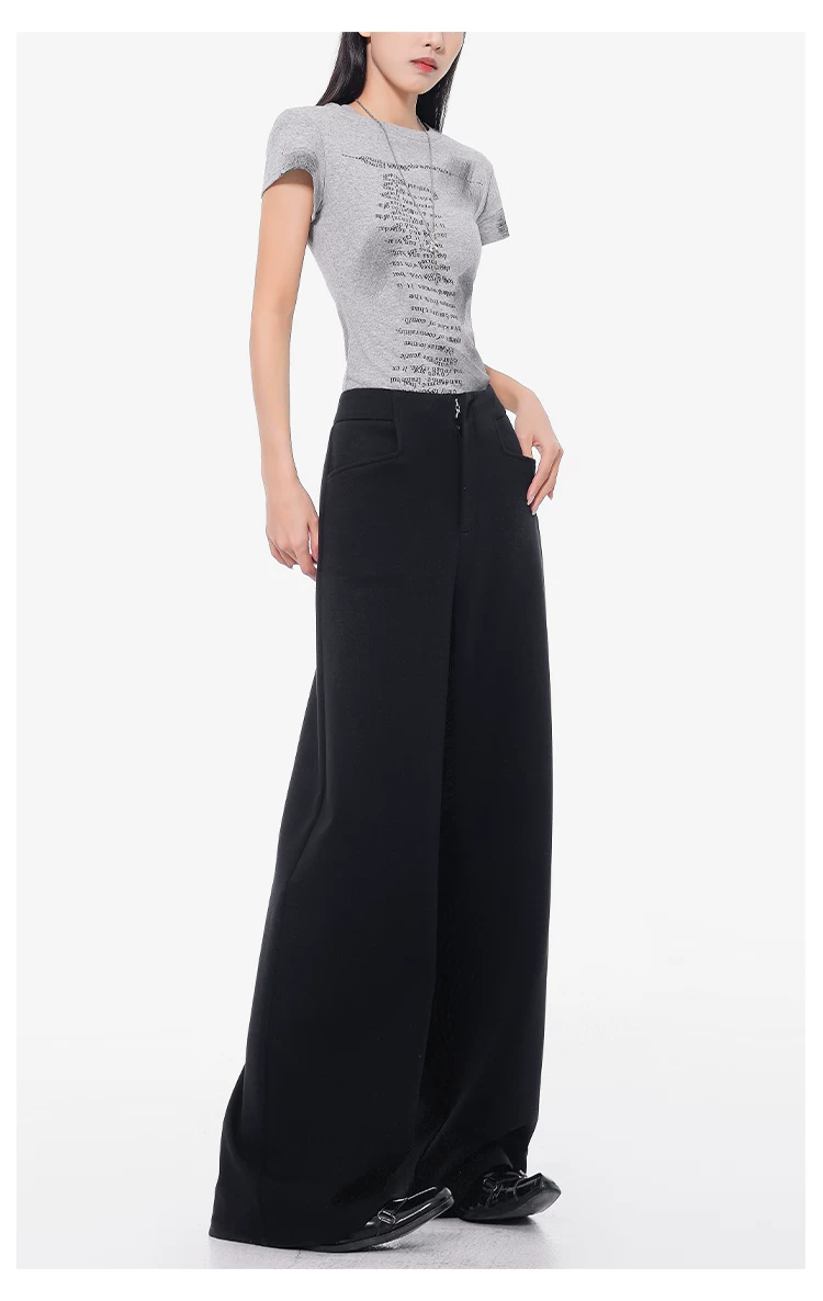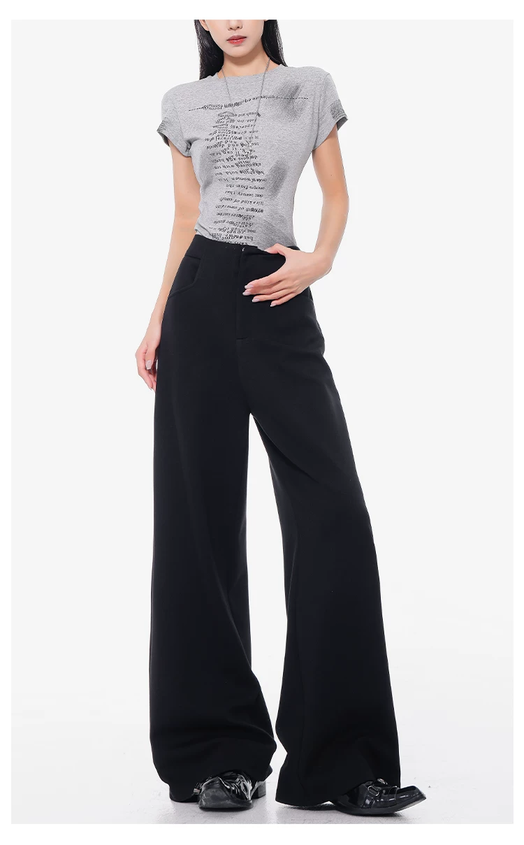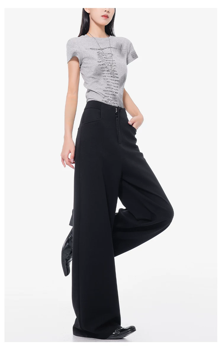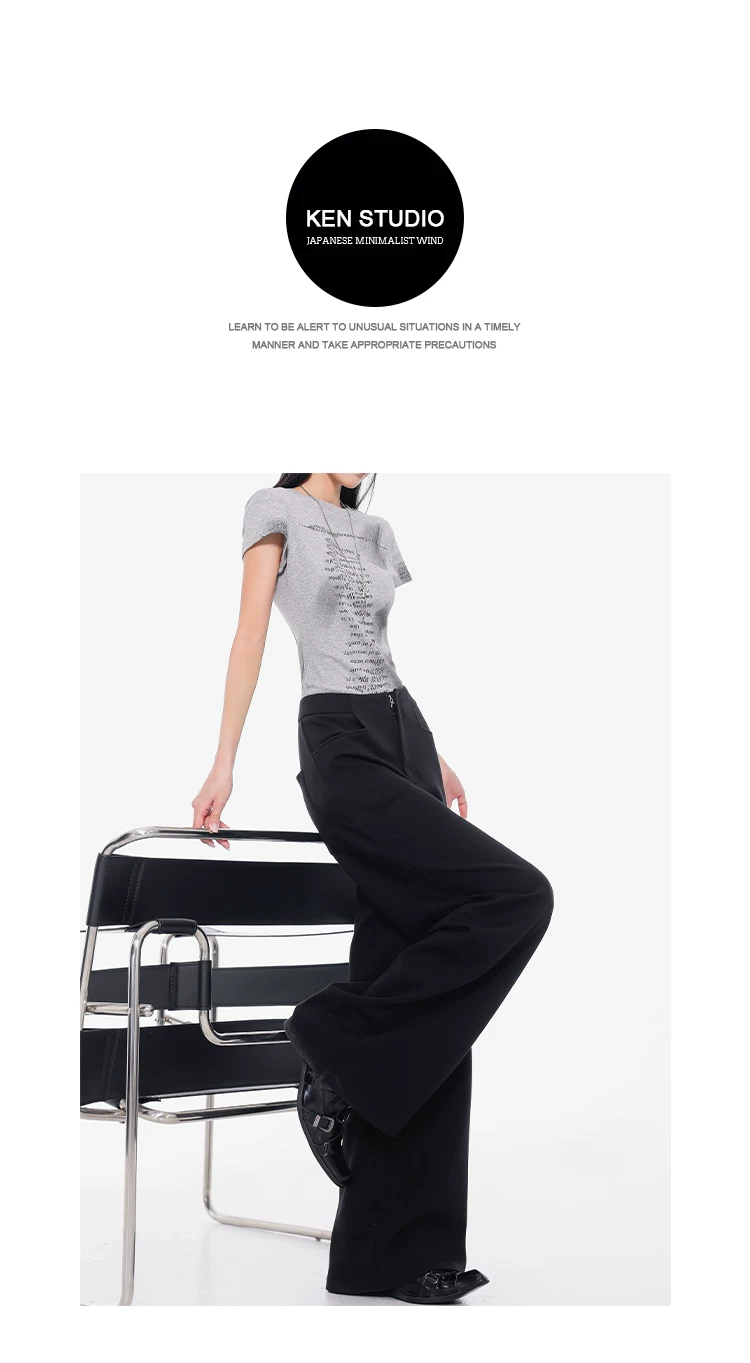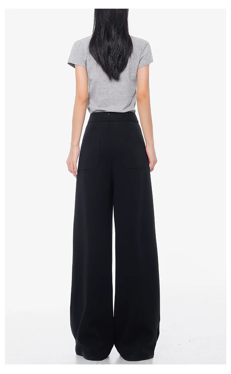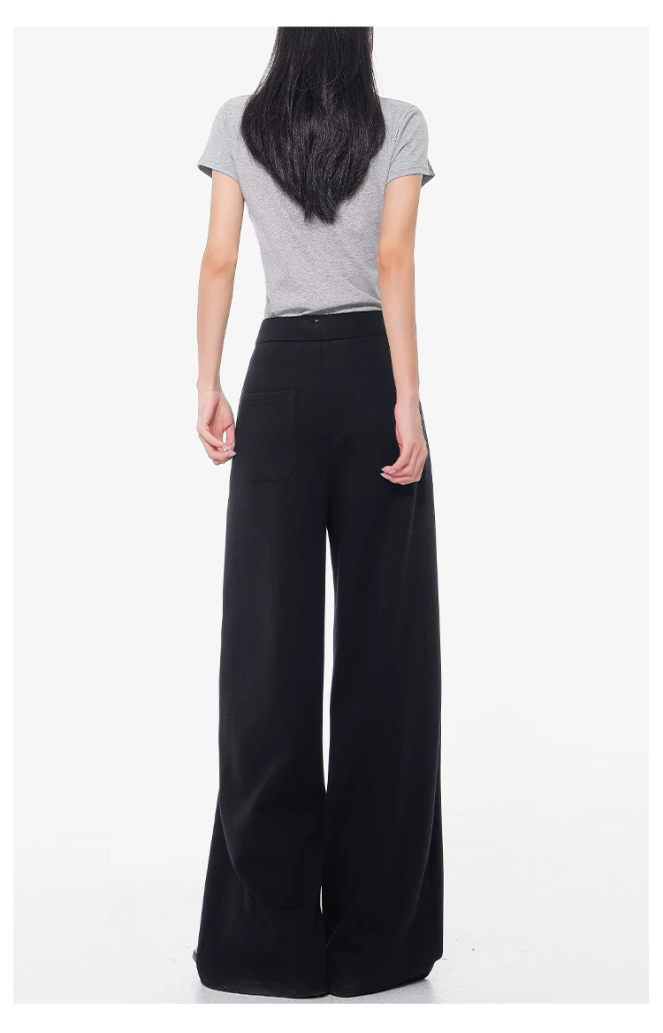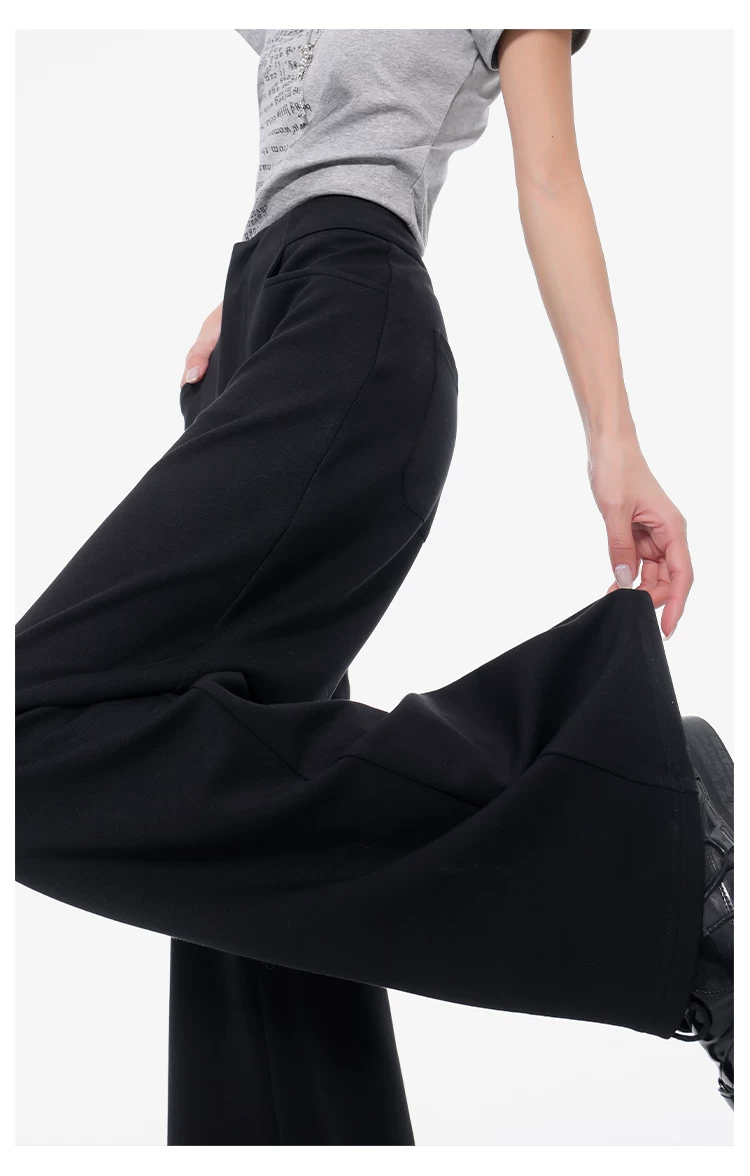 - KEN STUDIO Xuân Thu Mới Quần thể thao màu đen Quần thể thao nữ dáng rộng Quần thường ngày lưng cao Quần dài thẳng đến sàn