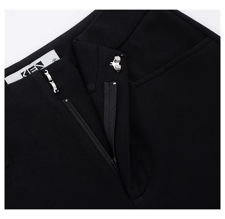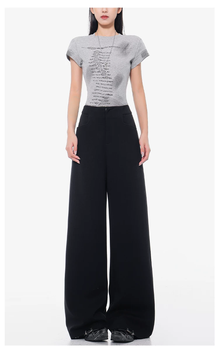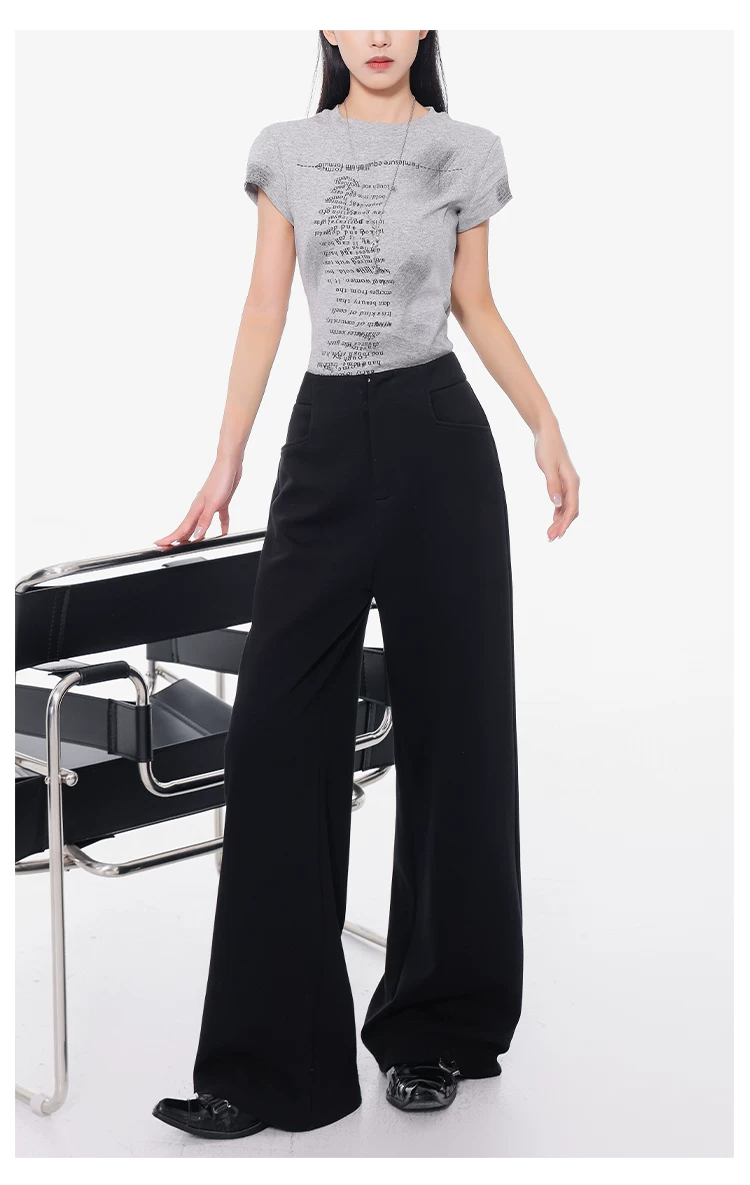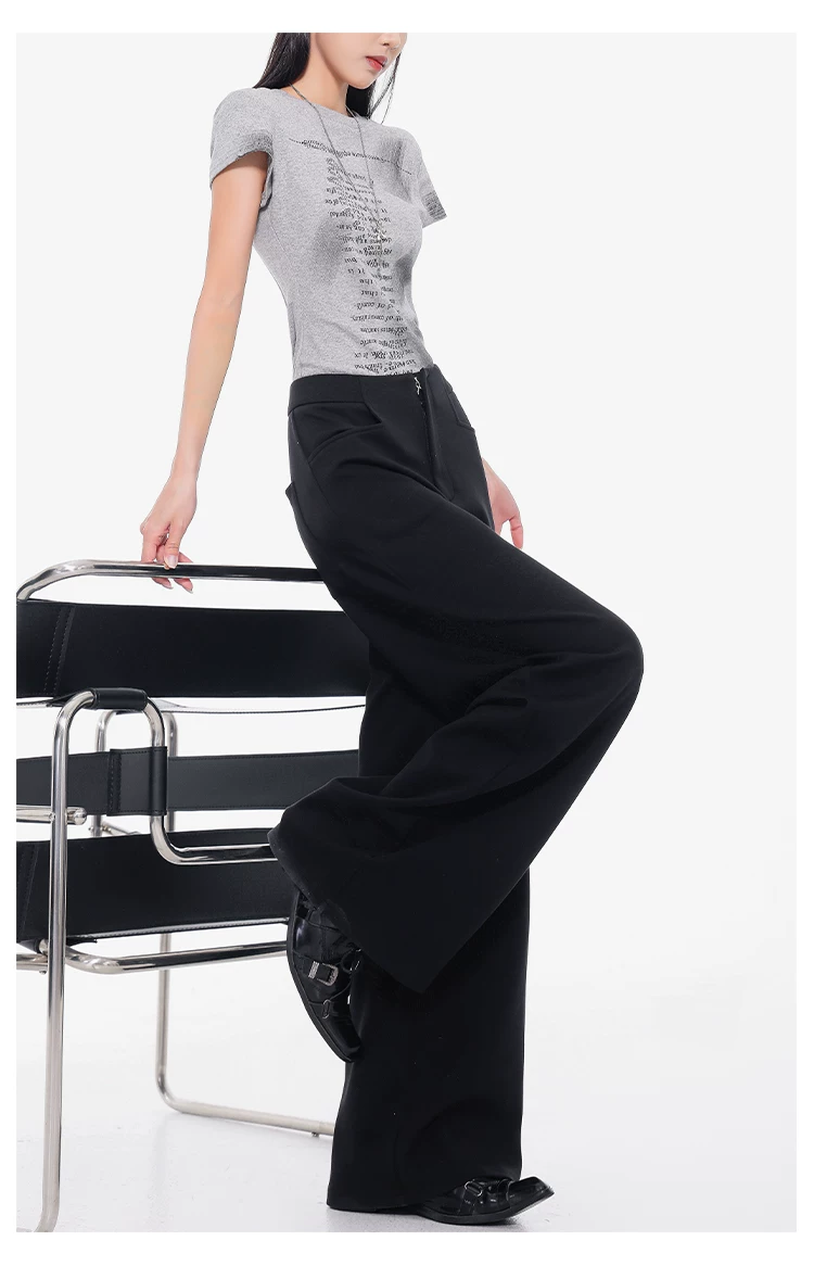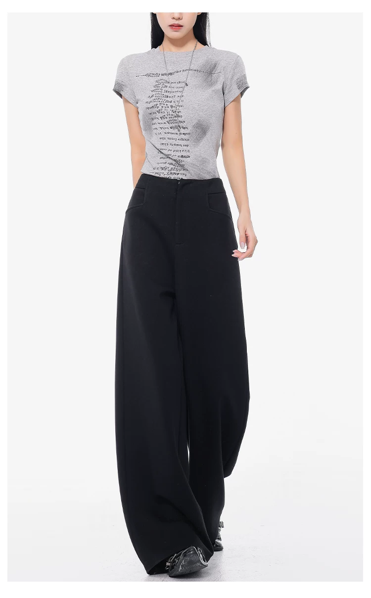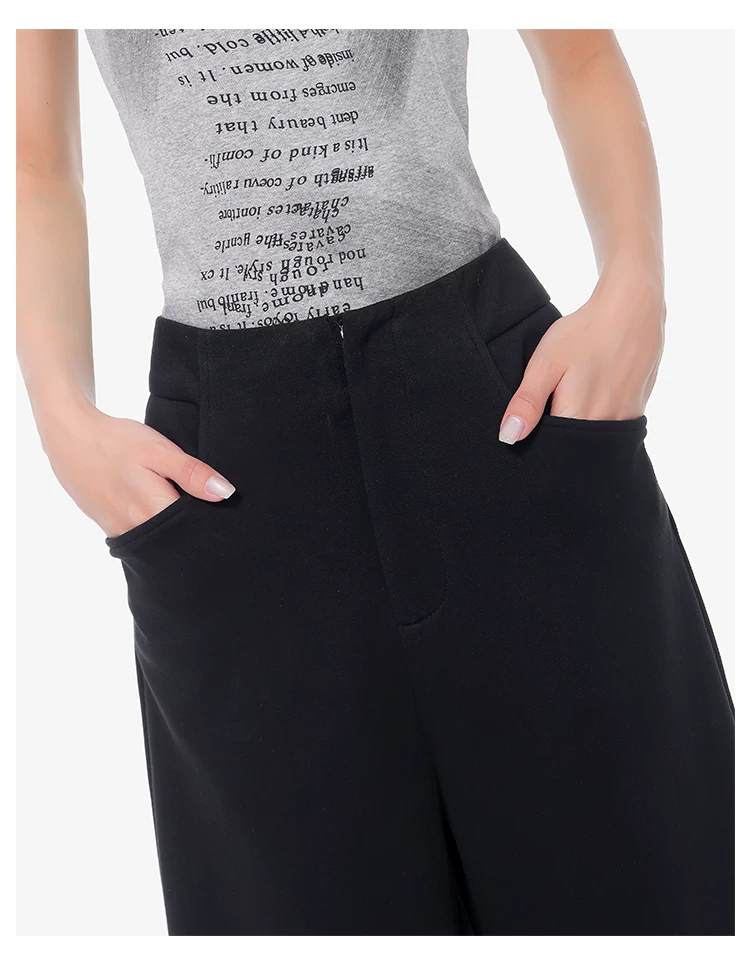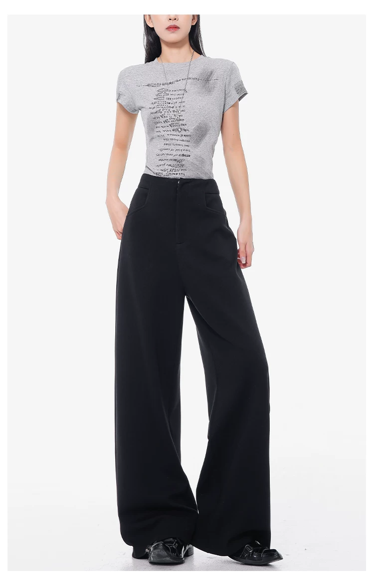 - KEN STUDIO Xuân Thu Mới Quần thể thao màu đen Quần thể thao nữ dáng rộng Quần thường ngày lưng cao Quần dài thẳng đến sàn