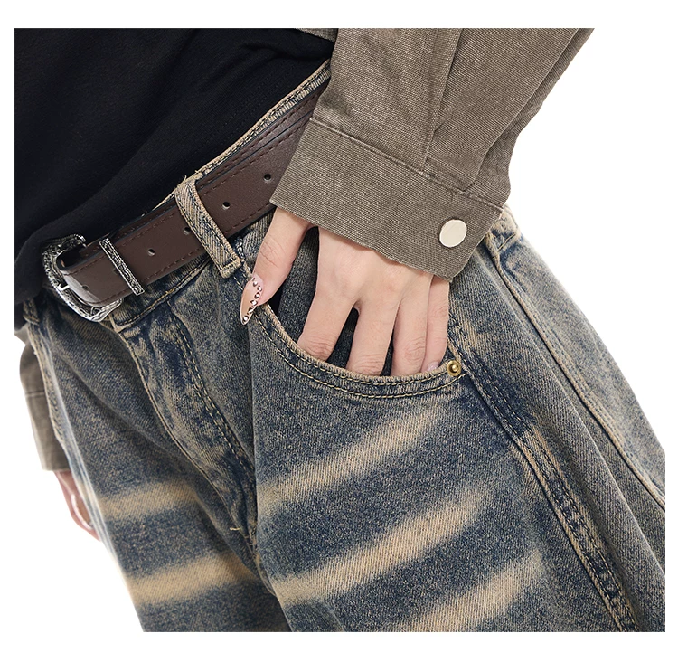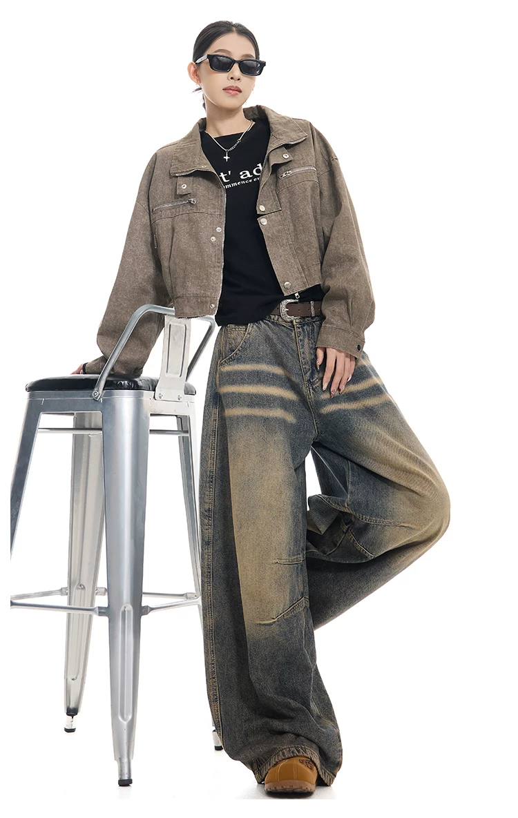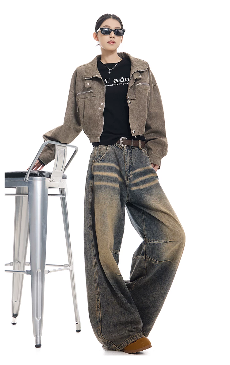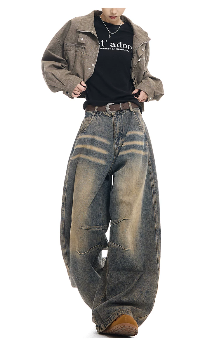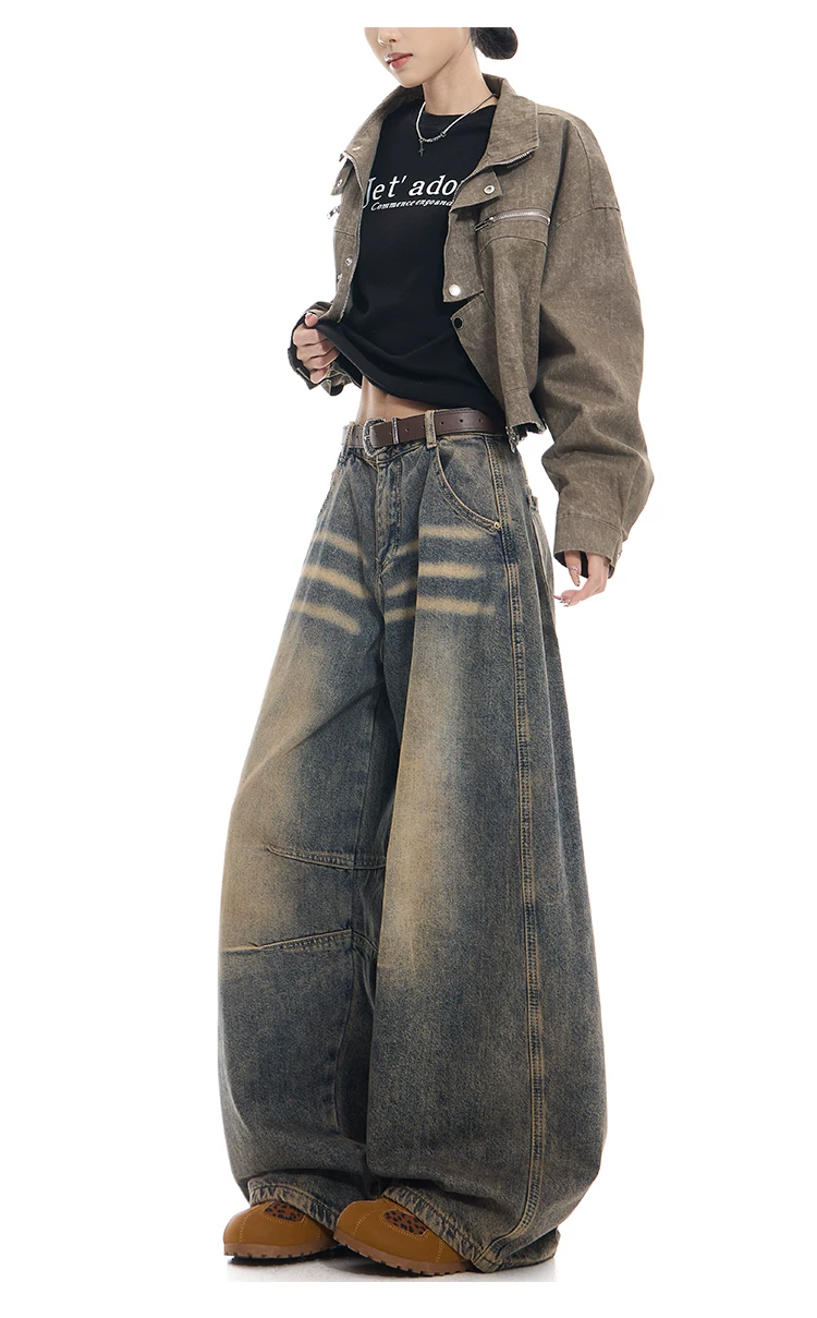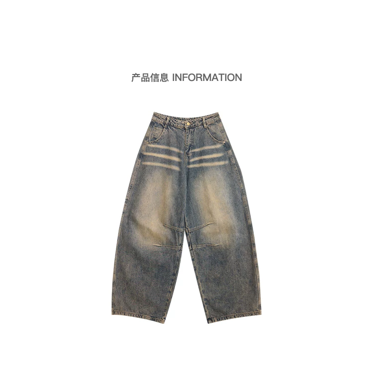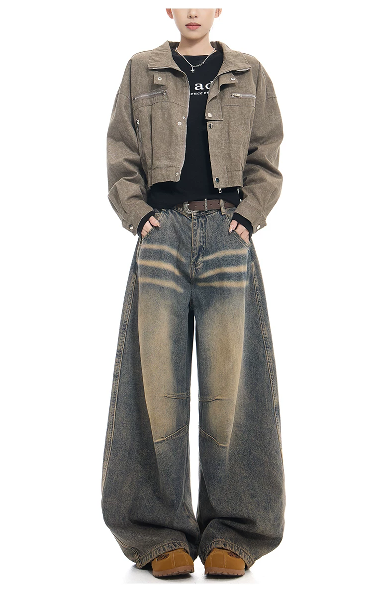 - KEN STUDIO Xuân Thu Mới Vintage Giặt Xước Quần Jeans Nữ Cao Cấp Rộng Ống Quần Scimitar