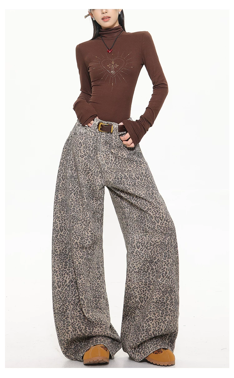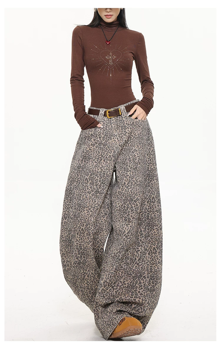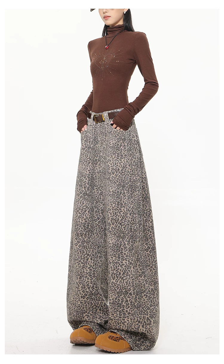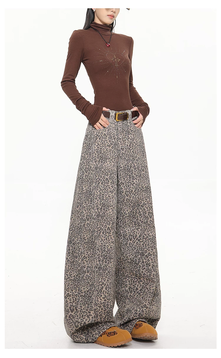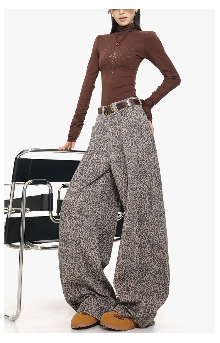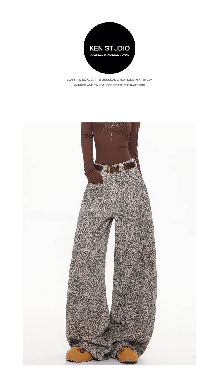 - KEN STUDIO Xuân Thu Mới Vintage Họa Tiết Da Báo Scimitar Quần Jean Nữ Cao Cấp Hot Girl Harem Quần Chiều Dài Quần