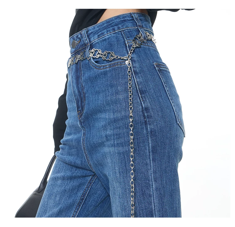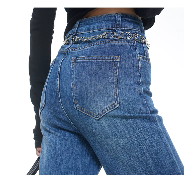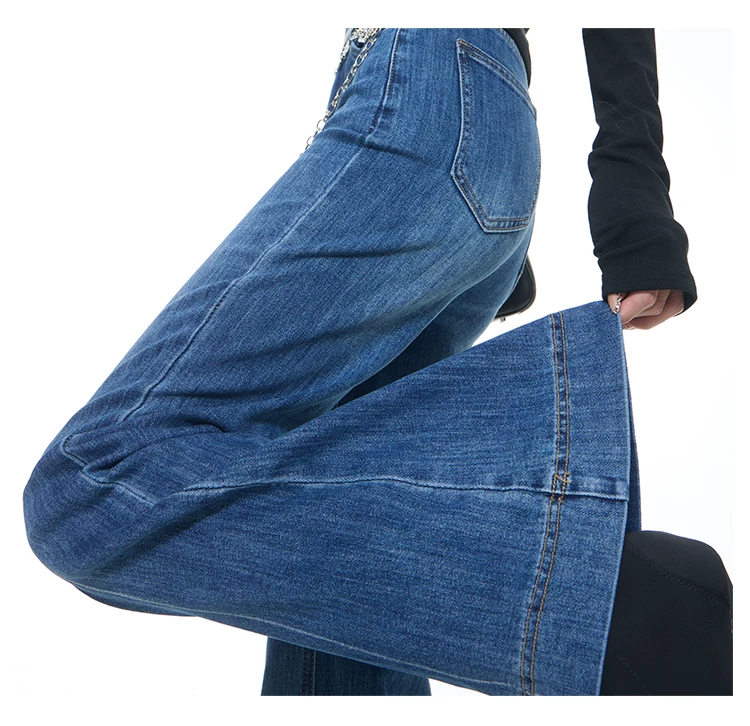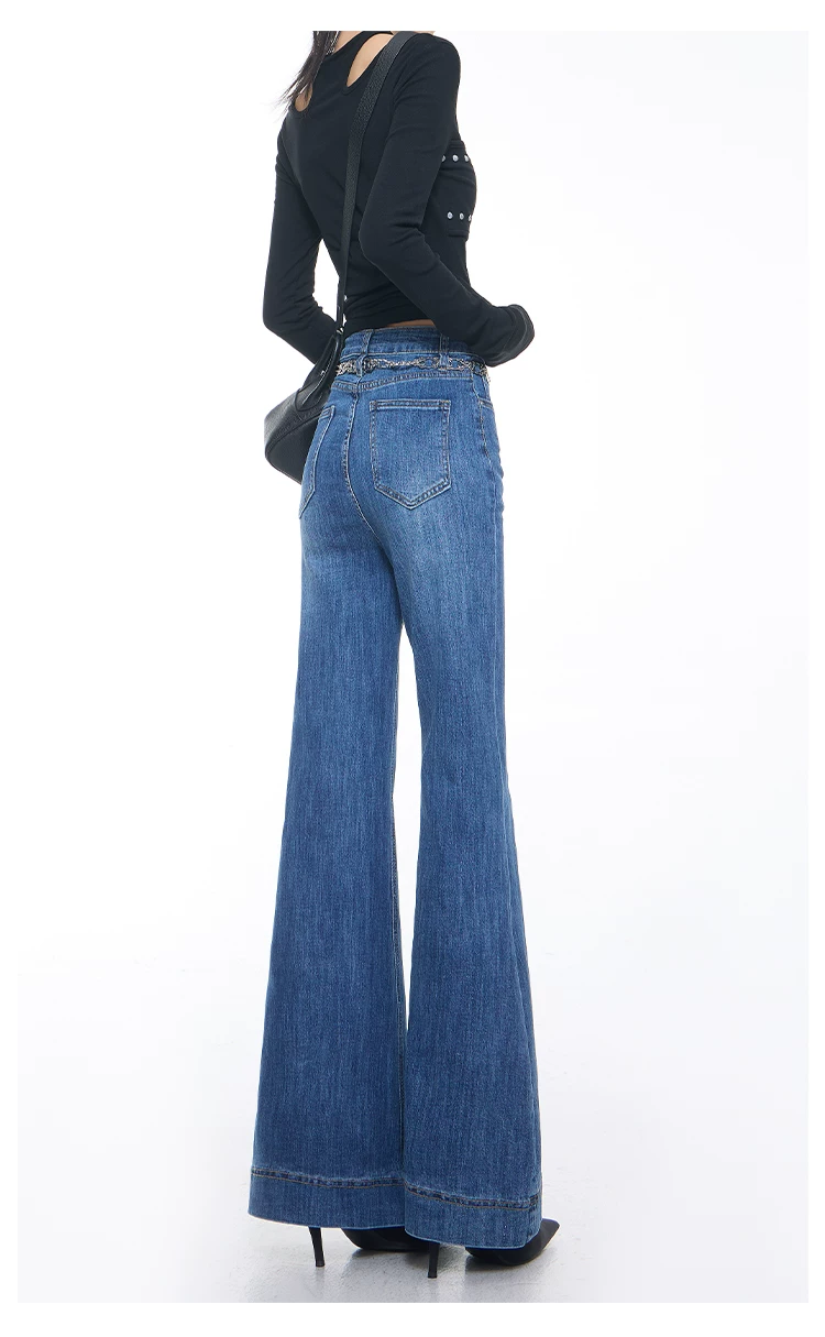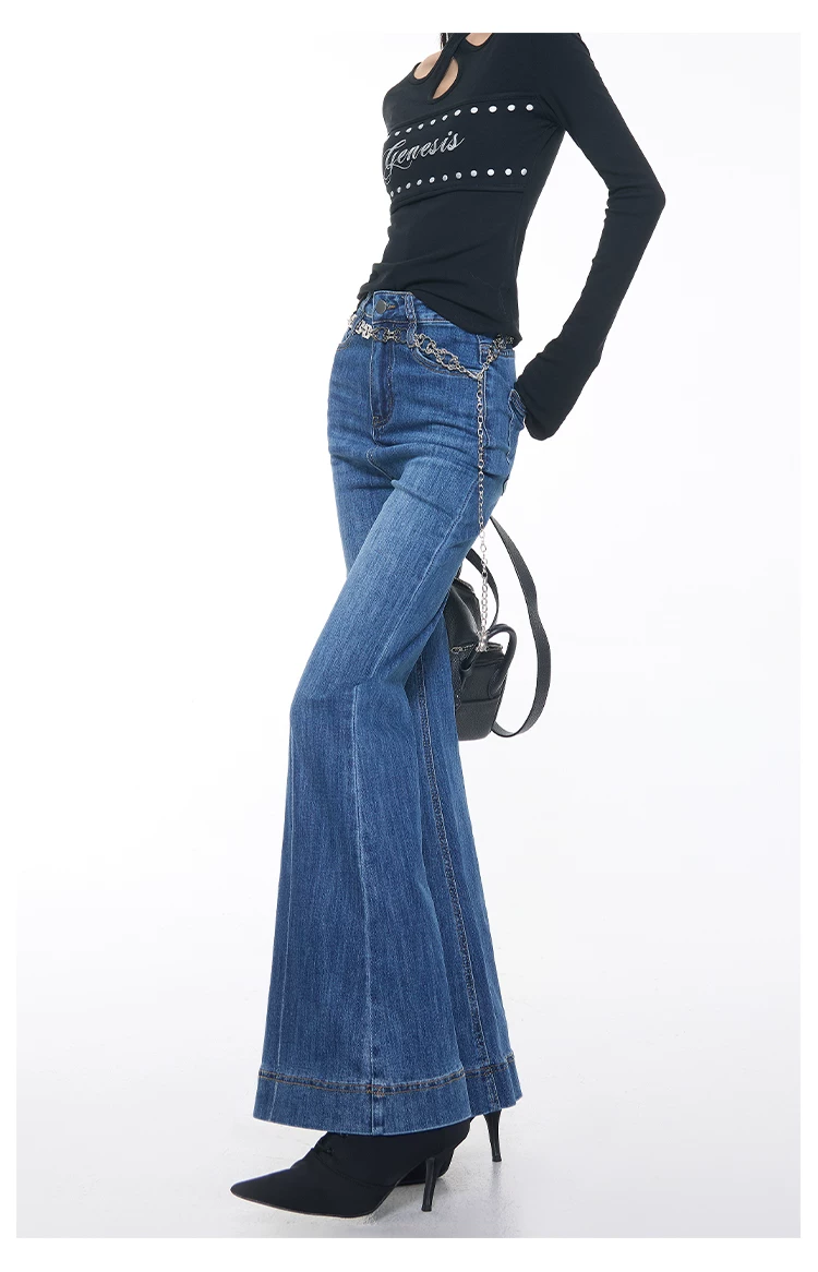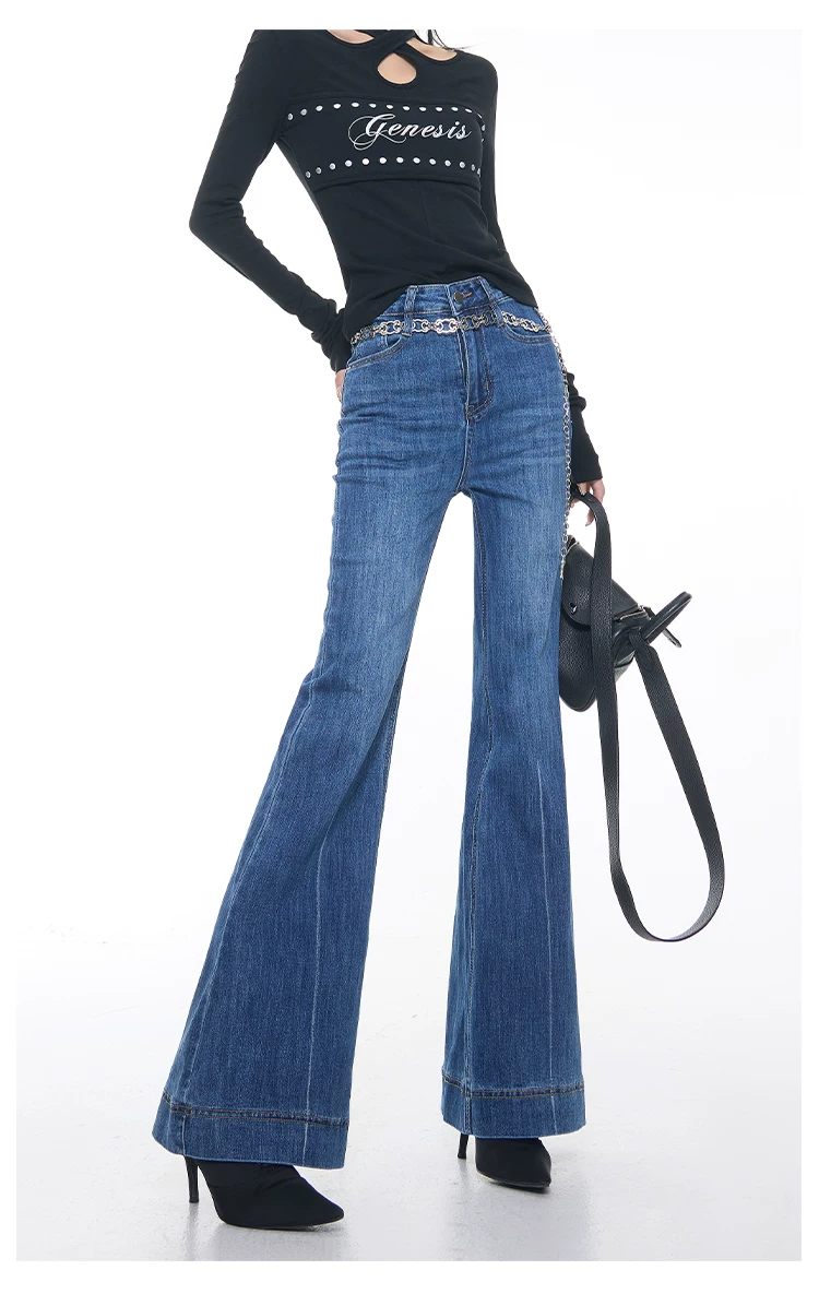 - KEN STUDIO Xuân Thu Mới Vintage Xanh Dương Quần Jean Loe Nữ Cao Cấp Slim Fit Co Giãn Quần Đáy Chuông
