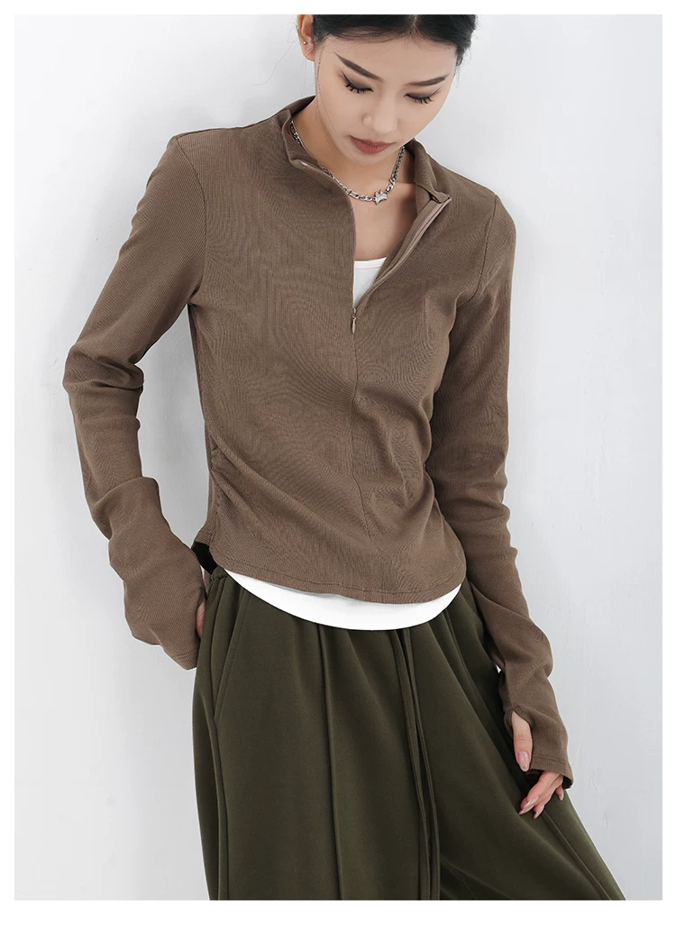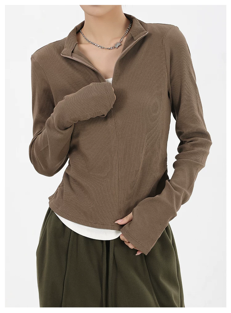 KEN STUDIO Xuân Thu Phong Cách Mới Giả Hai Mảnh Thiết Kế Độc Đáo Áo Thun Nữ Slim Fit Thể Thao Đế Áo Sơ Mi Hàng Đầu