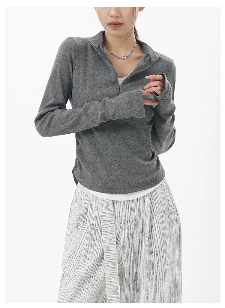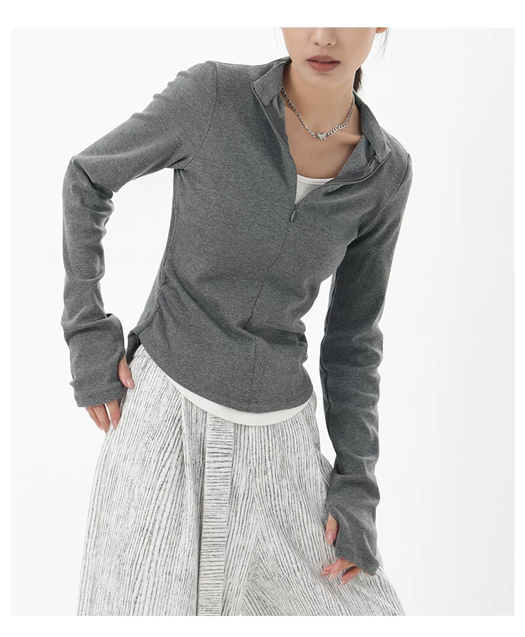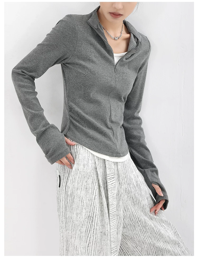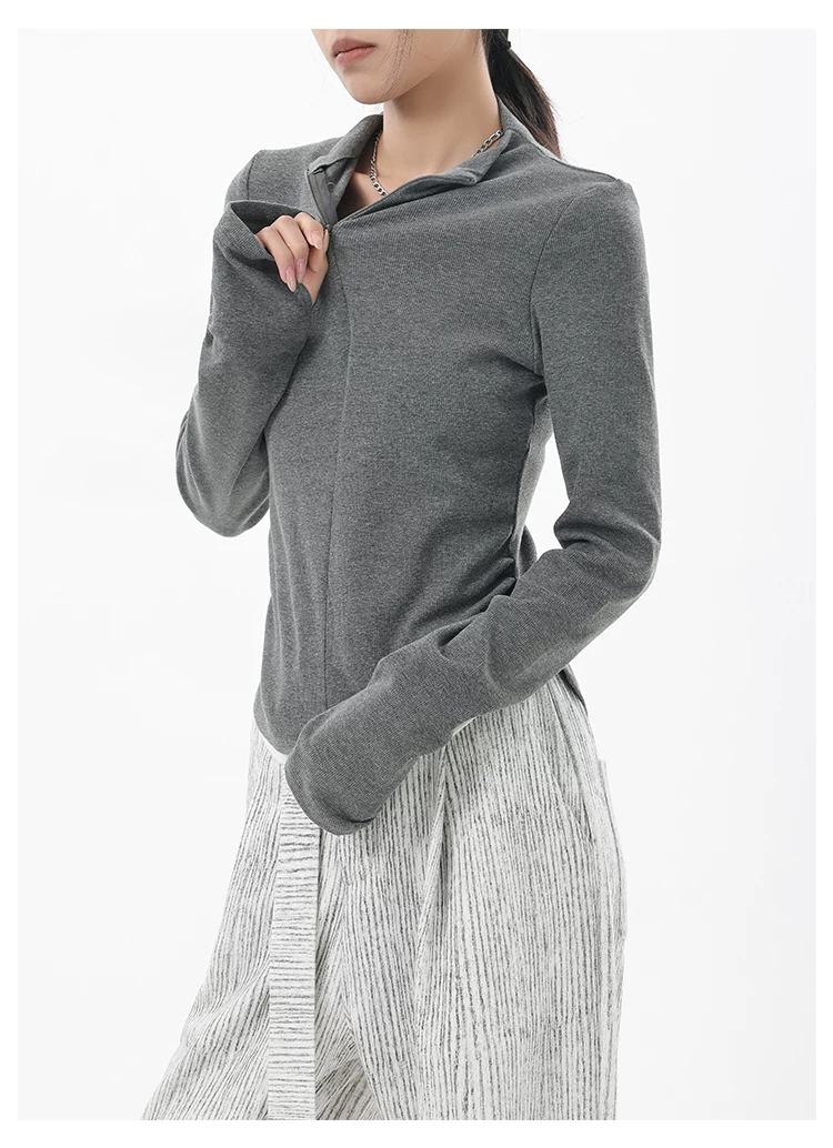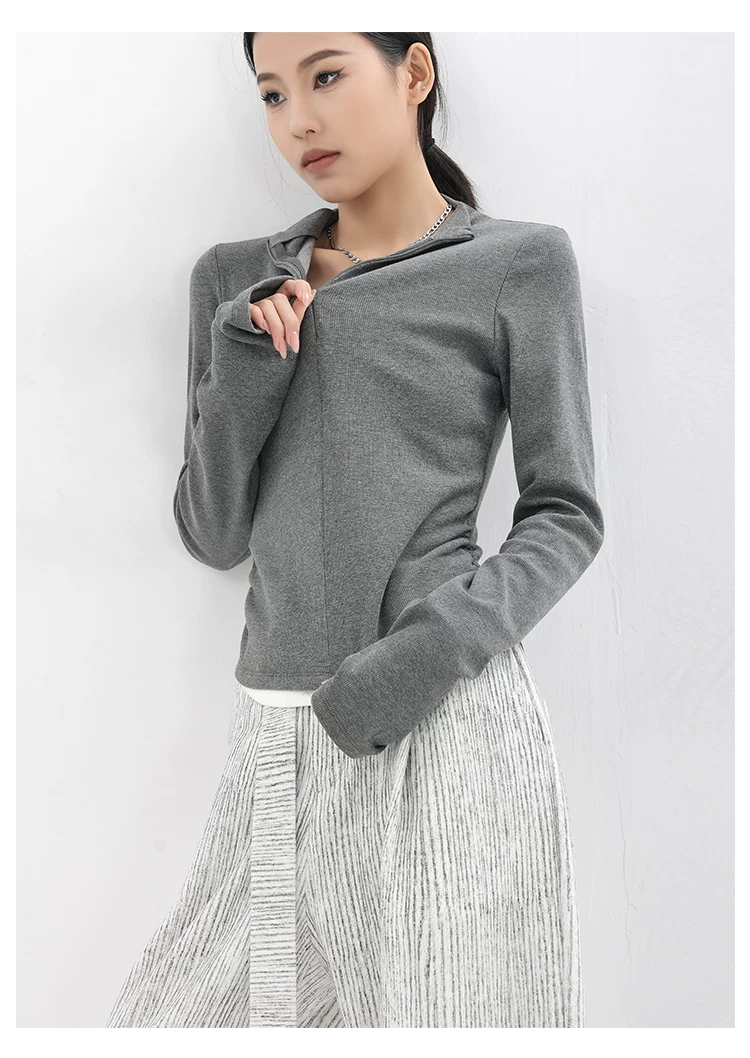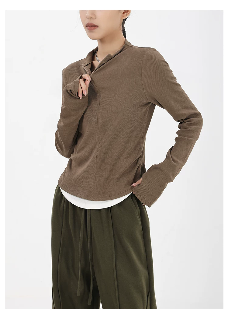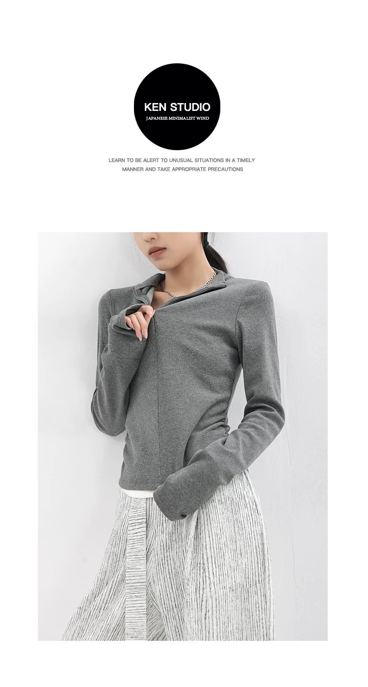 - KEN STUDIO Xuân Thu Phong Cách Mới Giả Hai Mảnh Thiết Kế Độc Đáo Áo Thun Nữ Slim Fit Thể Thao Đế Áo Sơ Mi Hàng Đầu