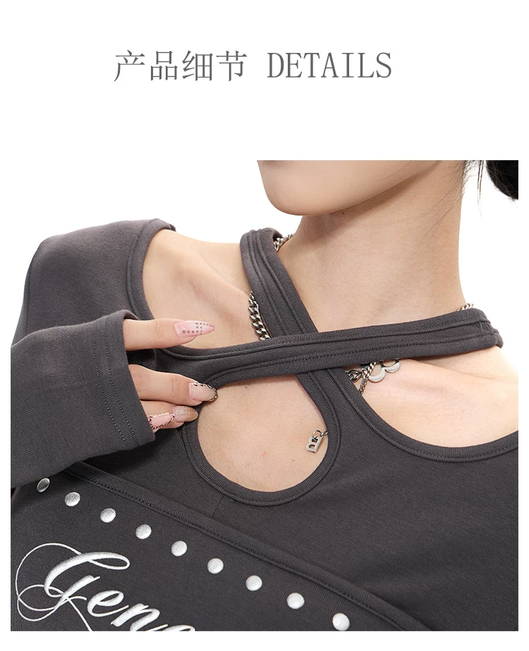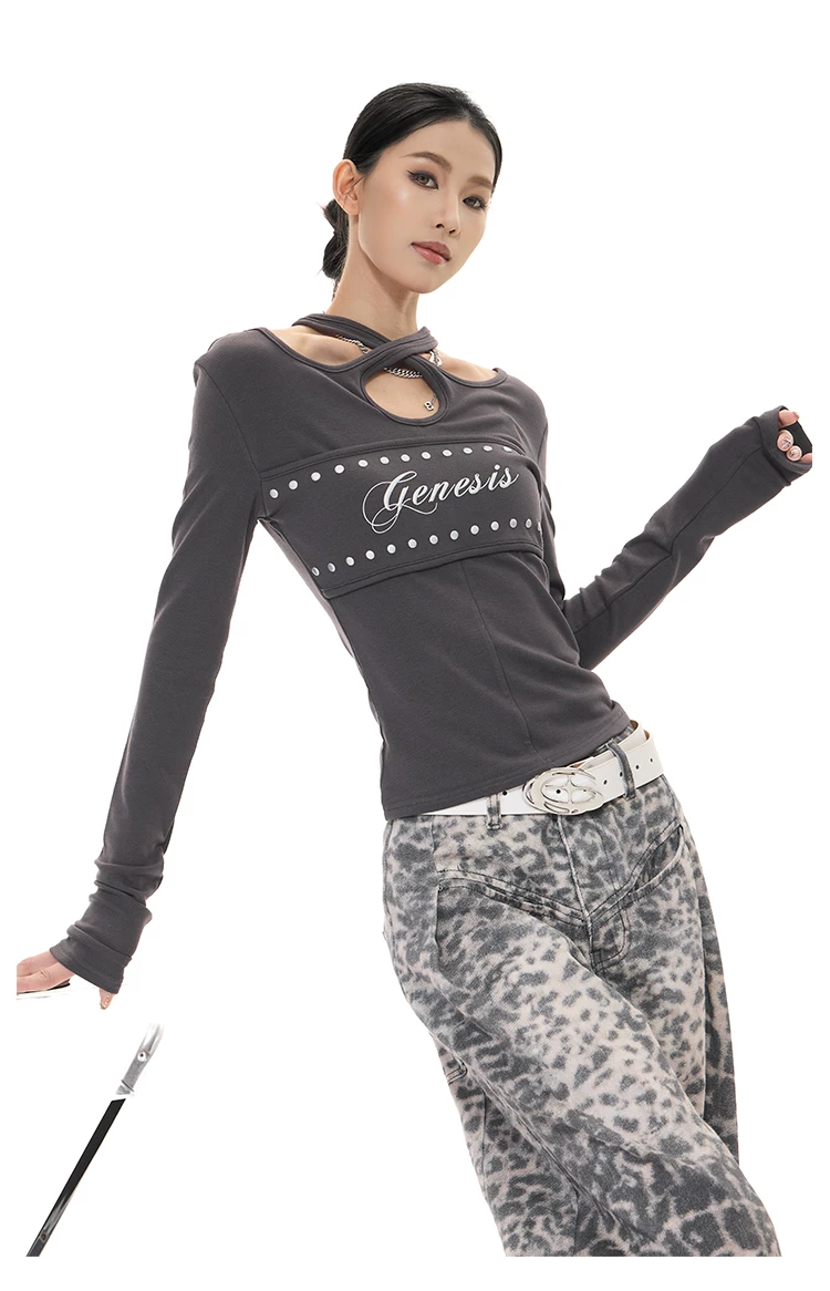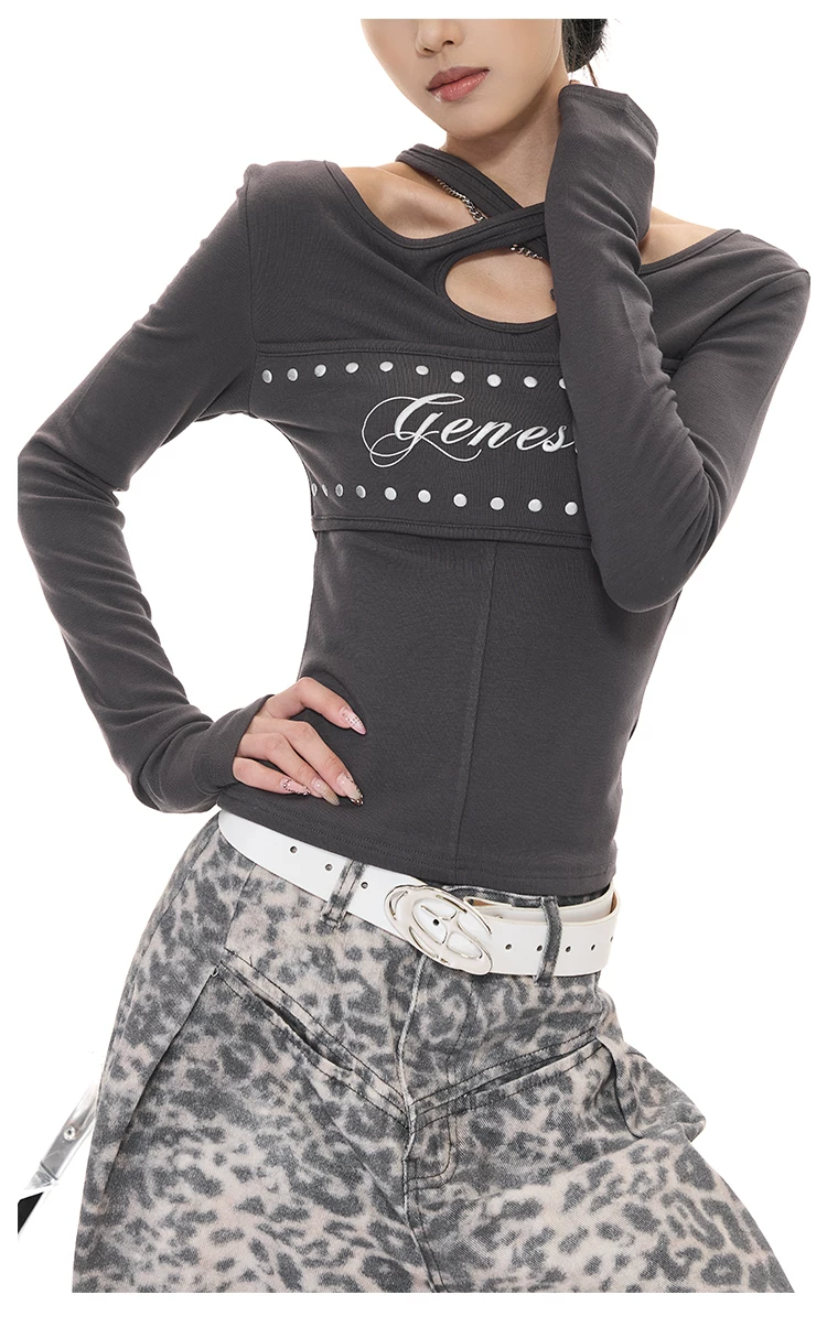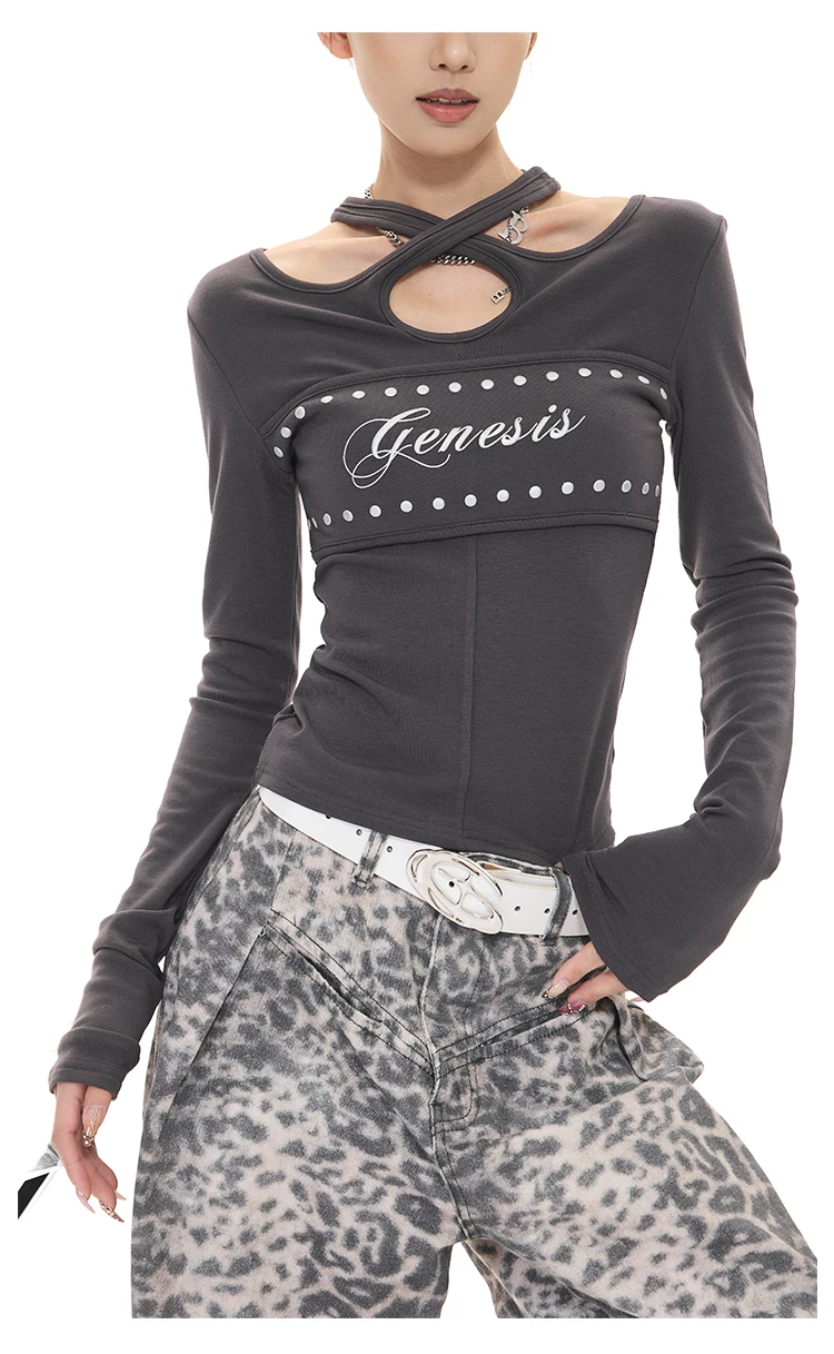 - KEN STUDIO Xuân Thu Phong Cách Mới Hot Girl Gợi Cảm In Chữ Áo Thun Dài Tay Nữ Slim Fit Đế Áo Sơ Mi