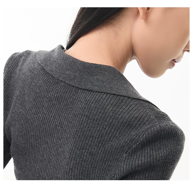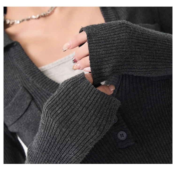 - KEN STUDIO Xuân Thu Phong Cách Mới Màu Xám Đậm Áo Len Dệt Kim Giả Hai Mảnh Áo Len Dệt Kim Dài Tay Slim-Fit Áo Sơ Mi Dài Tay Cho Nữ