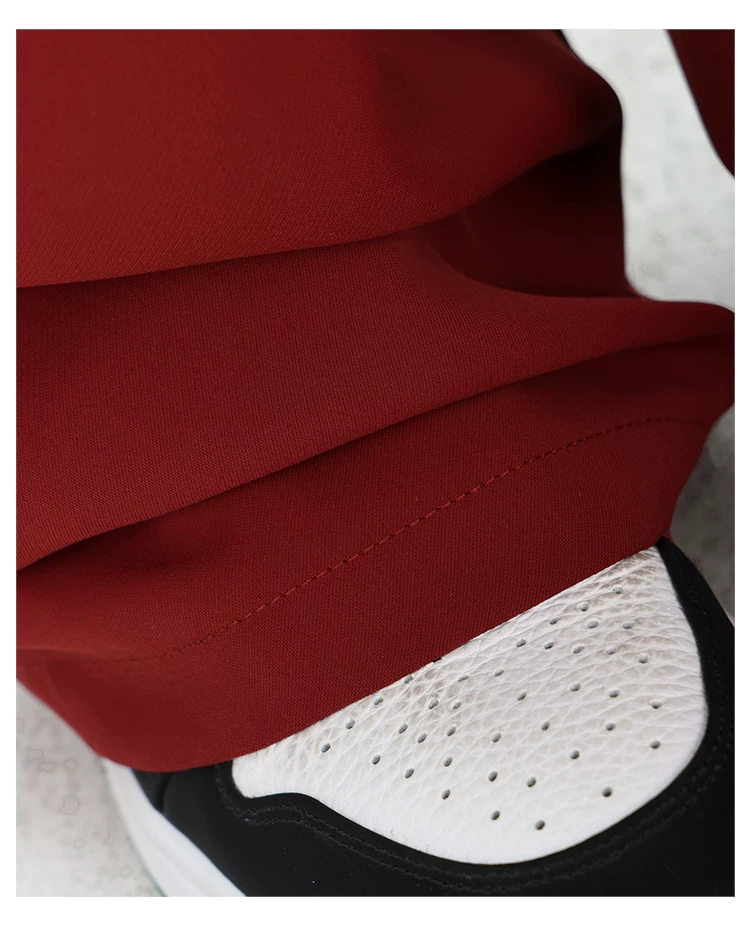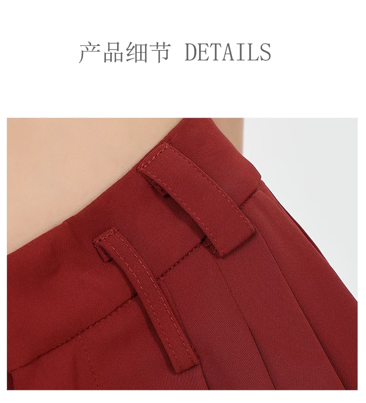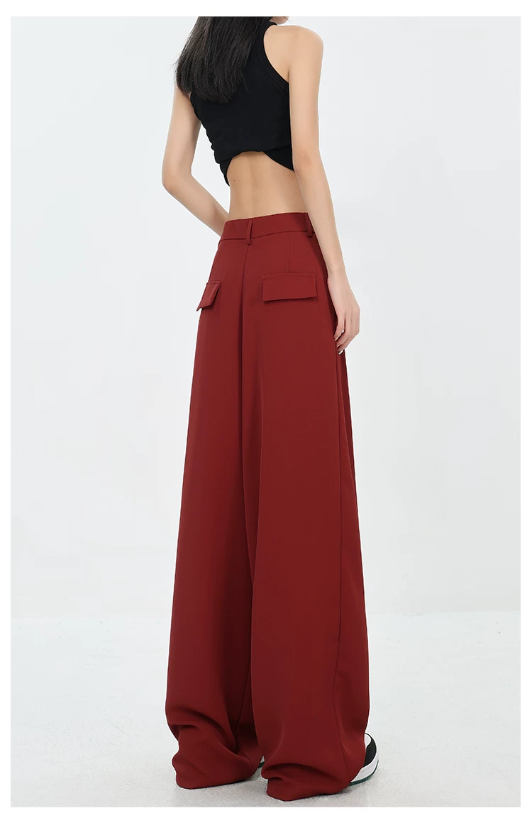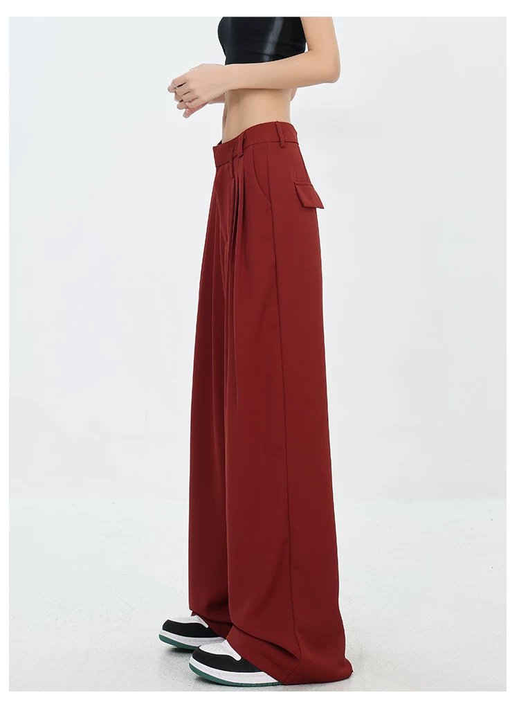 - KEN STUDIO Xuân Thu Phong cách mới Quần tây ống rộng màu đỏ mỏng xếp nếp dành cho nữ, Quần dài dáng rộng dáng rộng, quần dài thông thường