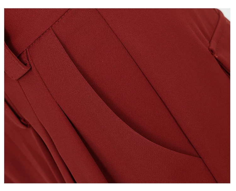 KEN STUDIO Xuân Thu Phong cách mới Quần tây ống rộng màu đỏ mỏng xếp nếp dành cho nữ, Quần dài dáng rộng dáng rộng, quần dài thông thường
