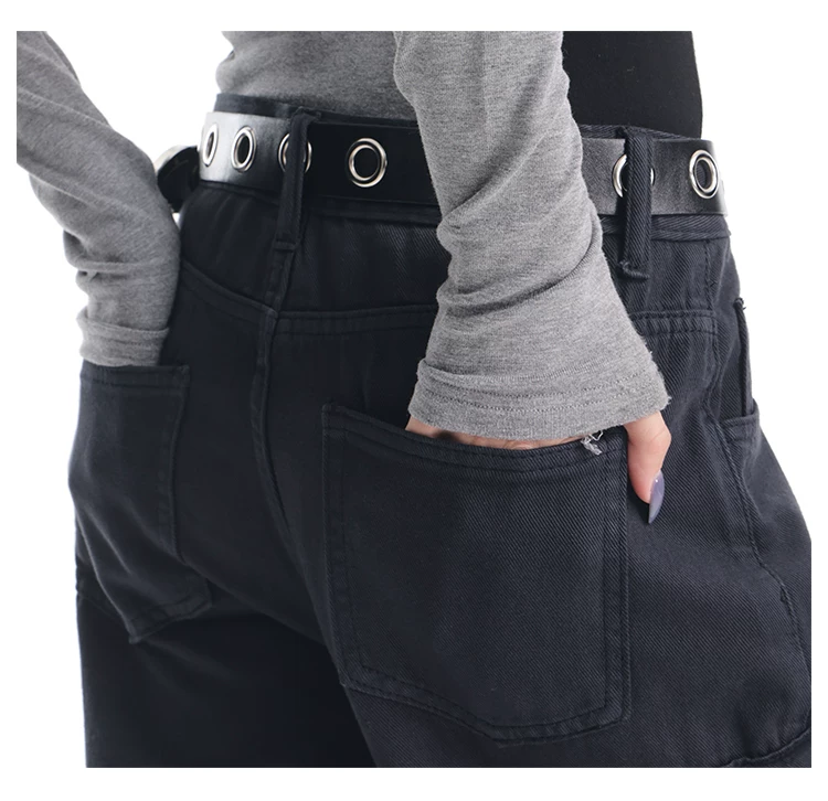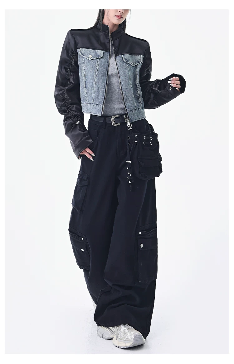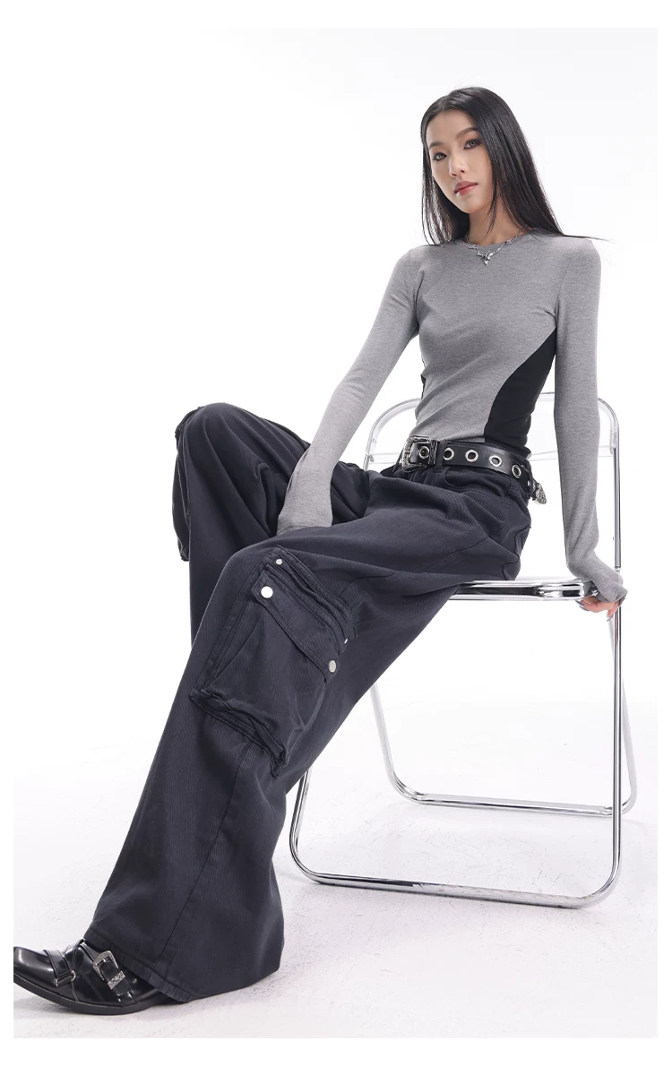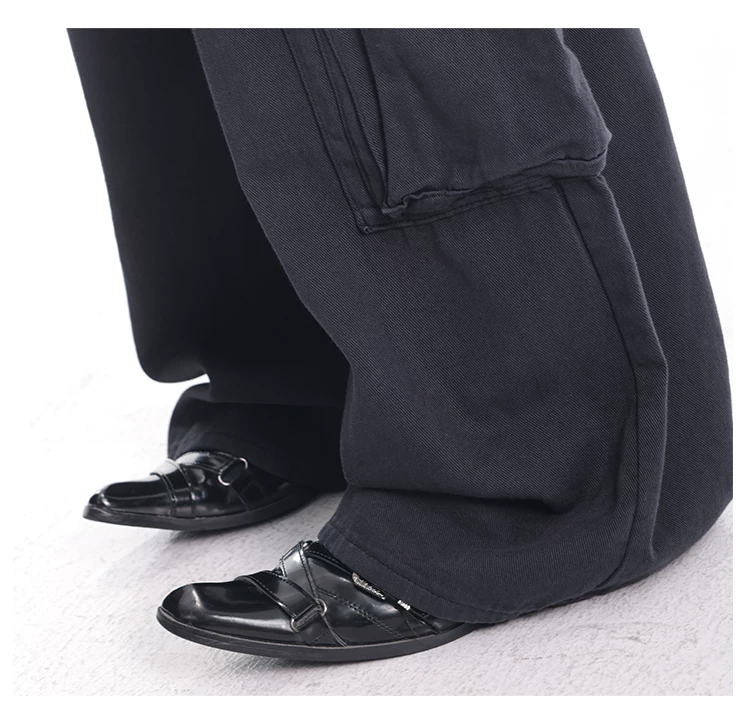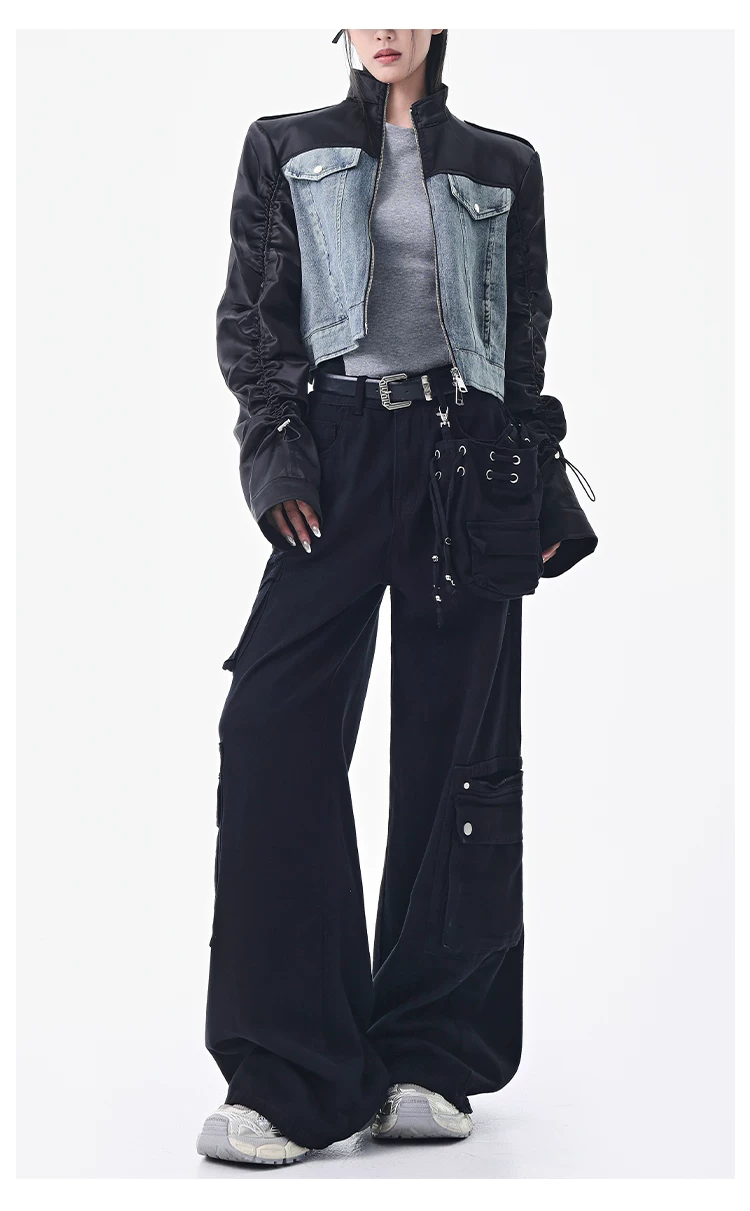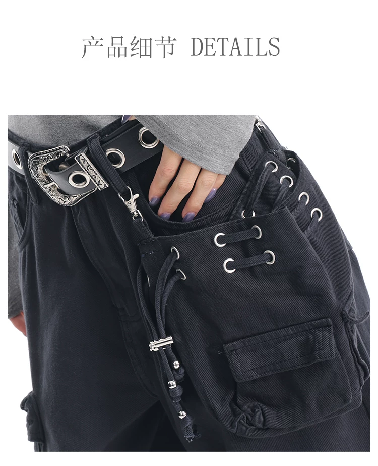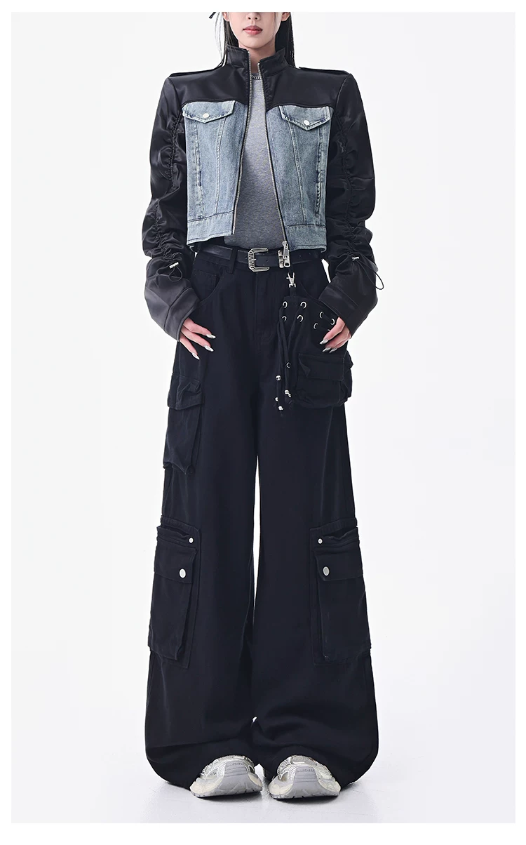 - KEN STUDIO Xuân Thu Quần Cargo Đường Phố Cao Cấp Màu Xanh Hải Quân Mới Quần Cargo Nữ Nhiều Túi Quần Ống Rộng Quần Ống Rộng