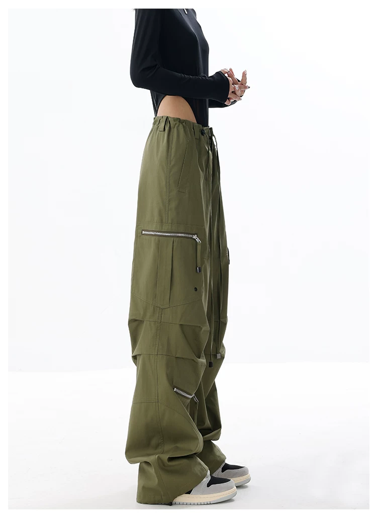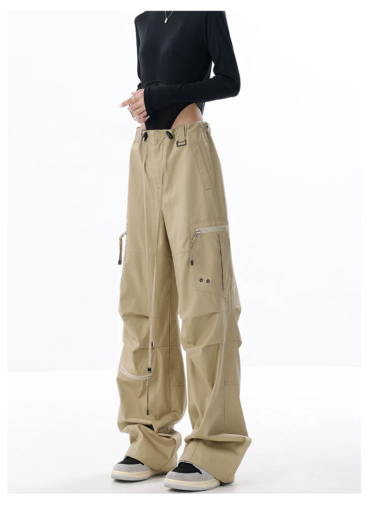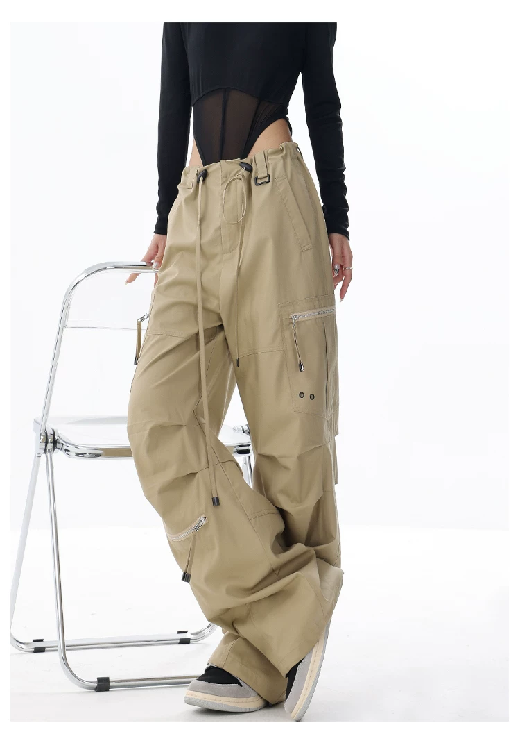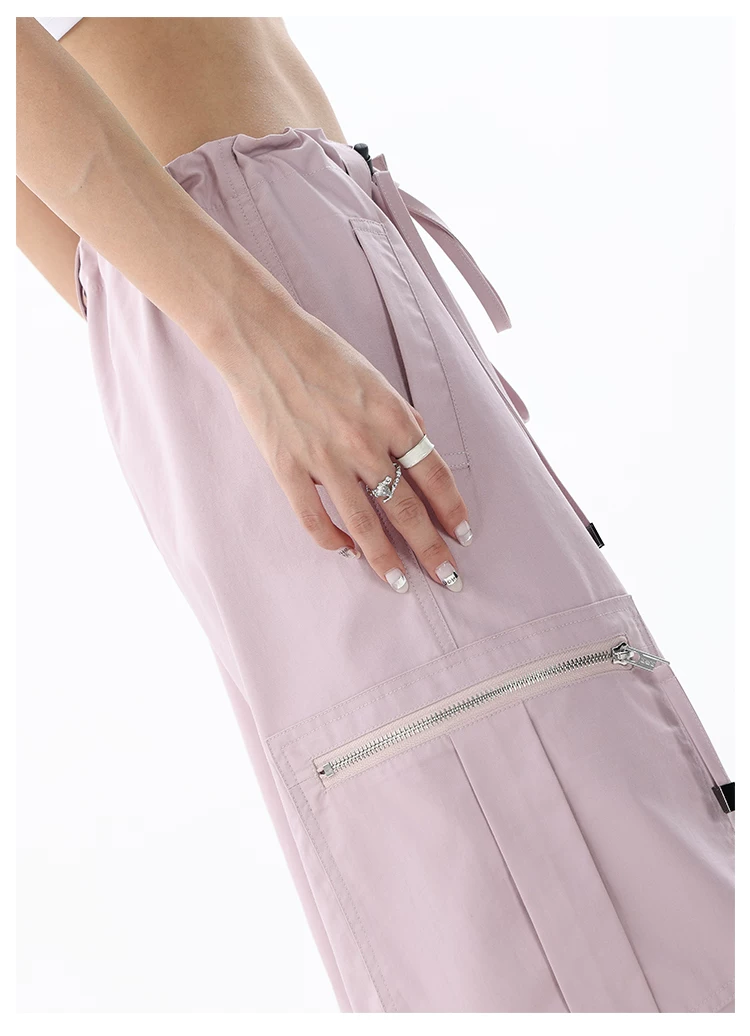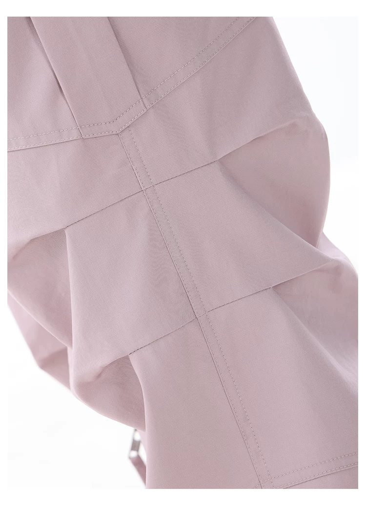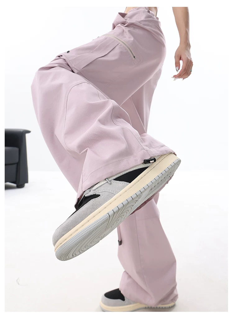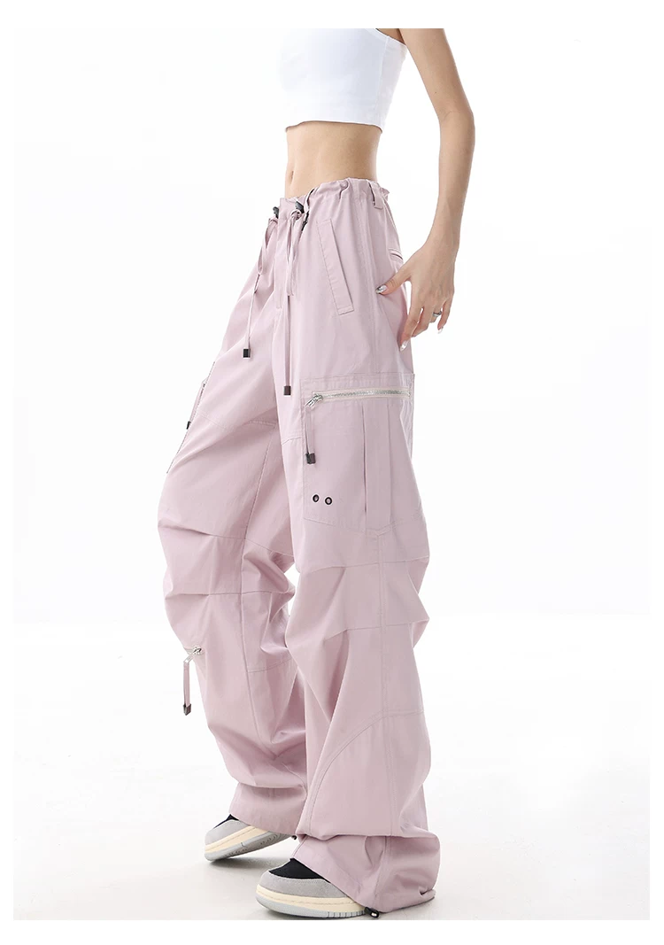 - KEN STUDIO Xuân Thu Quần Cargo ống rộng xếp ly màu hồng mới dành cho nữ Quần dài dáng rộng lưng cao dáng rộng giúp giảm béo Quần dài thường ngày