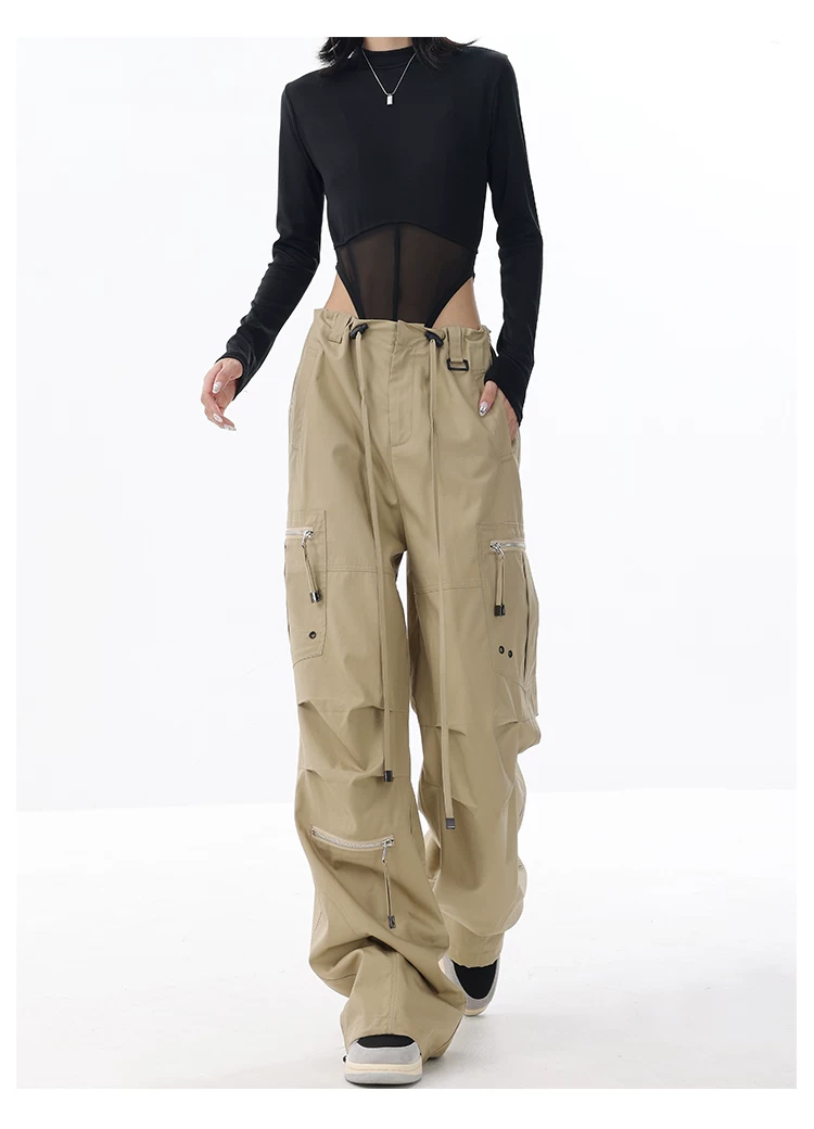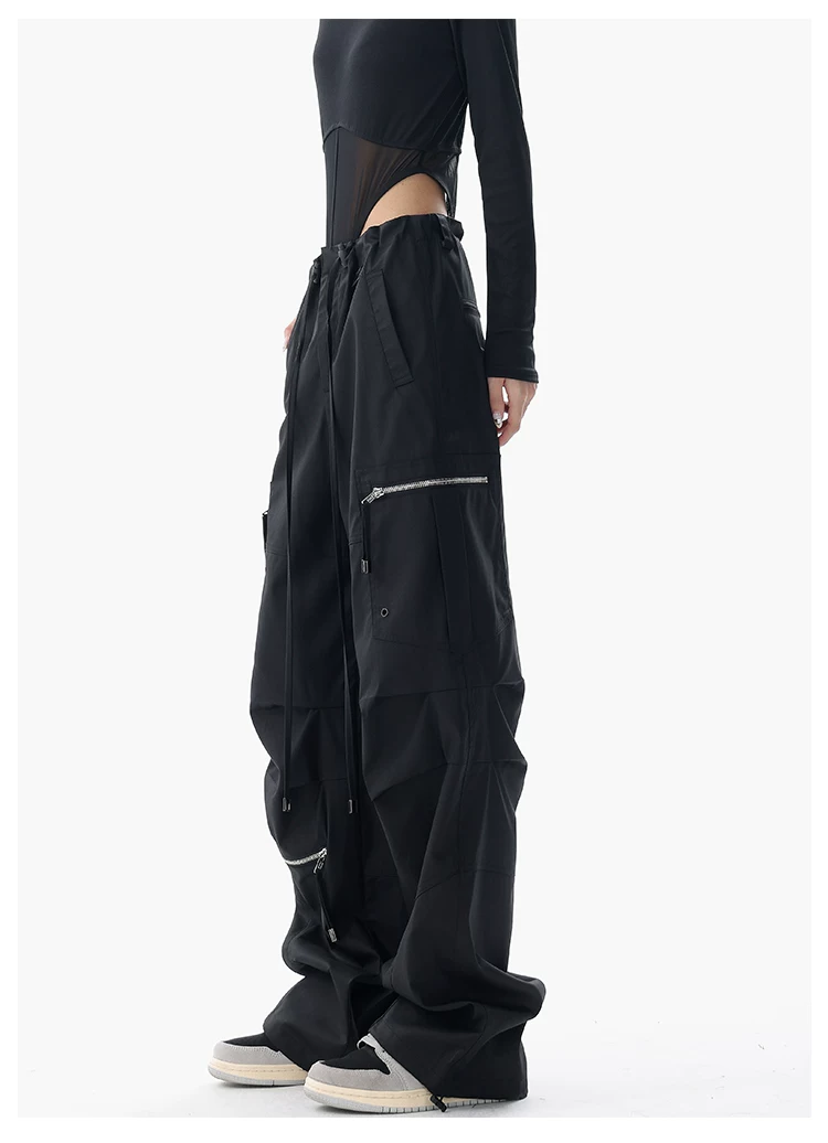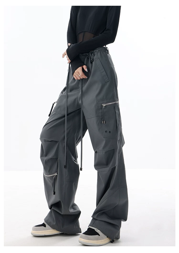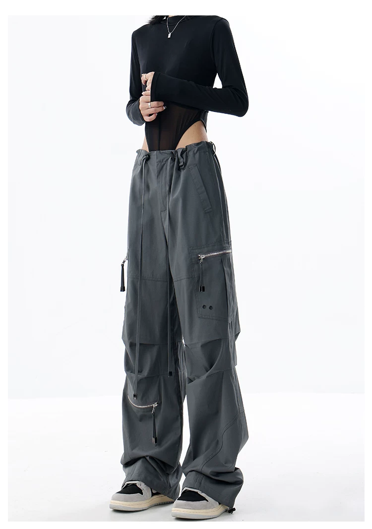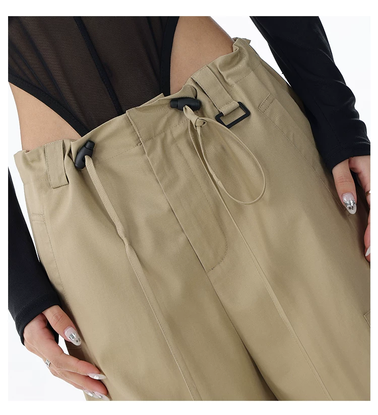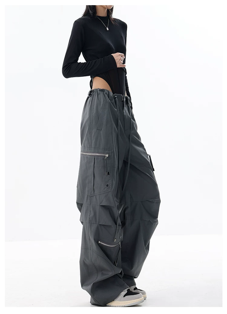 - KEN STUDIO Xuân Thu Quần Cargo ống rộng xếp ly màu hồng mới dành cho nữ Quần dài dáng rộng lưng cao dáng rộng giúp giảm béo Quần dài thường ngày