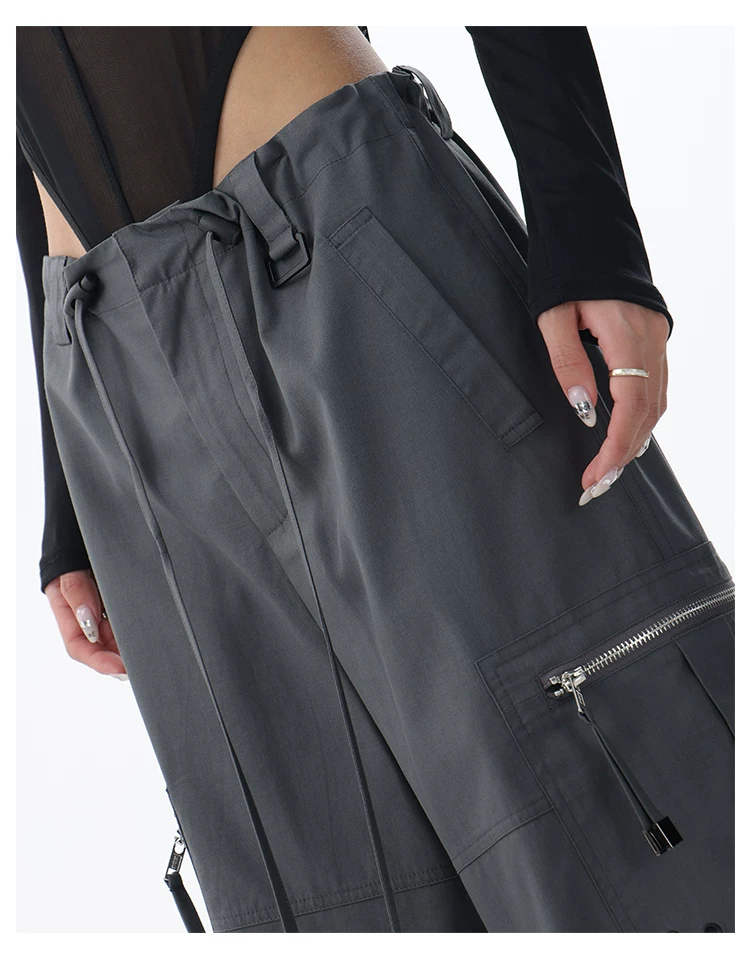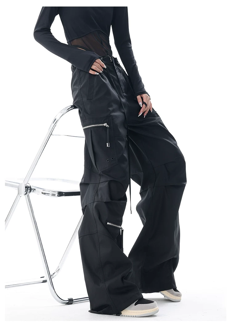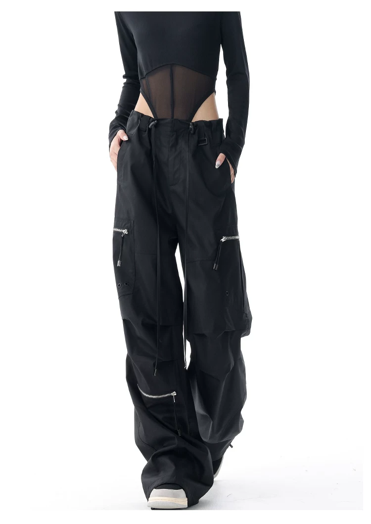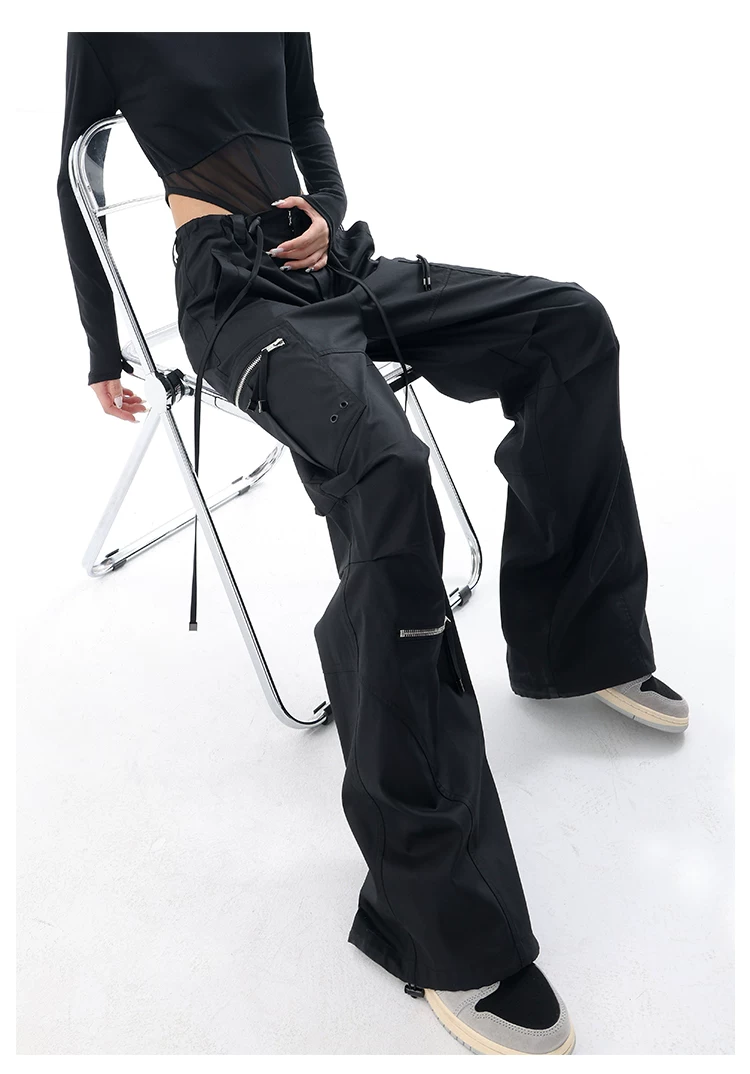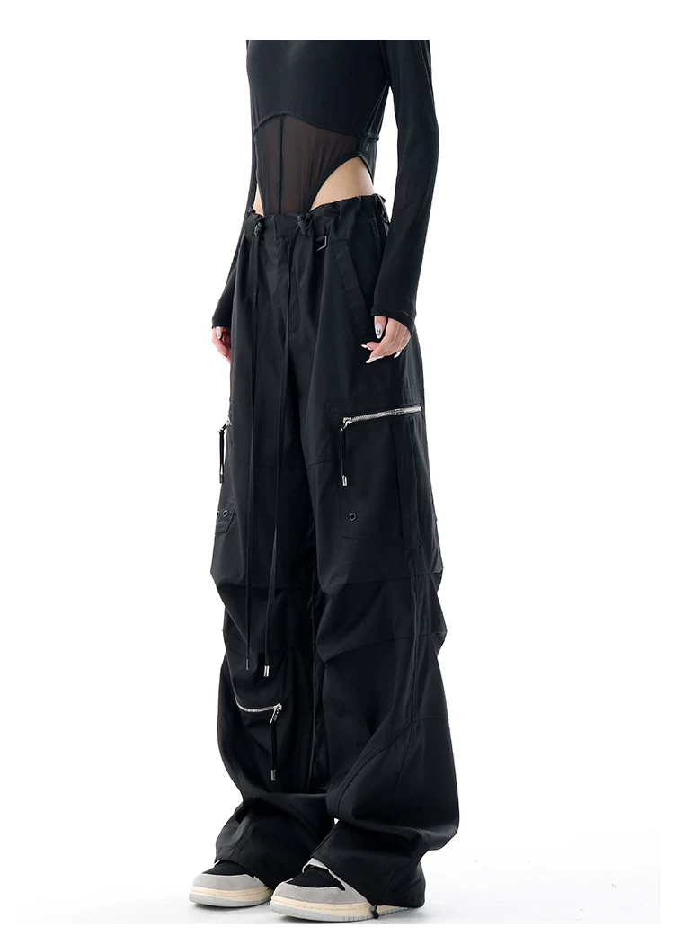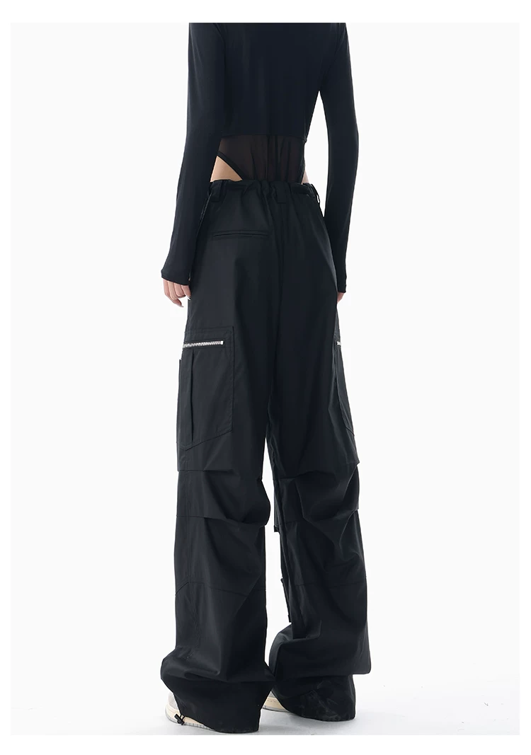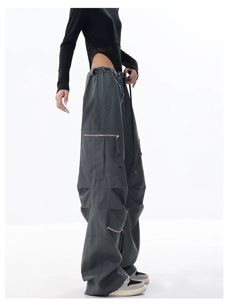 - KEN STUDIO Xuân Thu Quần Cargo ống rộng xếp ly màu hồng mới dành cho nữ Quần dài dáng rộng lưng cao dáng rộng giúp giảm béo Quần dài thường ngày