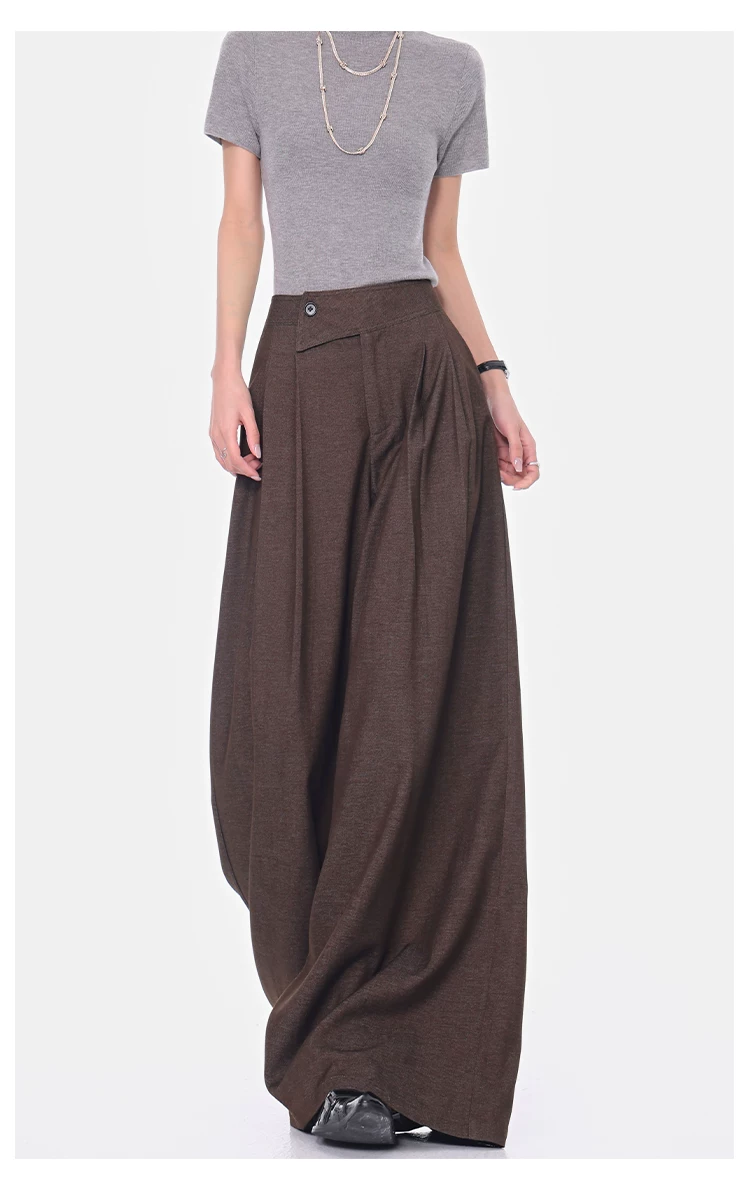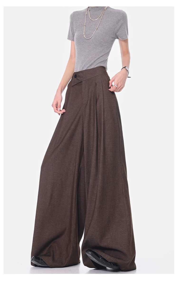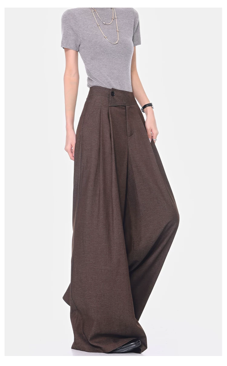 - KEN STUDIO Xuân Thu Quần dài ống rộng màu cà phê mới dành cho nữ Quần dài ống rộng lưng cao đa năng Quần dài ống rộng dài đến sàn