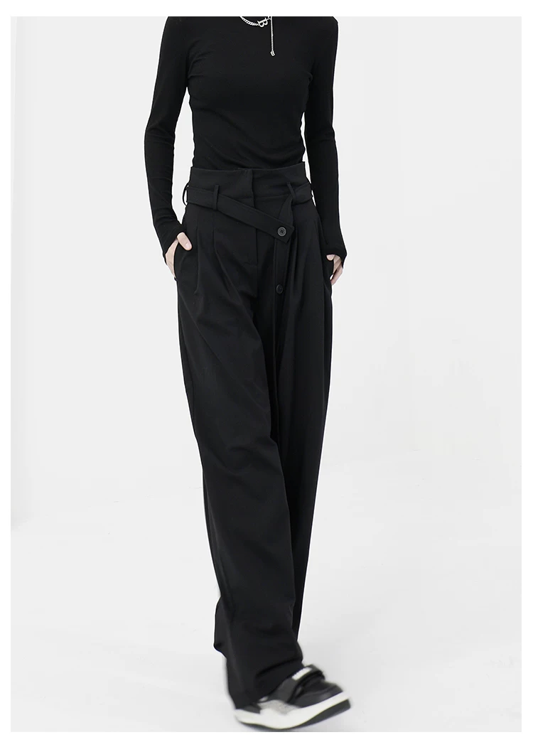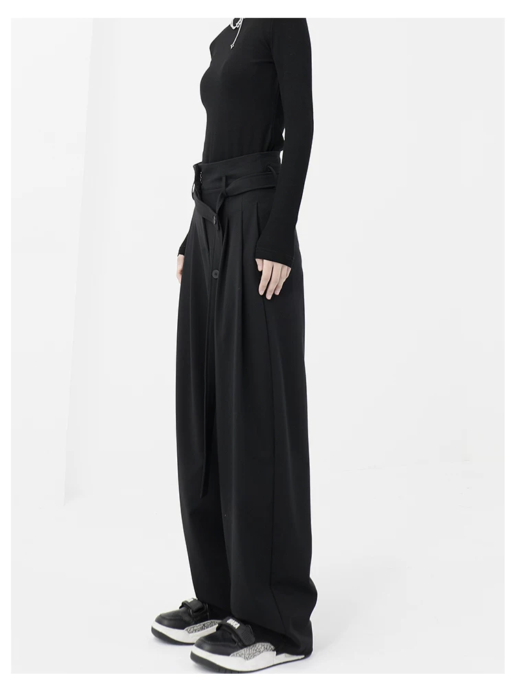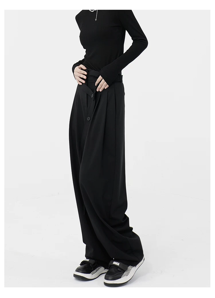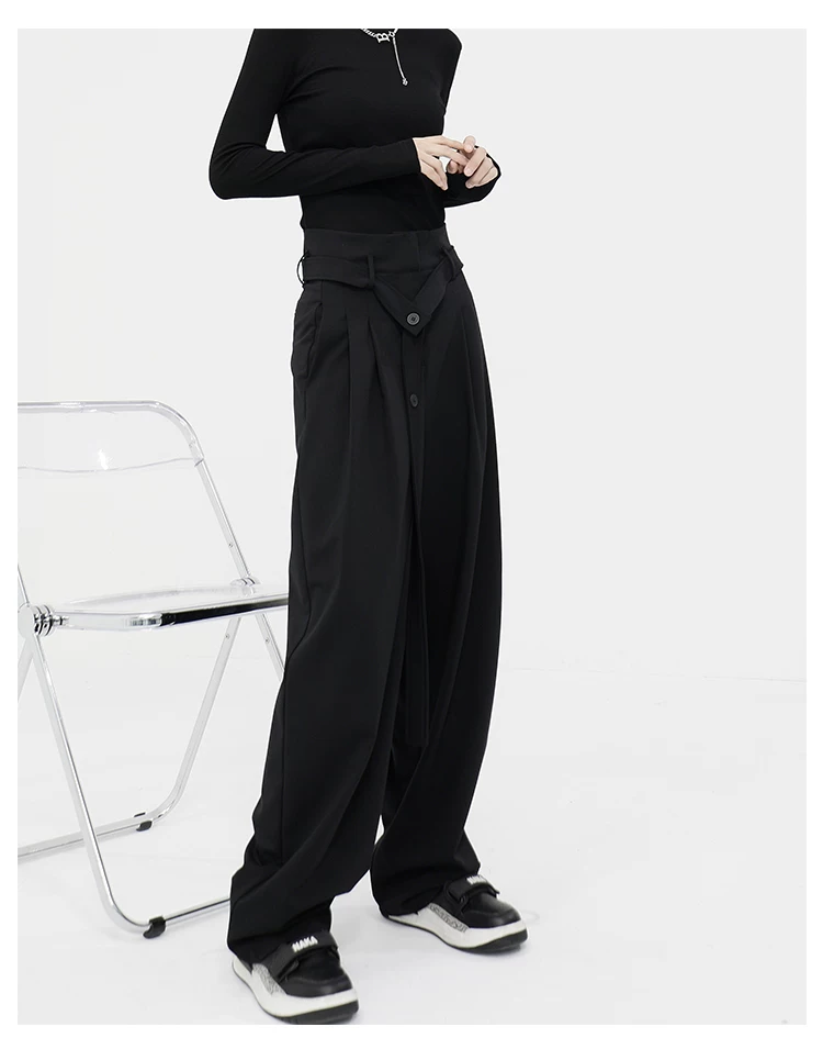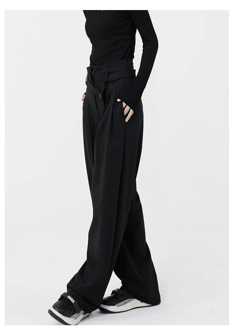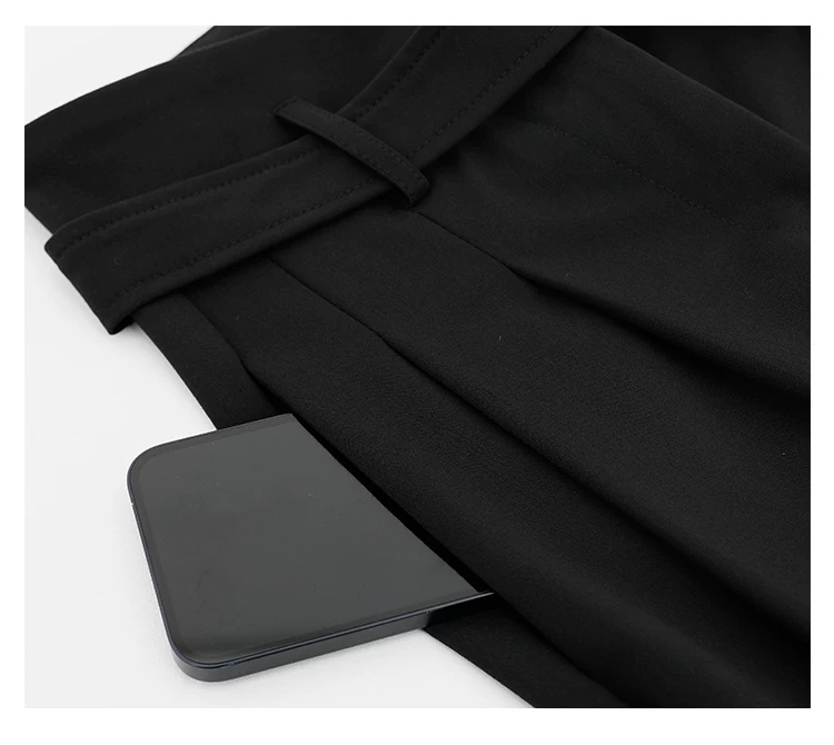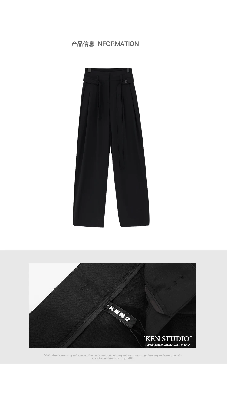 - KEN STUDIO Xuân Thu Quần đen cạp cao dáng thẳng có tác dụng làm thon gọn dáng người Quần dài đến sàn Quần tây nữ