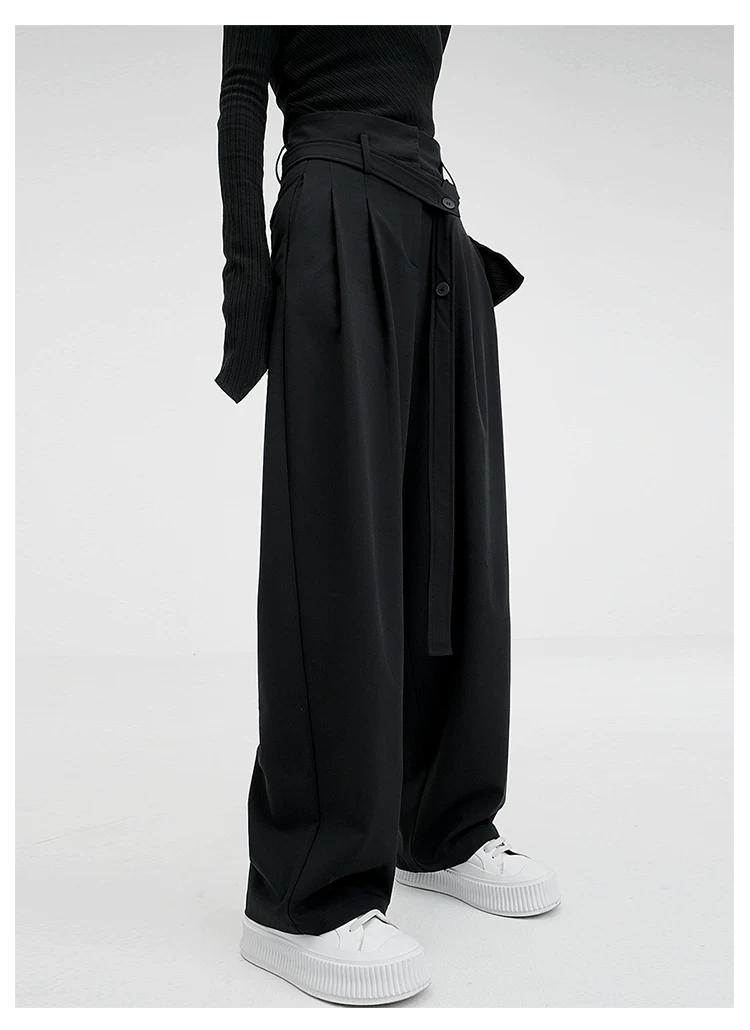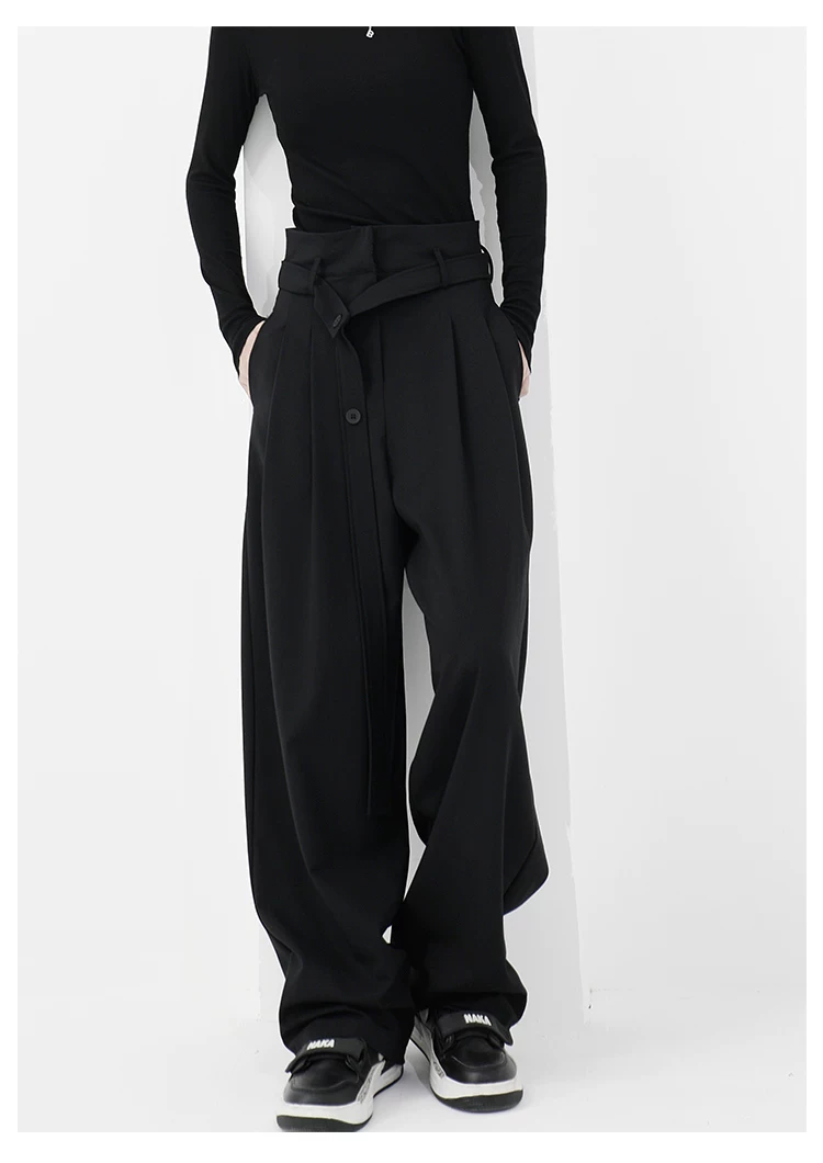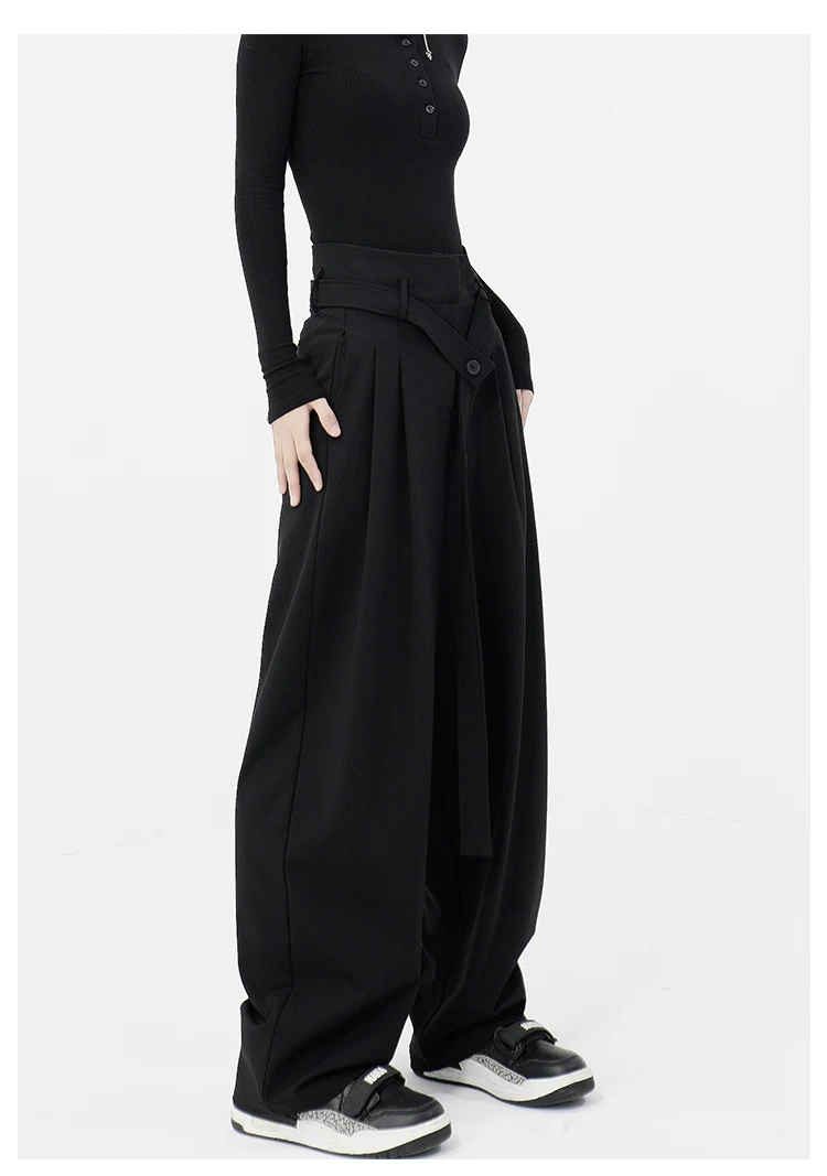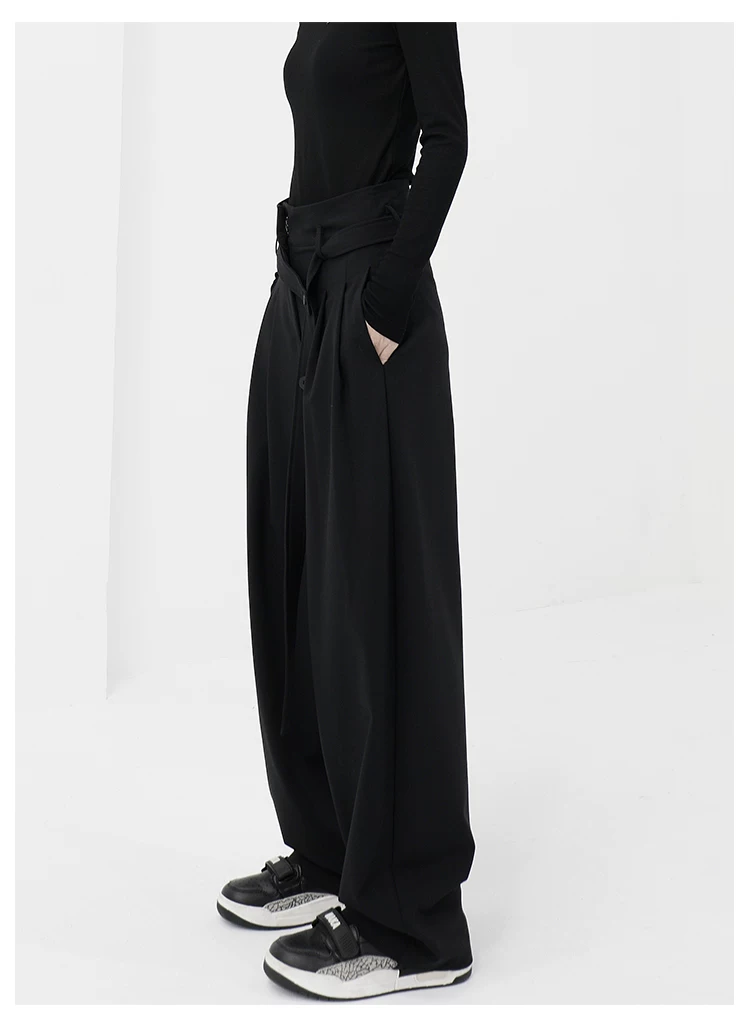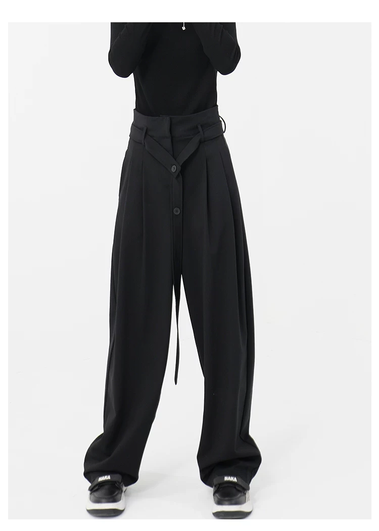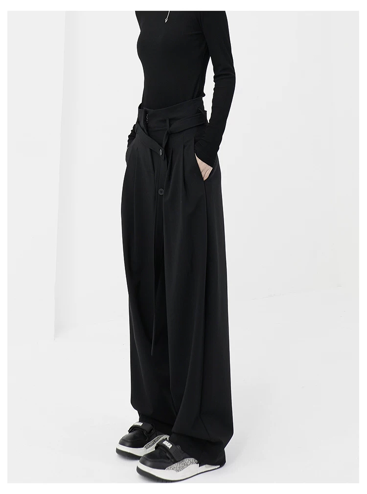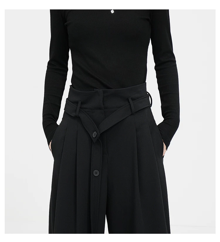 - KEN STUDIO Xuân Thu Quần đen cạp cao dáng thẳng có tác dụng làm thon gọn dáng người Quần dài đến sàn Quần tây nữ