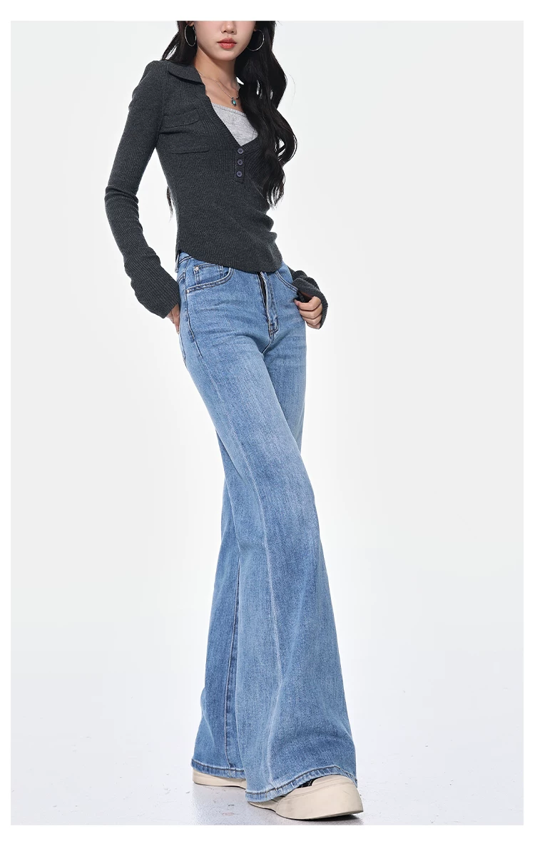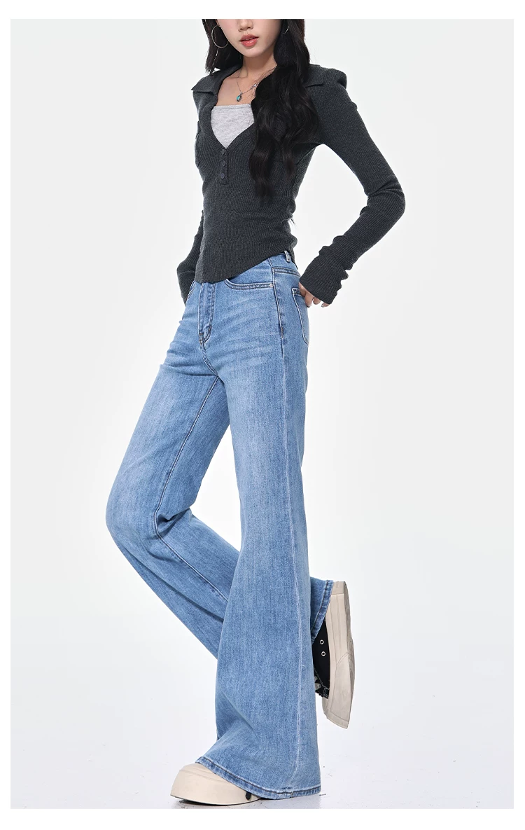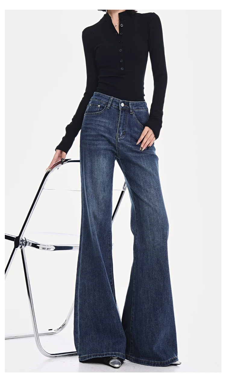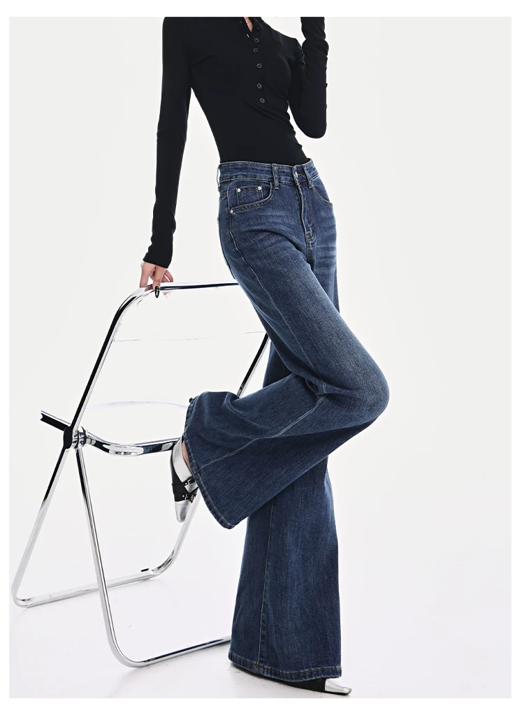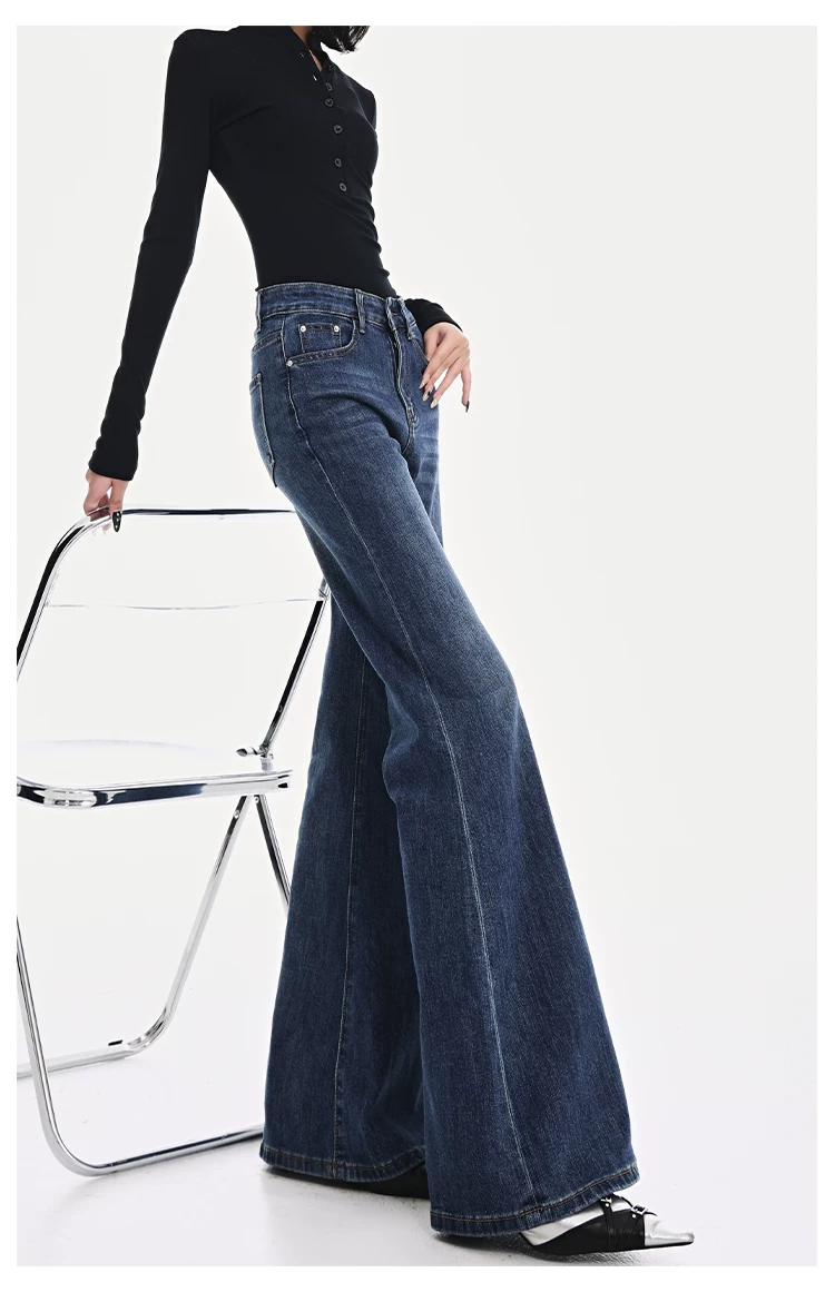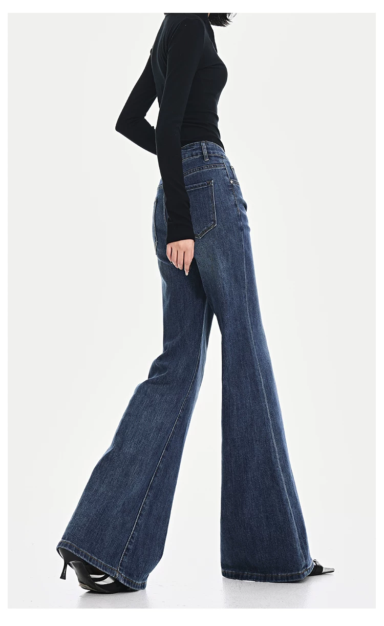 - KEN STUDIO Xuân Thu Quần Jean ống loe màu đen mới dành cho nữ, Quần thun lưng cao co giãn giảm béo Hot Girl Quần đáy chuông
