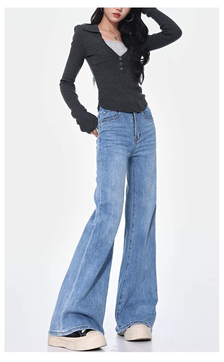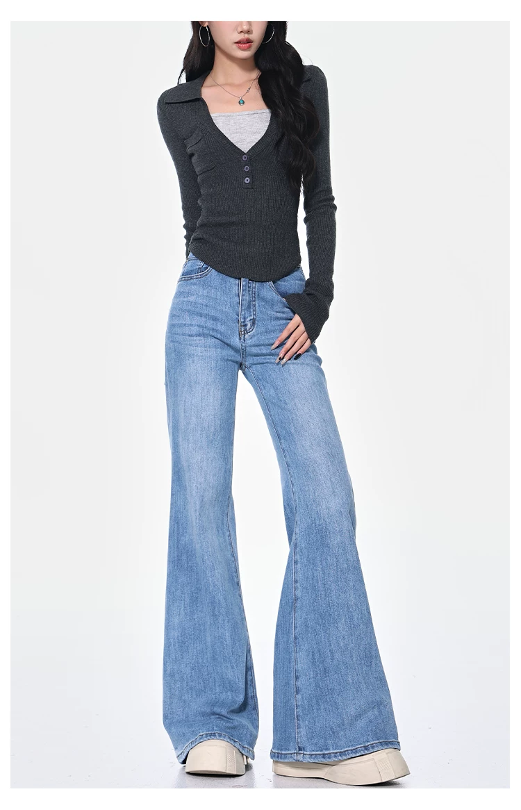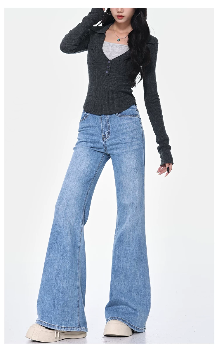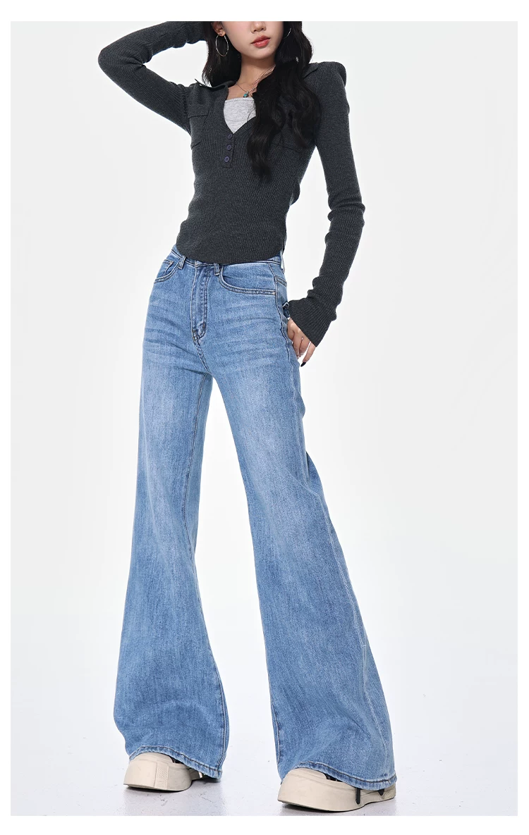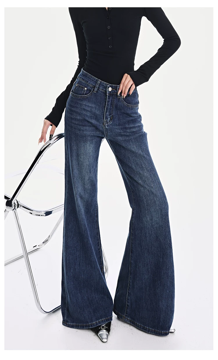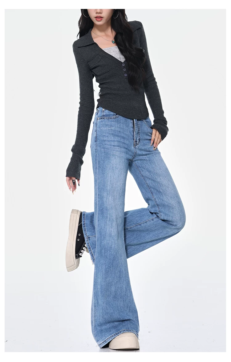 - KEN STUDIO Xuân Thu Quần Jean ống loe màu đen mới dành cho nữ, Quần thun lưng cao co giãn giảm béo Hot Girl Quần đáy chuông