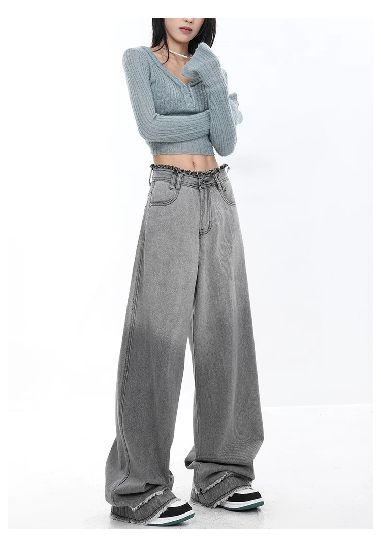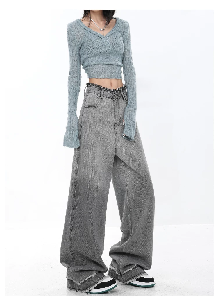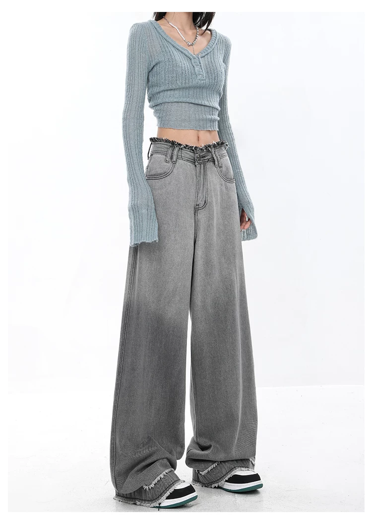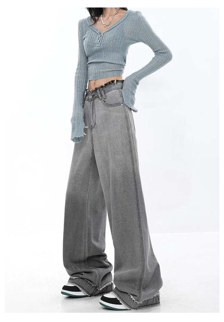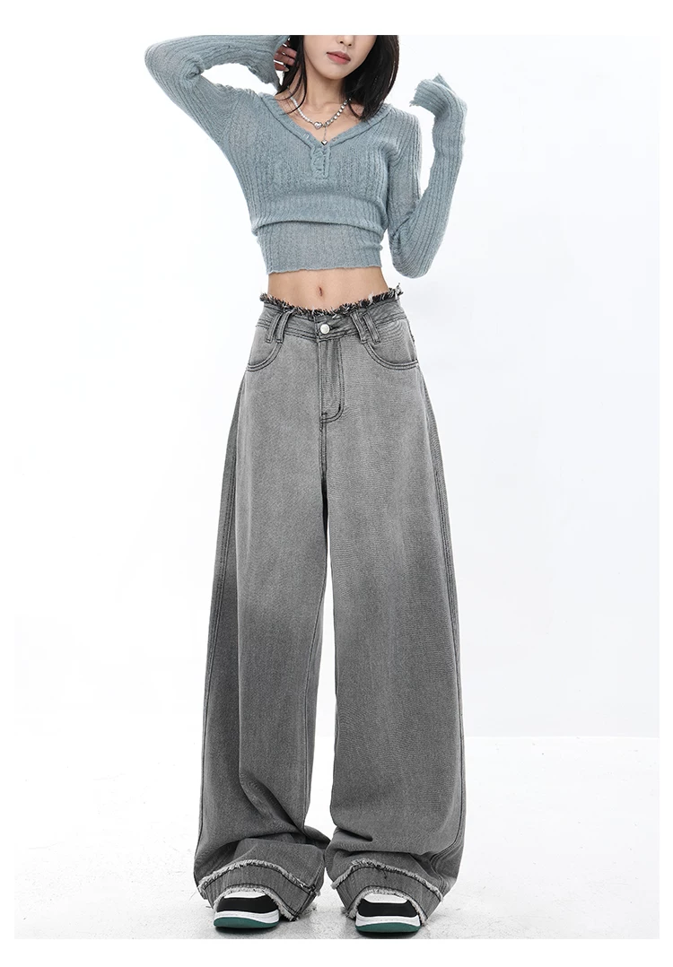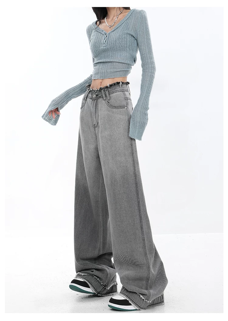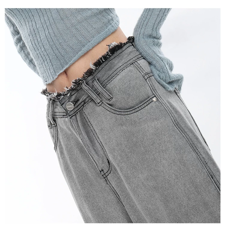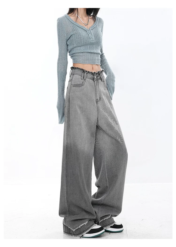 - KEN STUDIO Xuân Thu Quần Jeans Cổ Điển Mới Phong Cách Vintage Cho Nữ Thiết Kế Giảm Béo Quần Ống Rộng