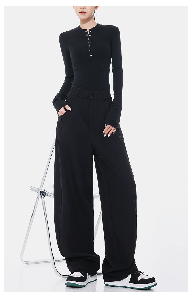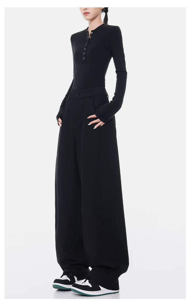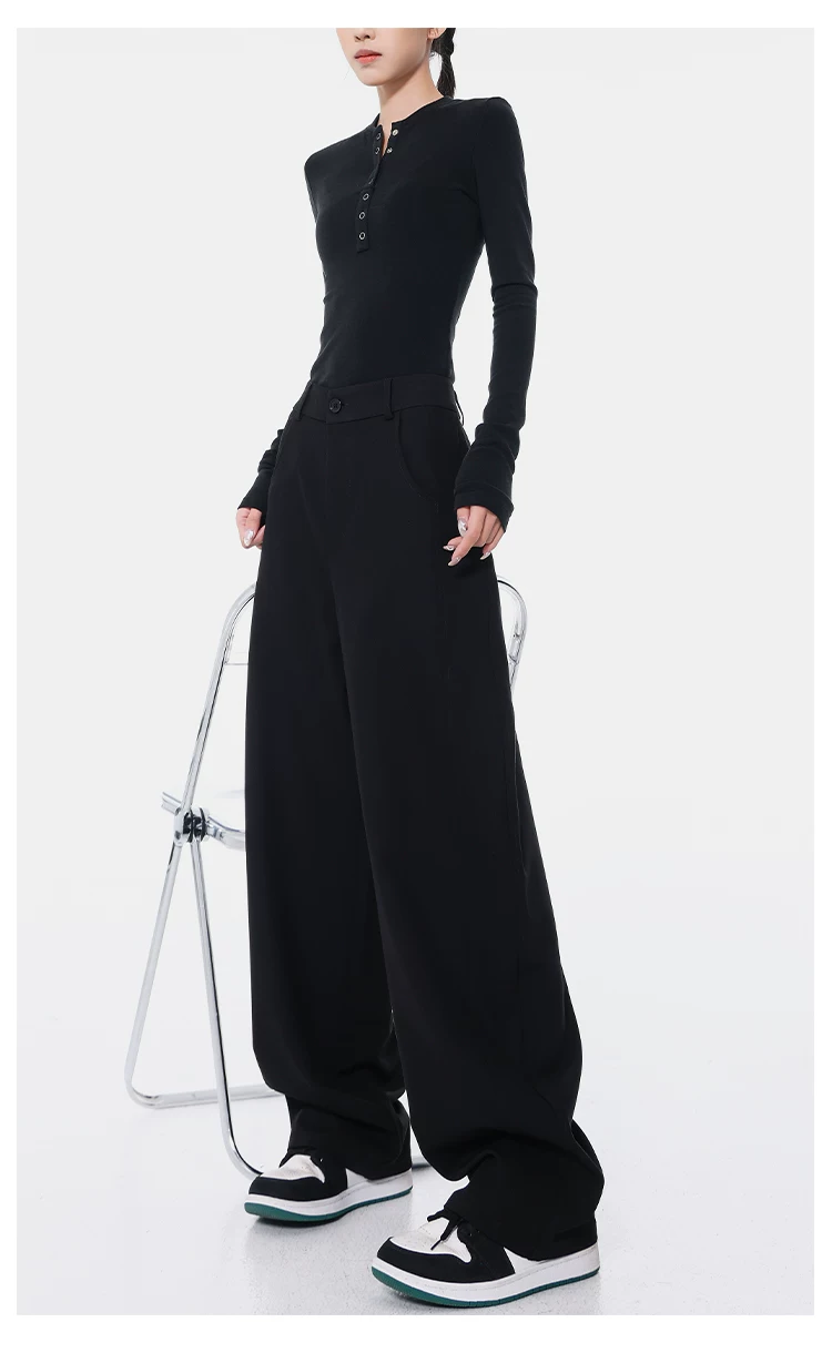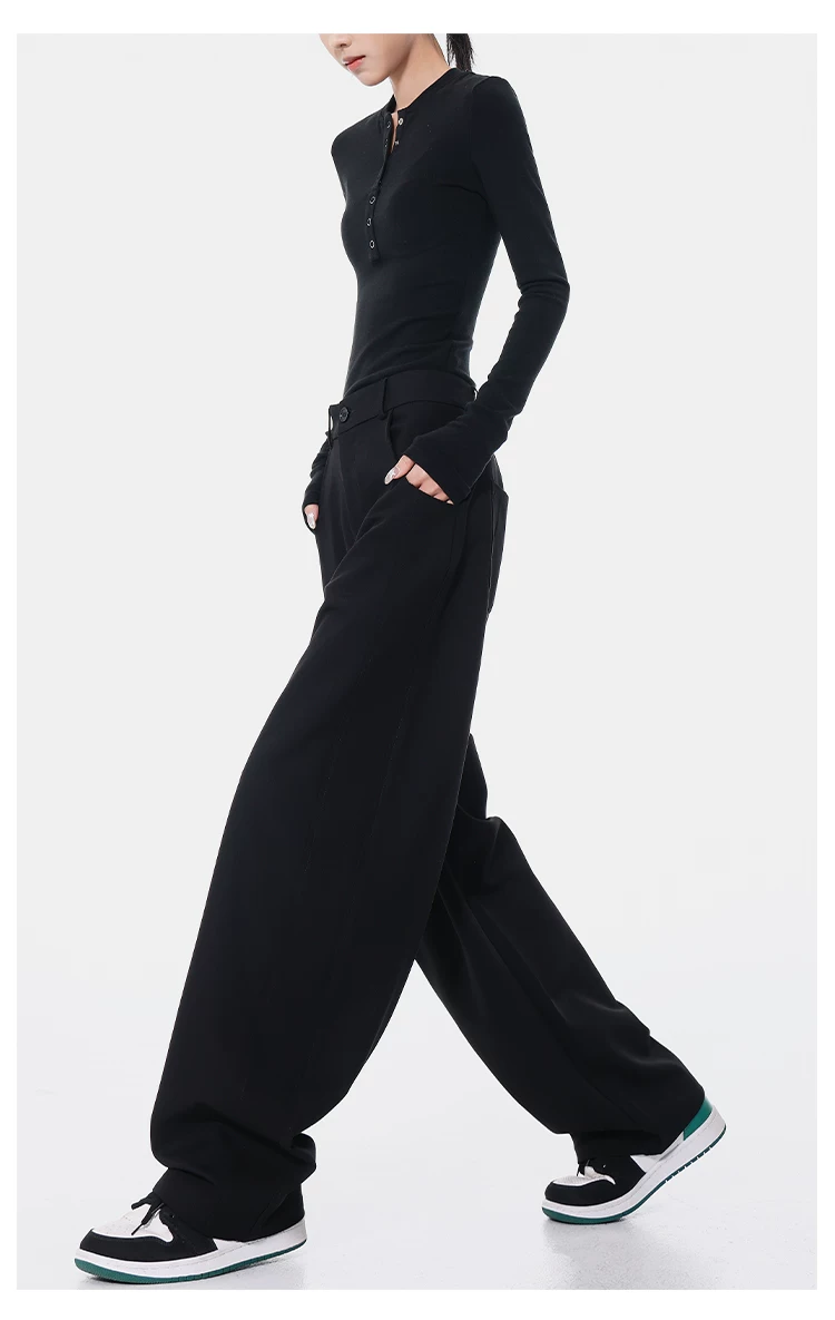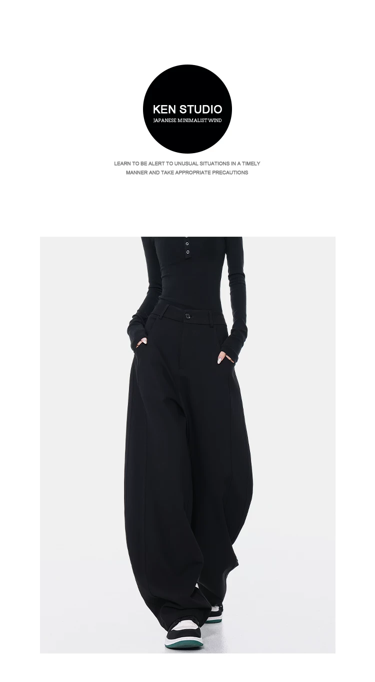 KEN STUDIO Xuân Thu Quần Scimitar đen Quần Scythe Suit Quần nữ dáng rộng Quần thường ngày Quần chuối Quần dài