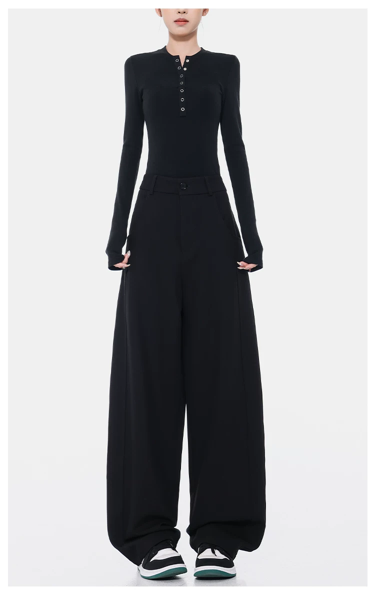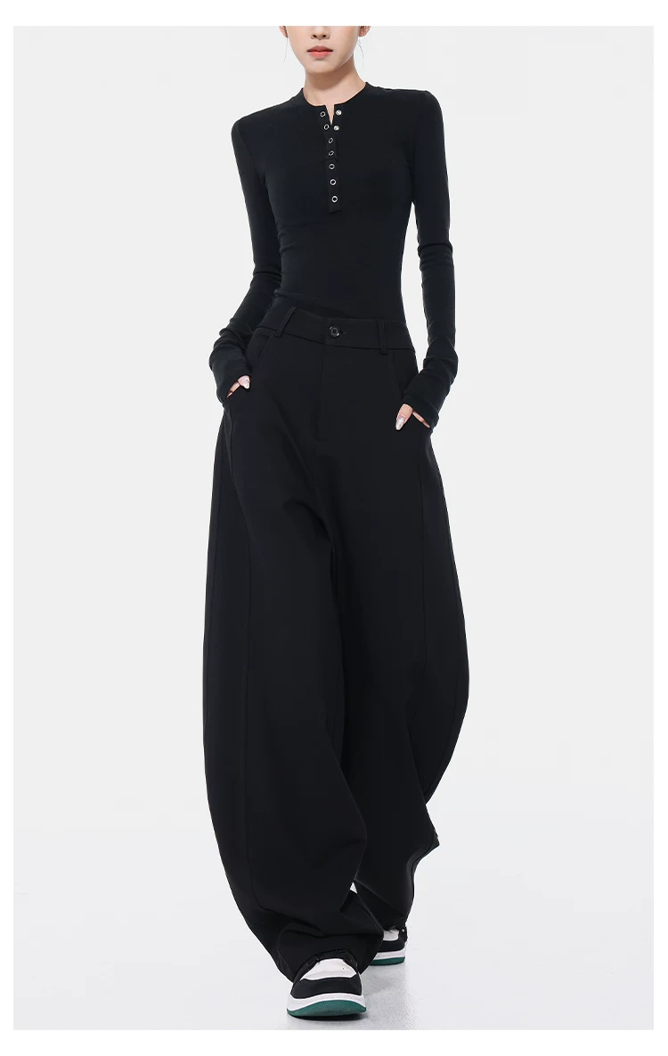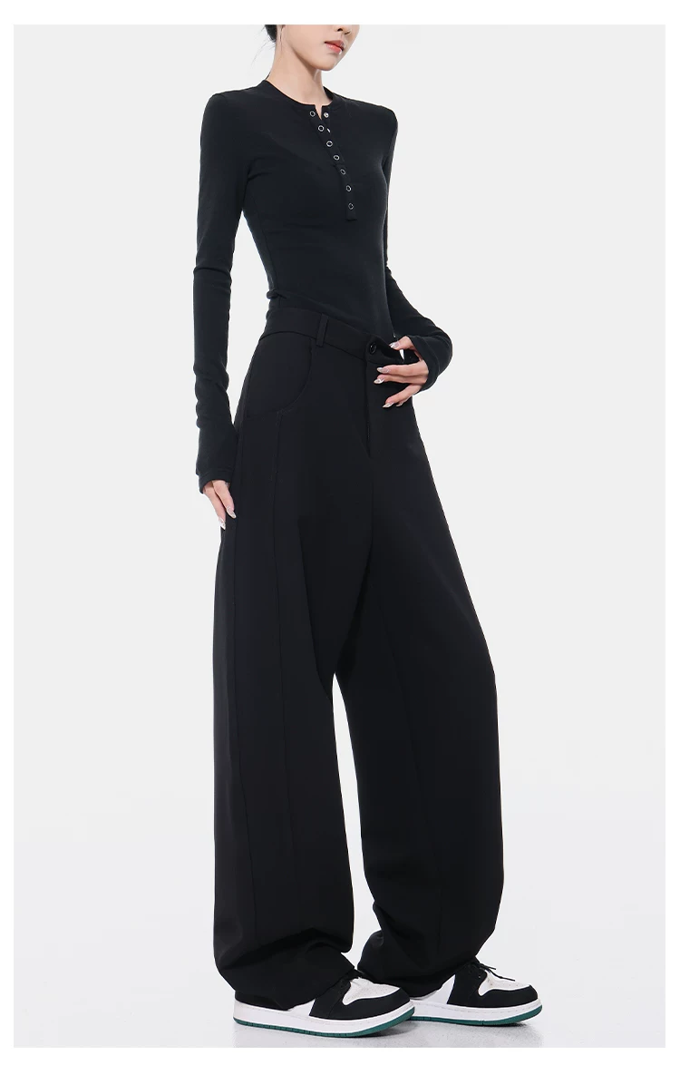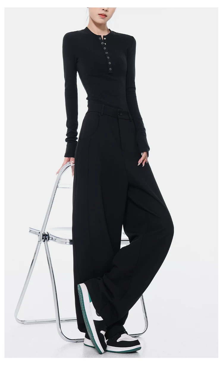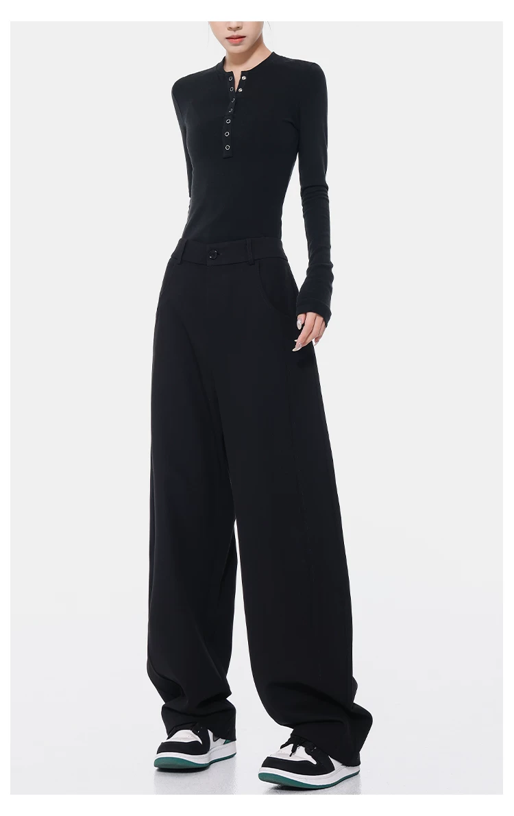 KEN STUDIO Xuân Thu Quần Scimitar đen Quần Scythe Suit Quần nữ dáng rộng Quần thường ngày Quần chuối Quần dài