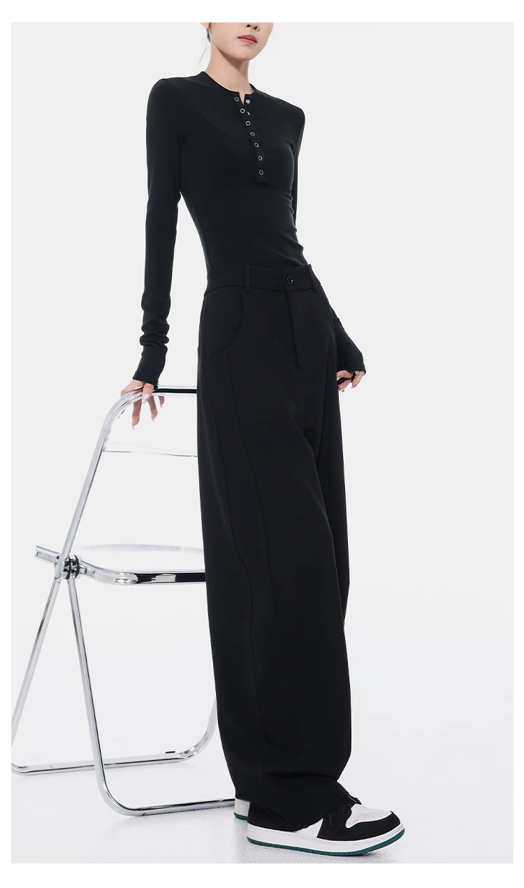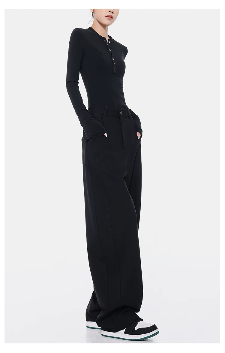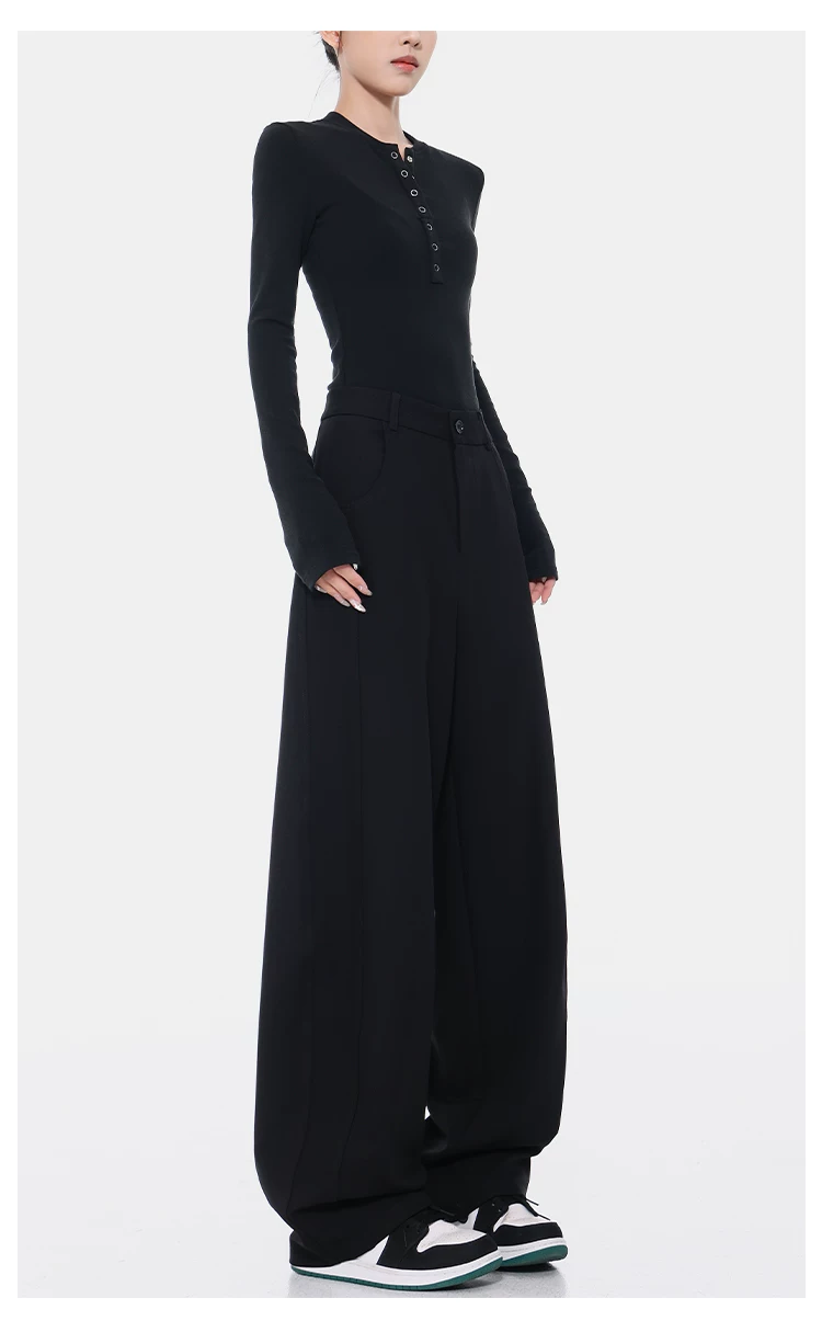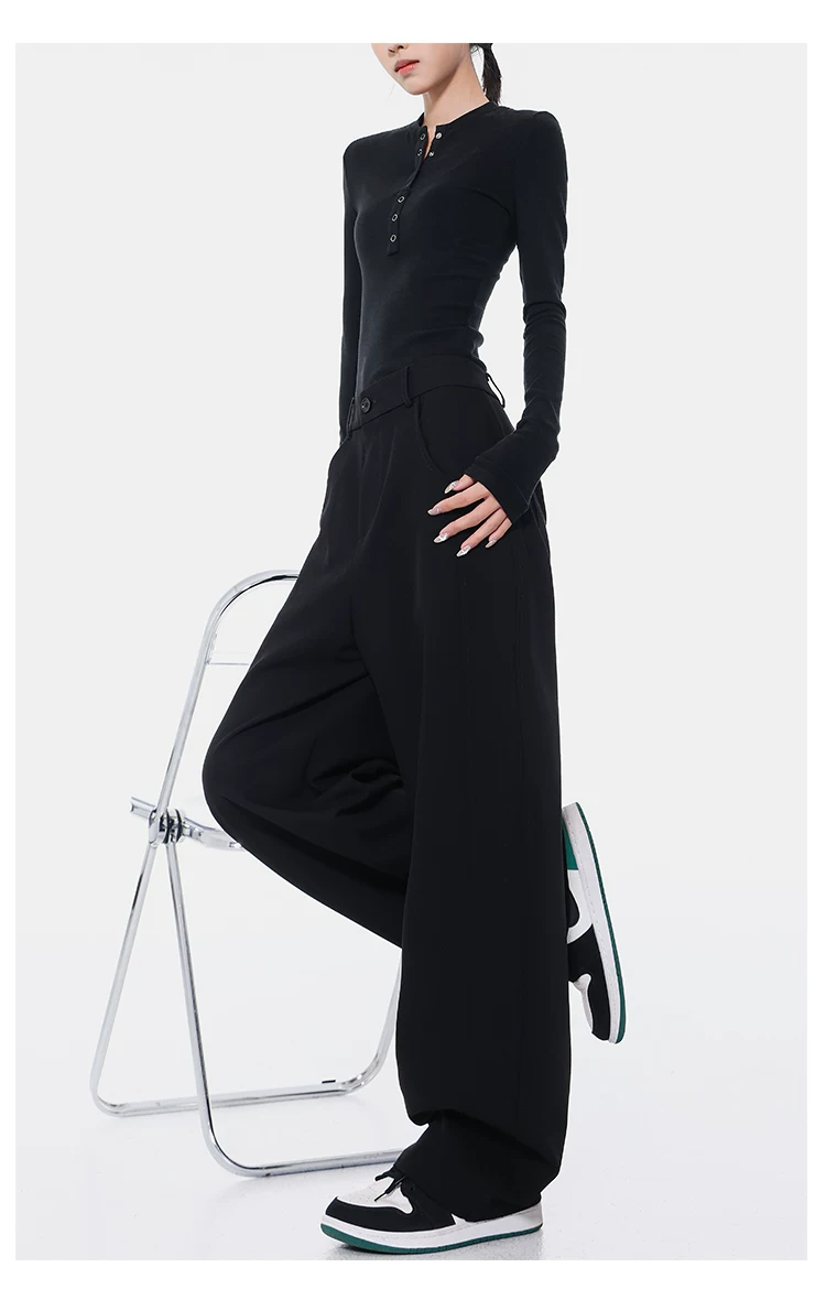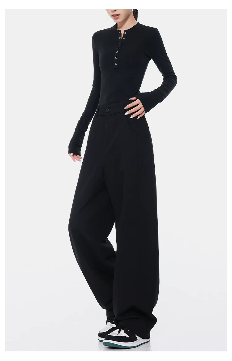 KEN STUDIO Xuân Thu Quần Scimitar đen Quần Scythe Suit Quần nữ dáng rộng Quần thường ngày Quần chuối Quần dài