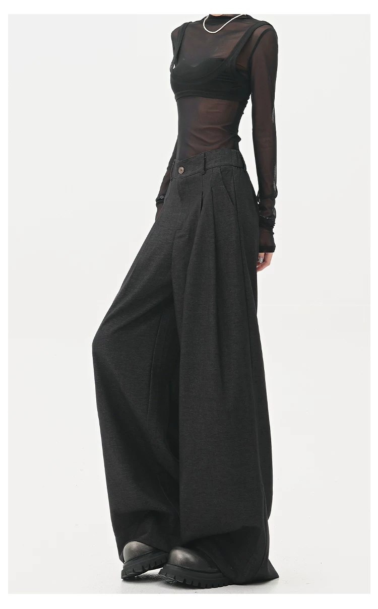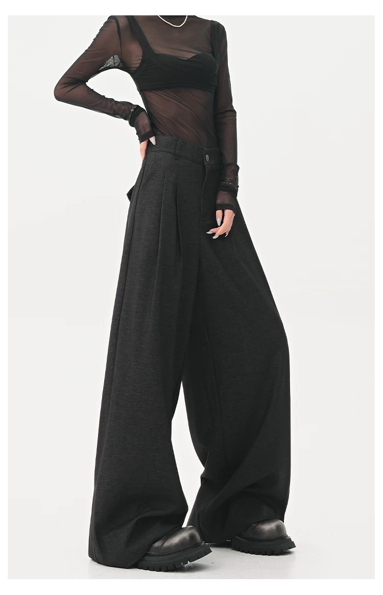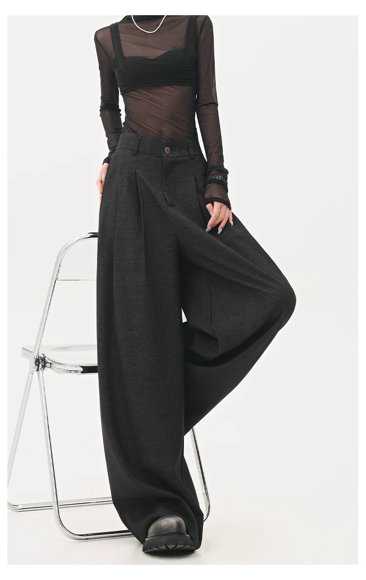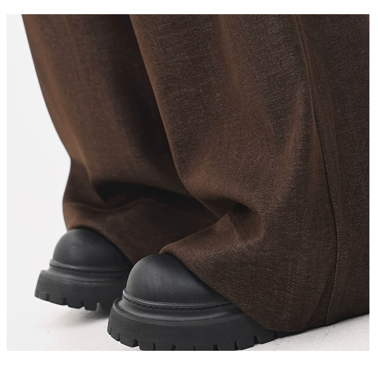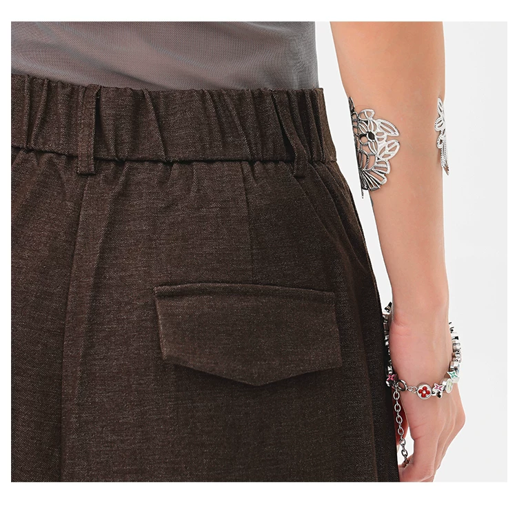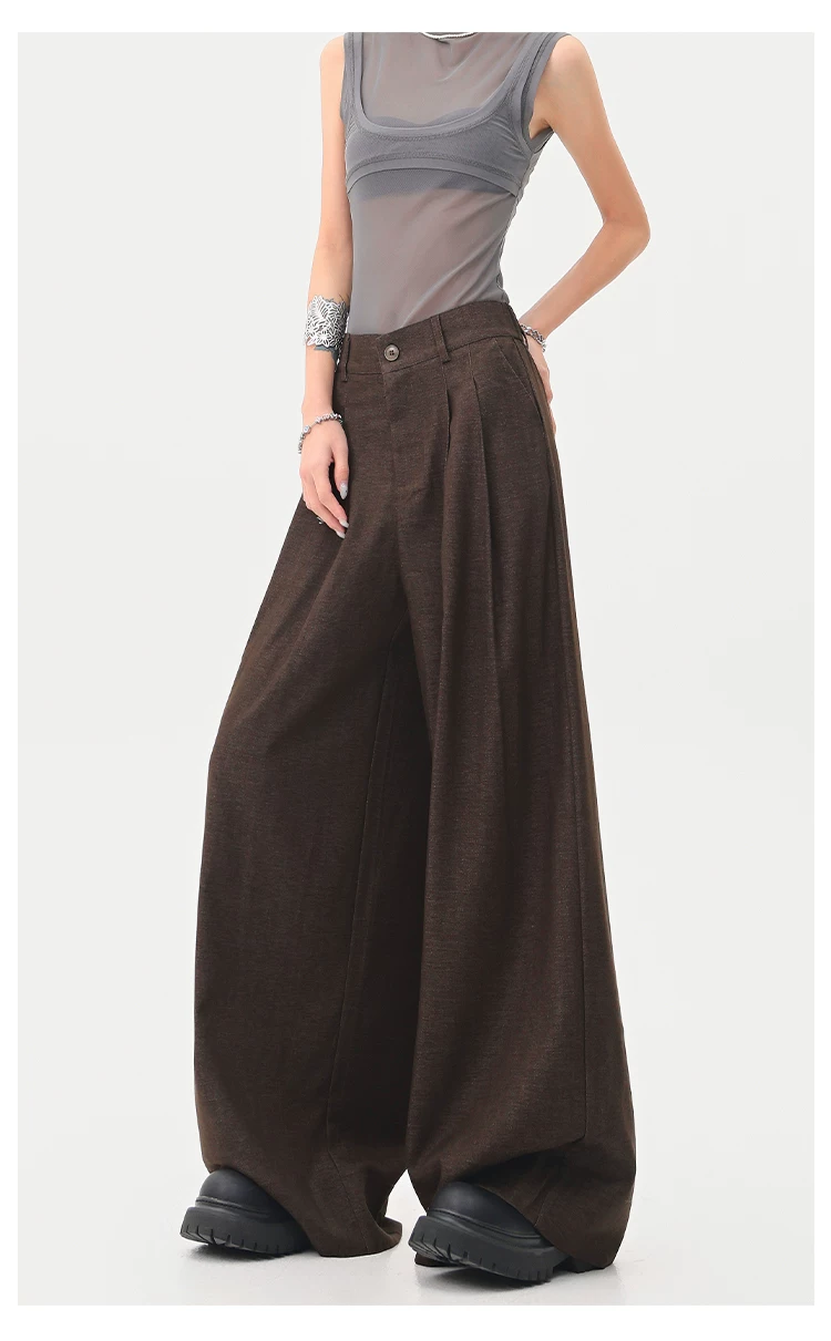 - KEN STUDIO Xuân Thu Quần tây màu nâu Melard mới dành cho nữ Quần tây ống rộng có eo bán co giãn dài đến sàn