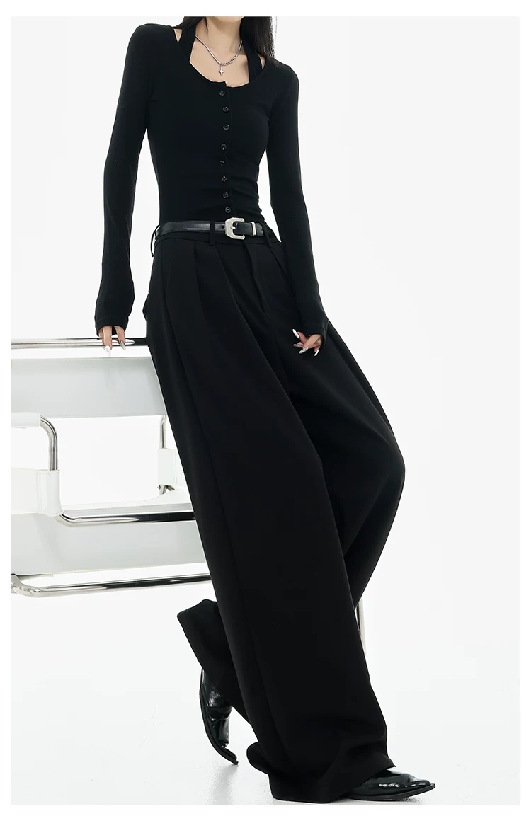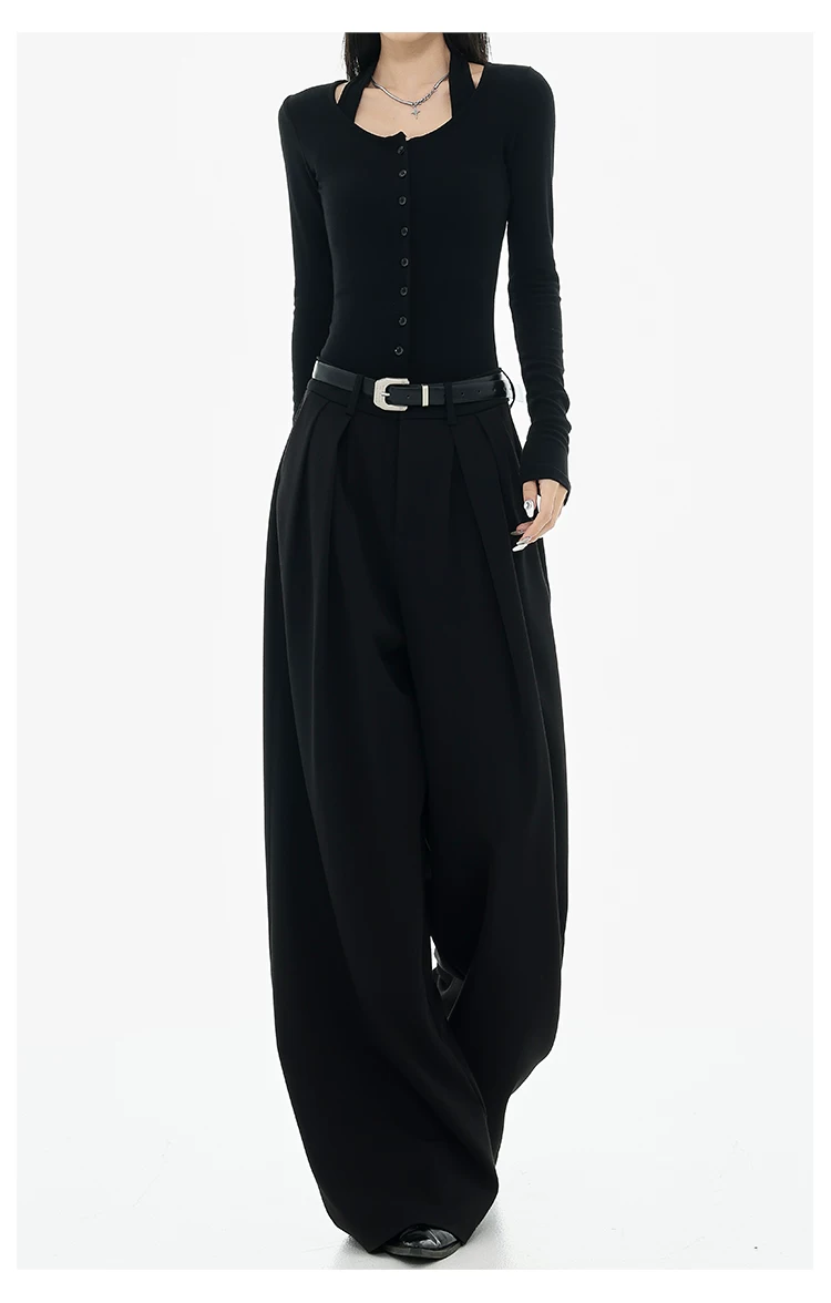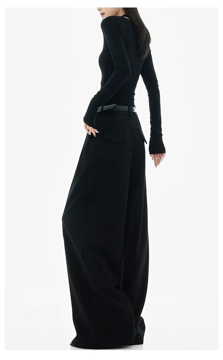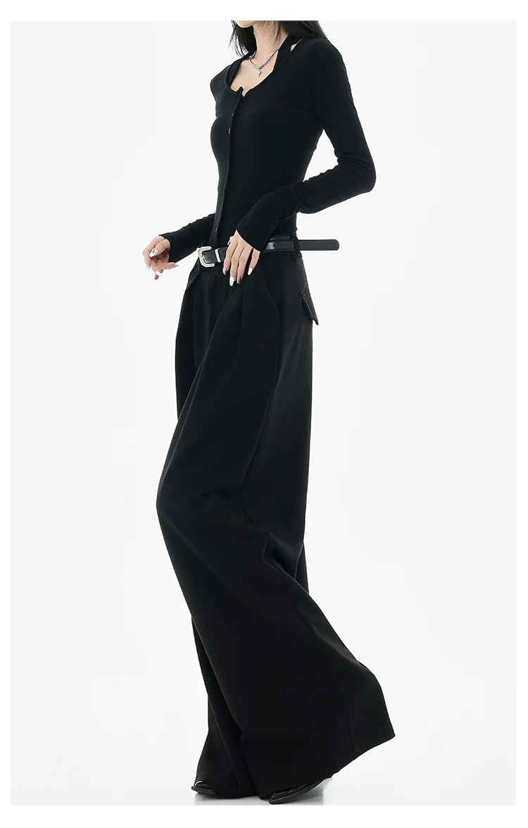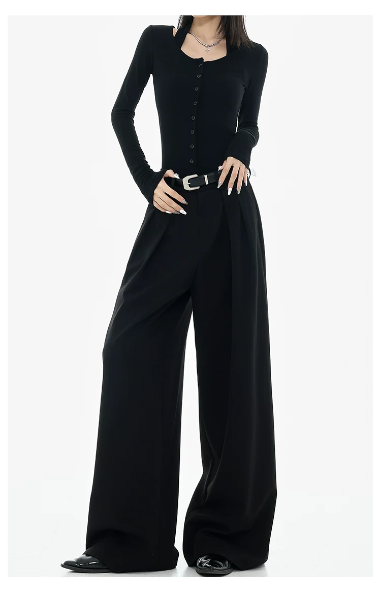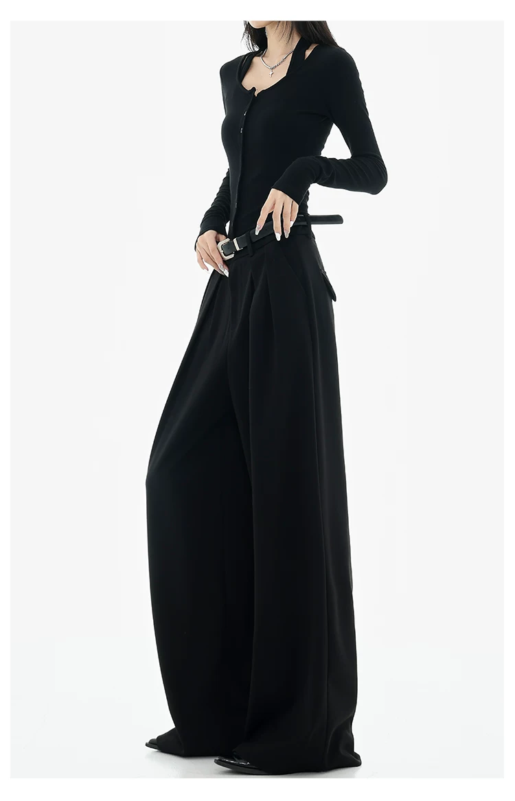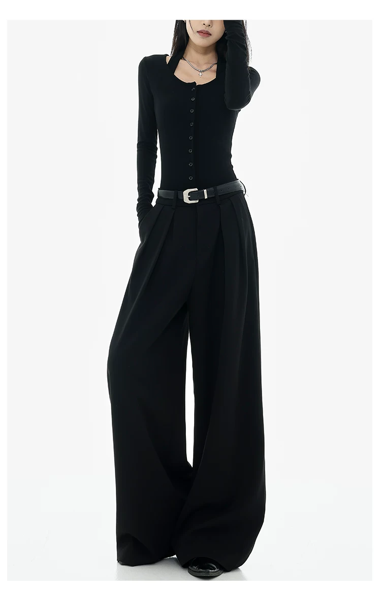 - KEN STUDIO Xuân Thu Quần tây ống rộng màu đen mới dành cho nữ, thiết kế cao cấp, xếp nếp, dáng rộng, giảm béo, quần dài ngang sàn