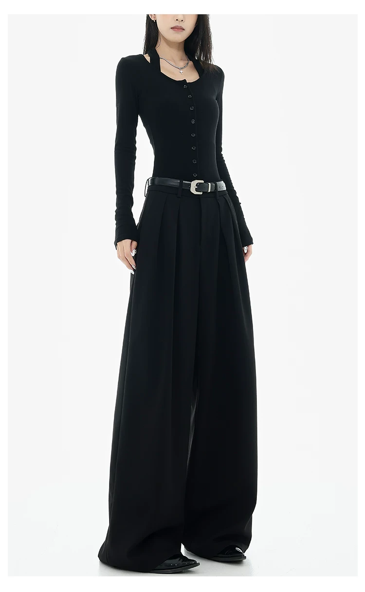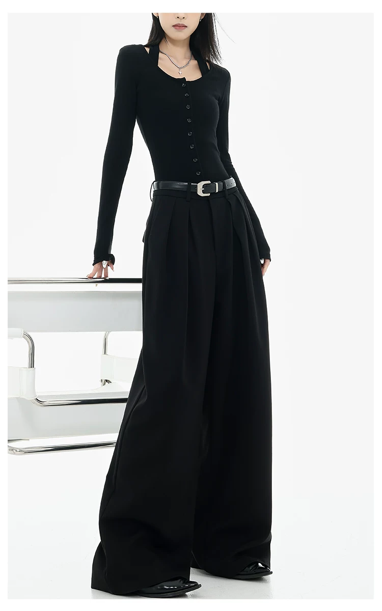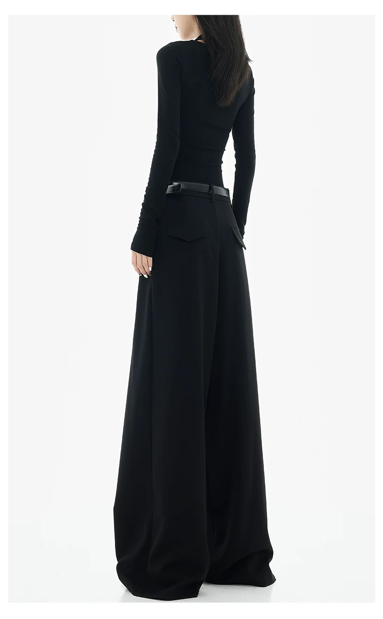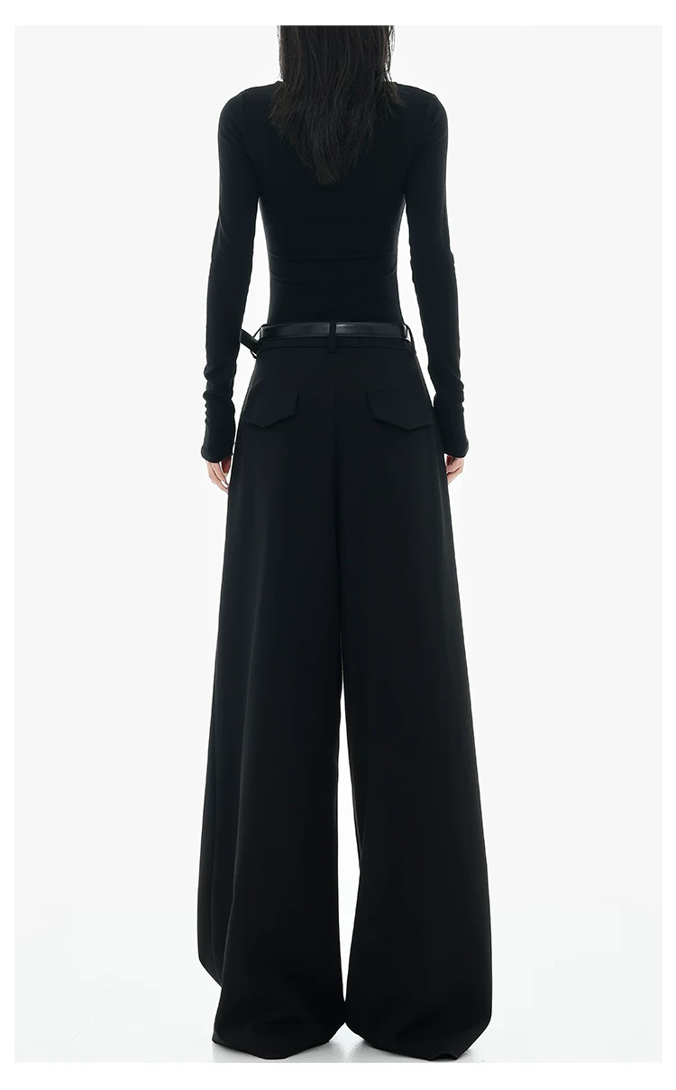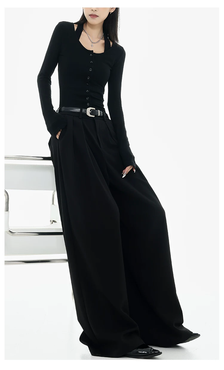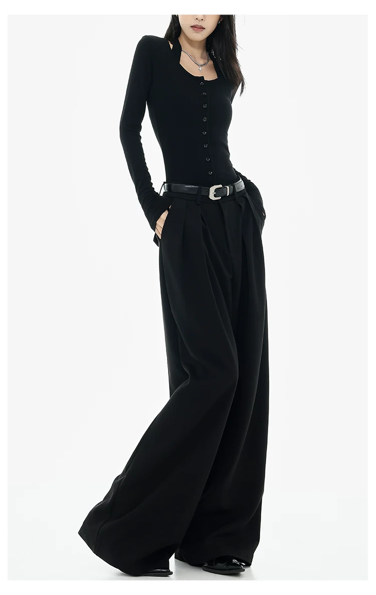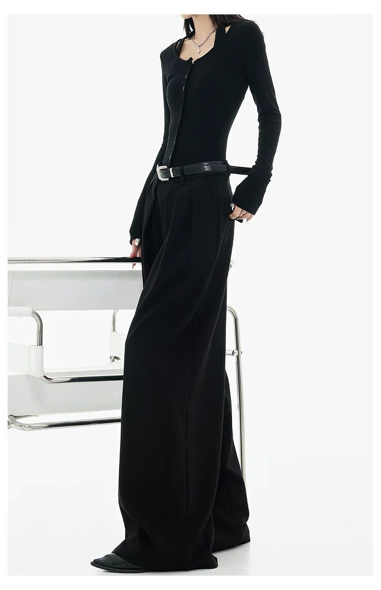 - KEN STUDIO Xuân Thu Quần tây ống rộng màu đen mới dành cho nữ, thiết kế cao cấp, xếp nếp, dáng rộng, giảm béo, quần dài ngang sàn