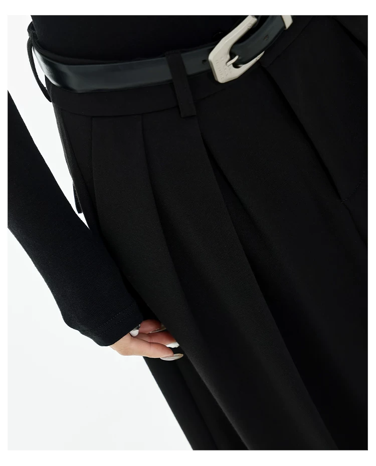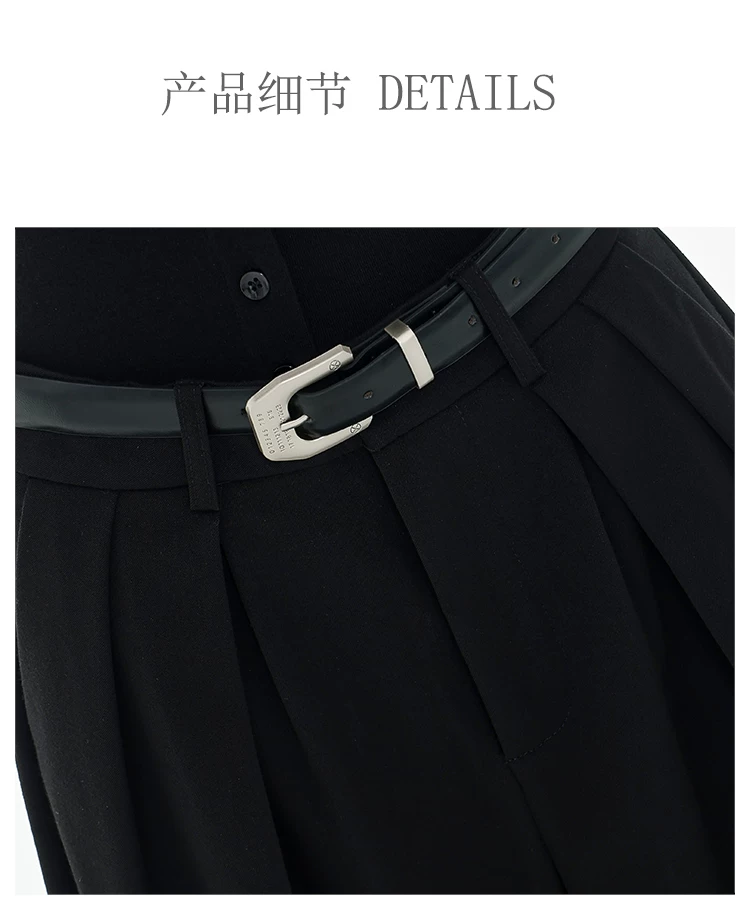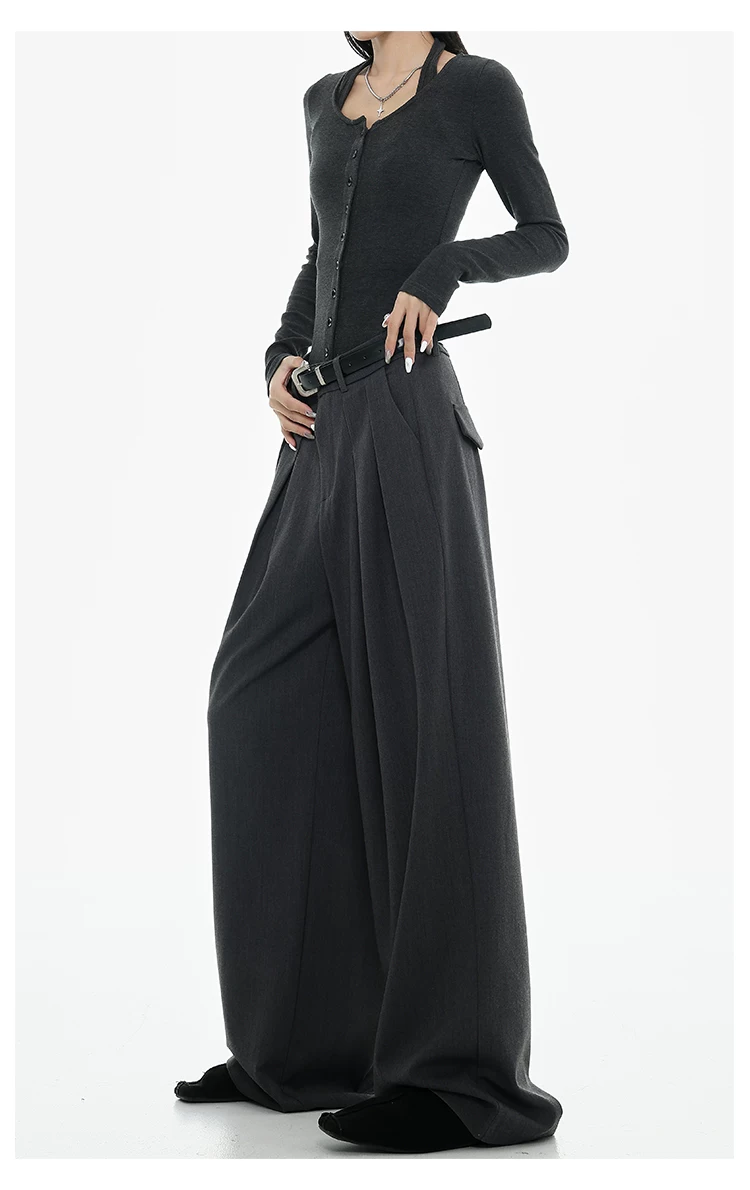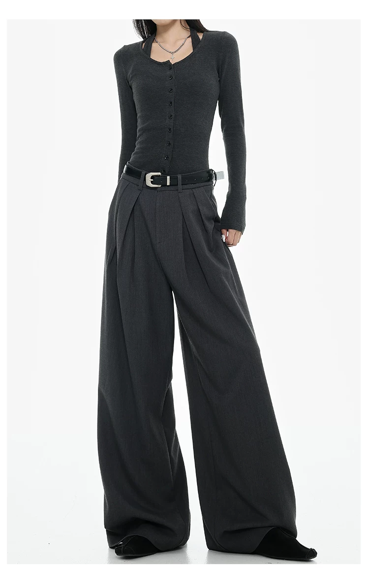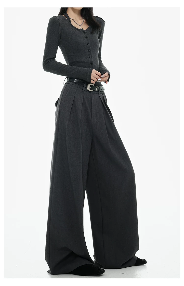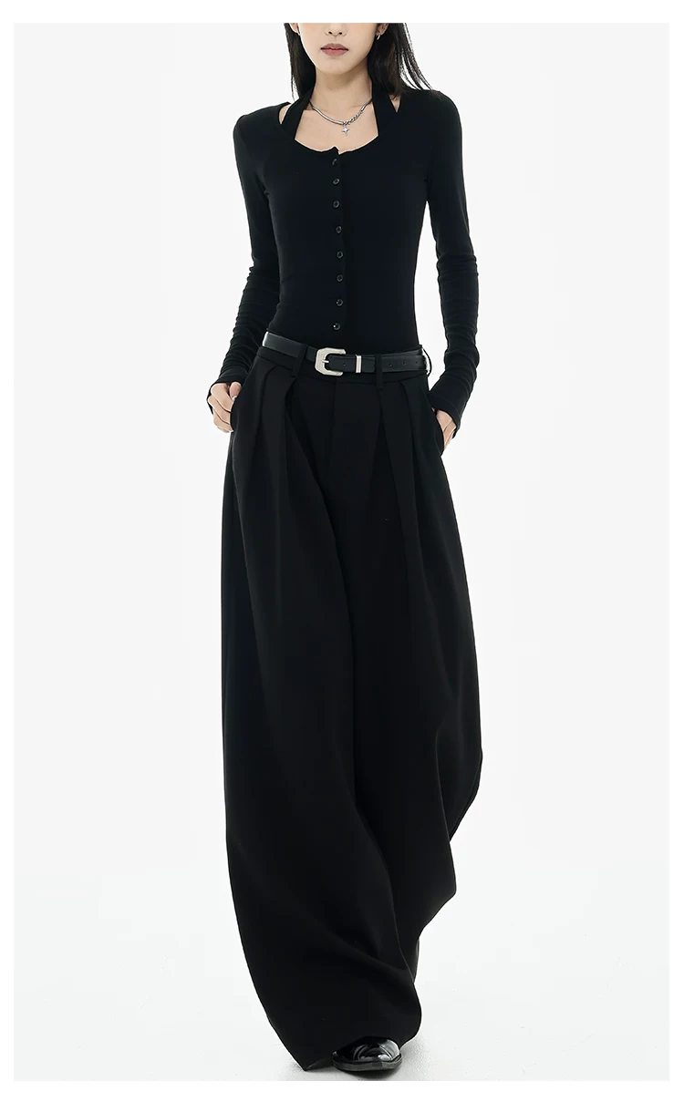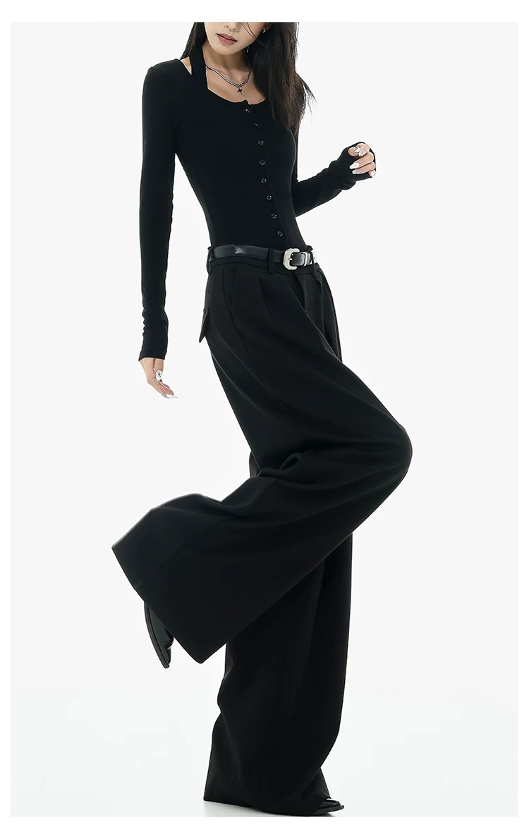- KEN STUDIO Xuân Thu Quần tây ống rộng màu đen mới dành cho nữ, thiết kế cao cấp, xếp nếp, dáng rộng, giảm béo, quần dài ngang sàn