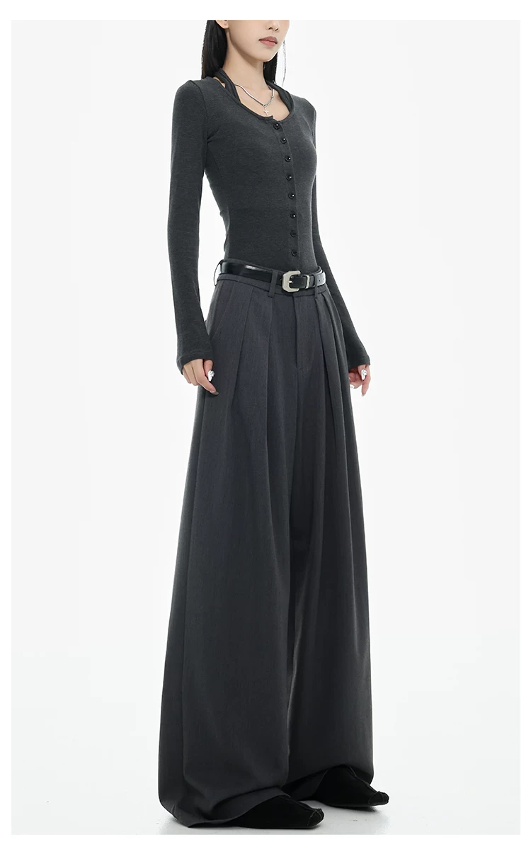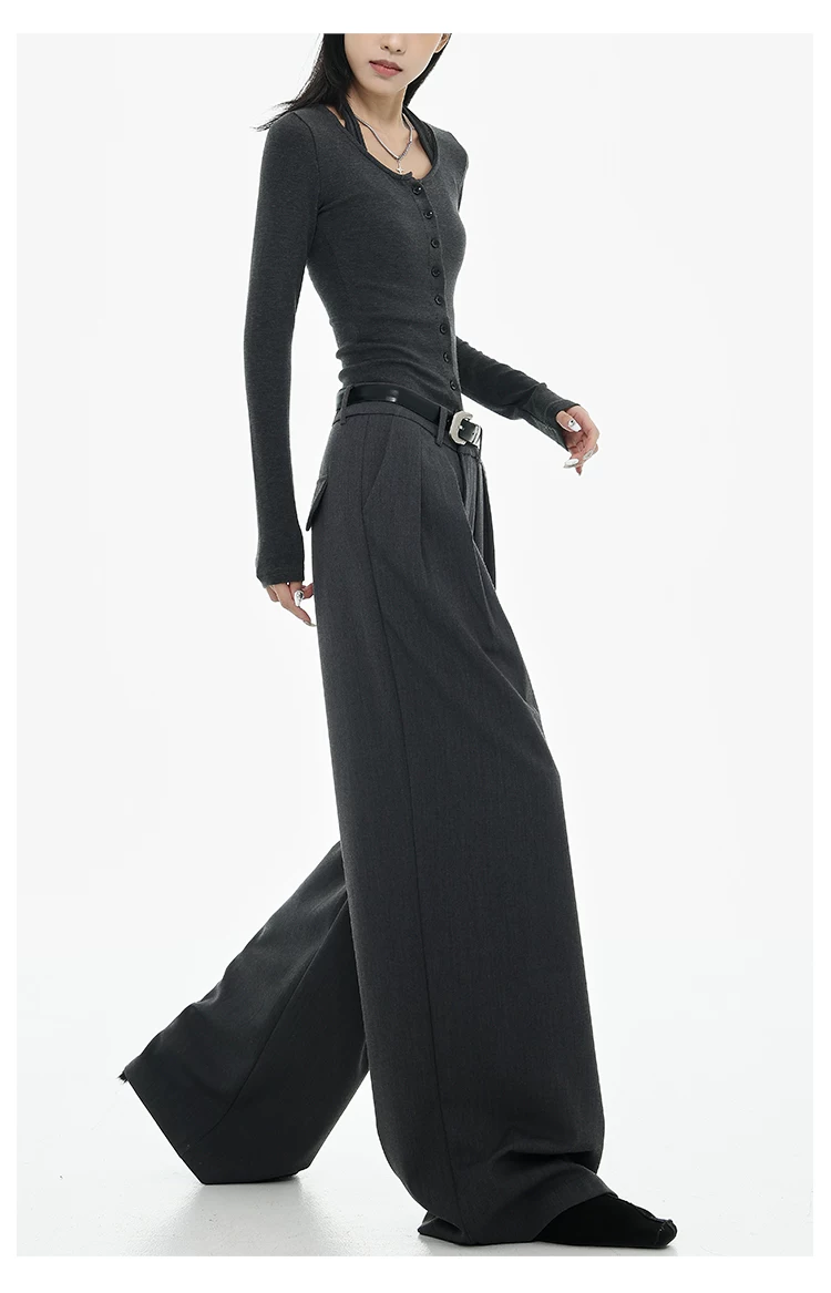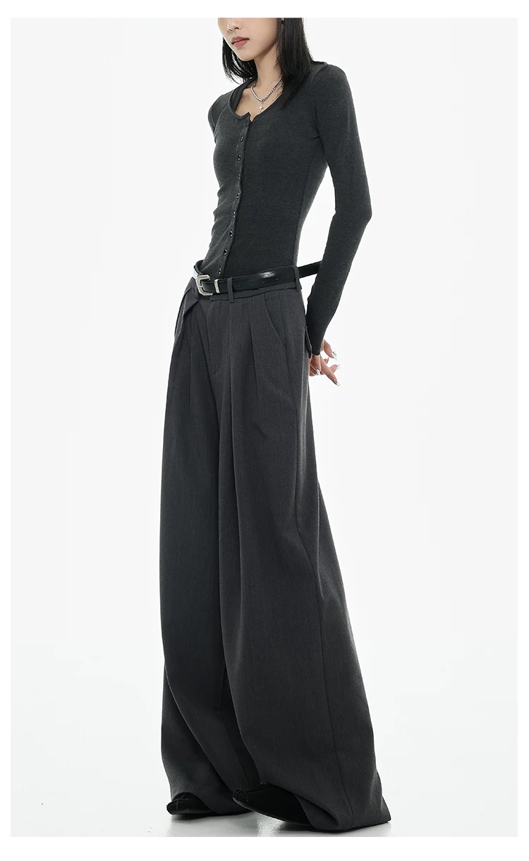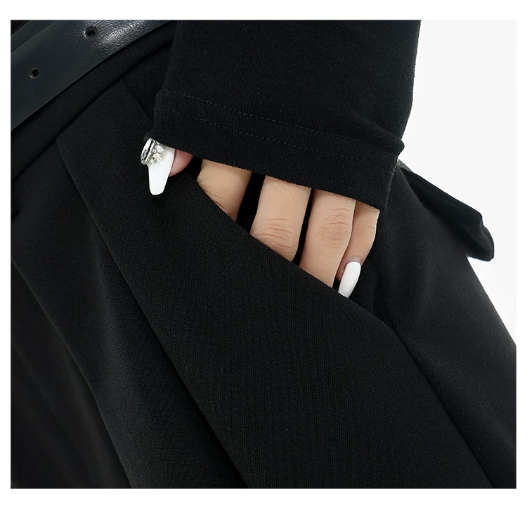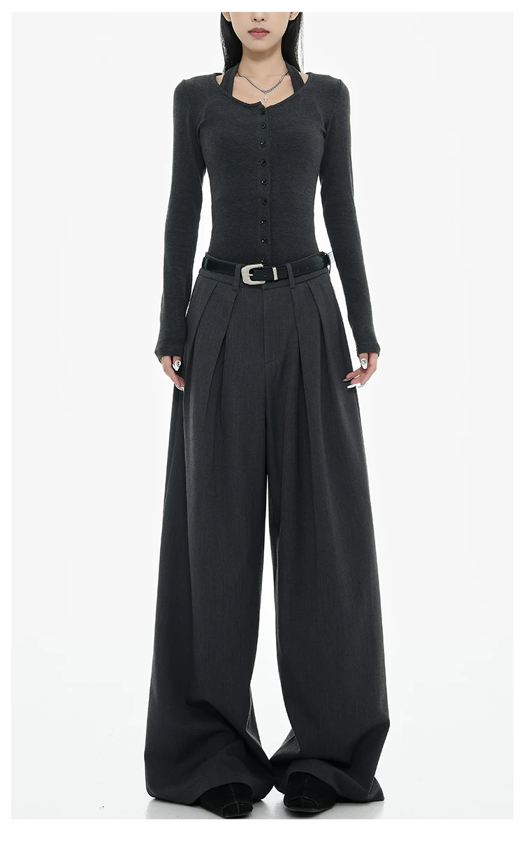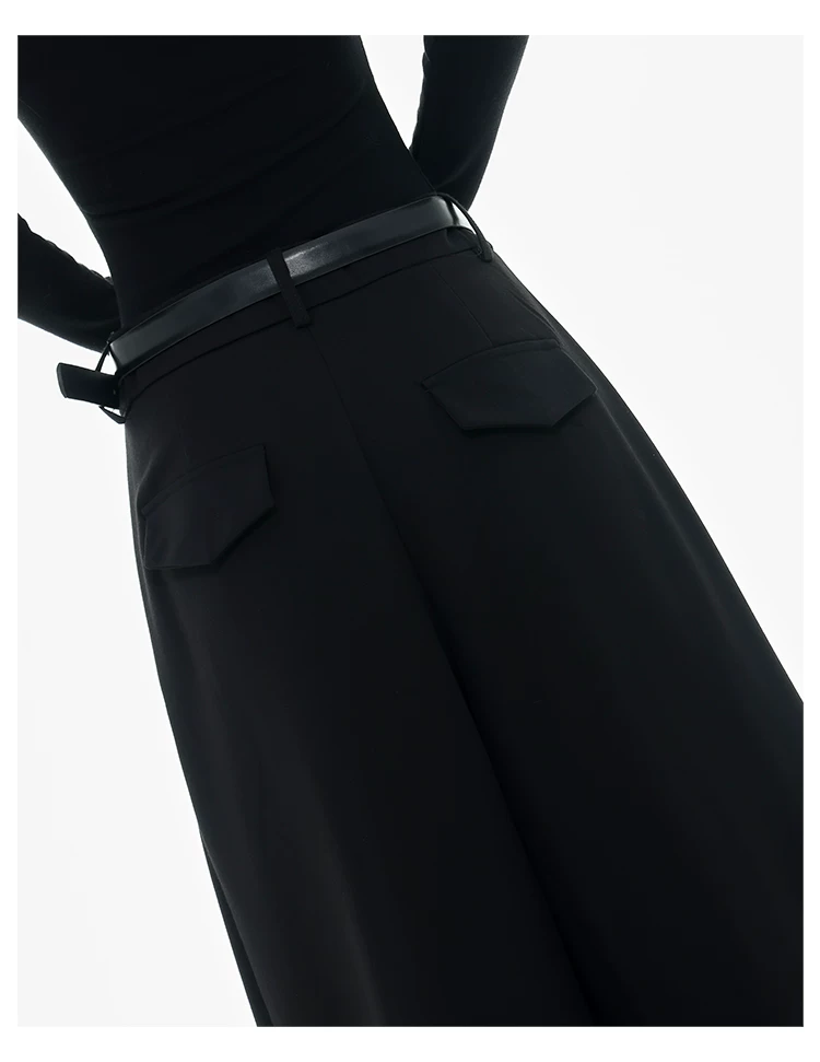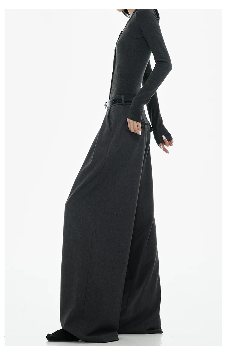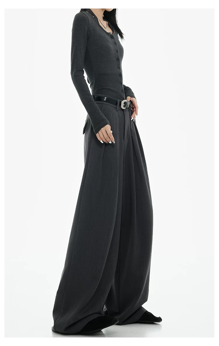 - KEN STUDIO Xuân Thu Quần tây ống rộng màu đen mới dành cho nữ, thiết kế cao cấp, xếp nếp, dáng rộng, giảm béo, quần dài ngang sàn
