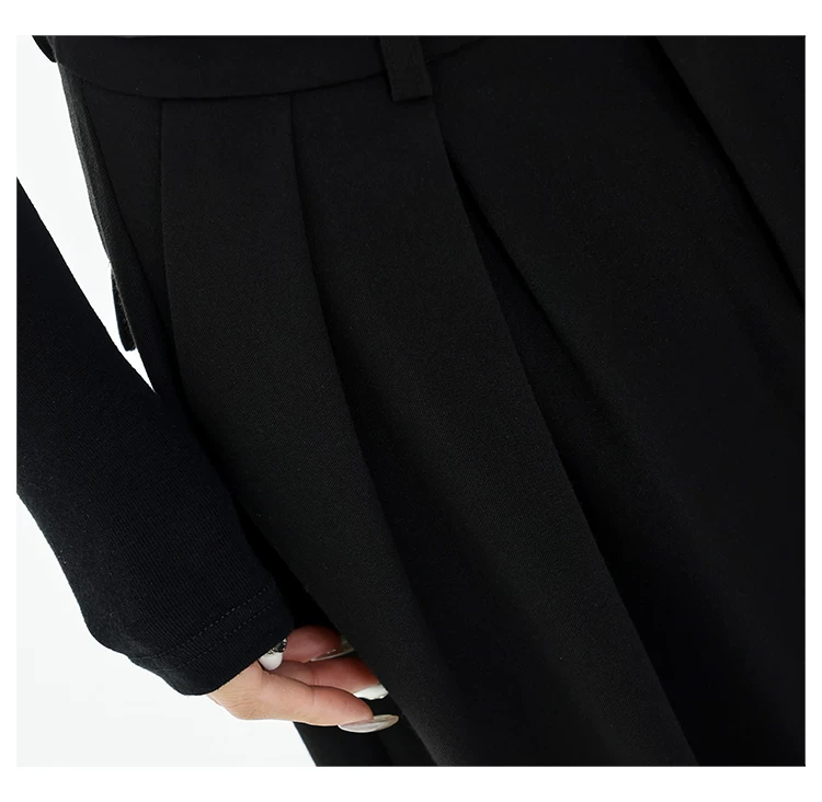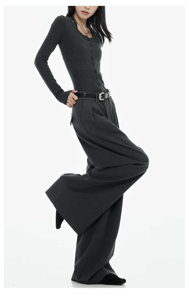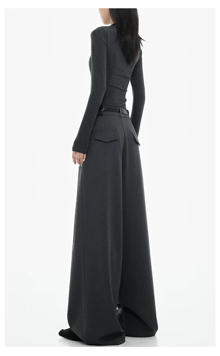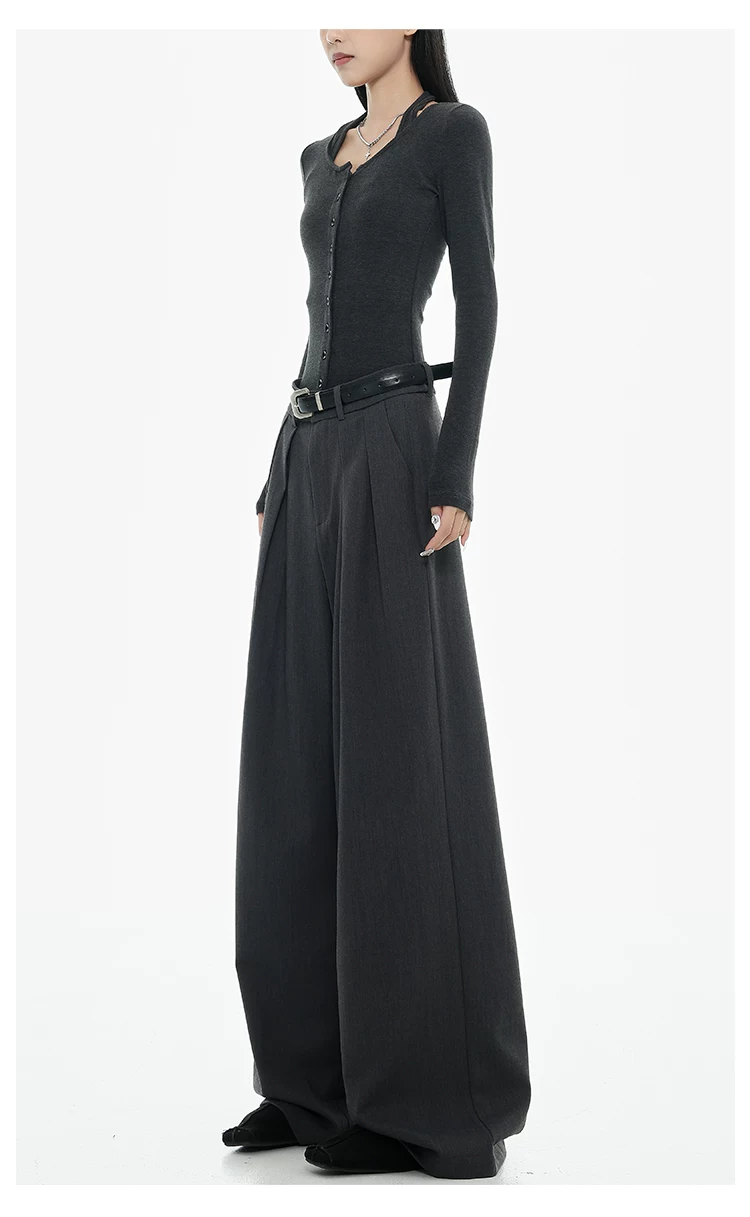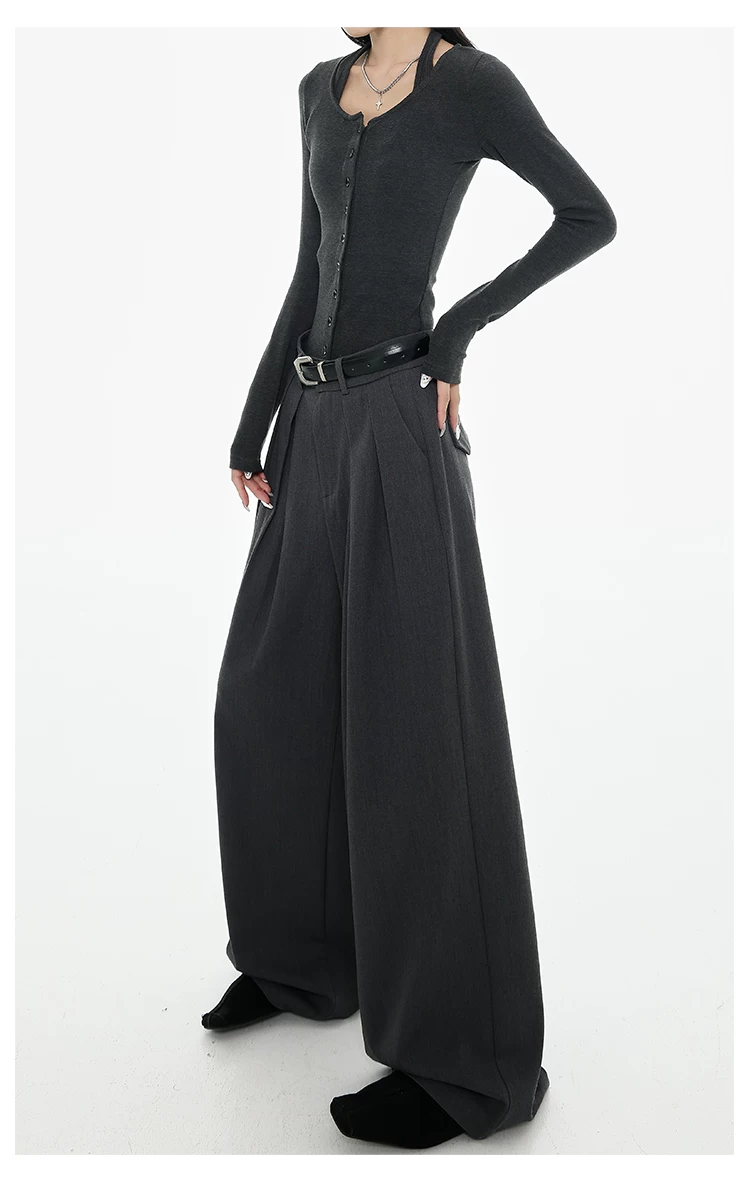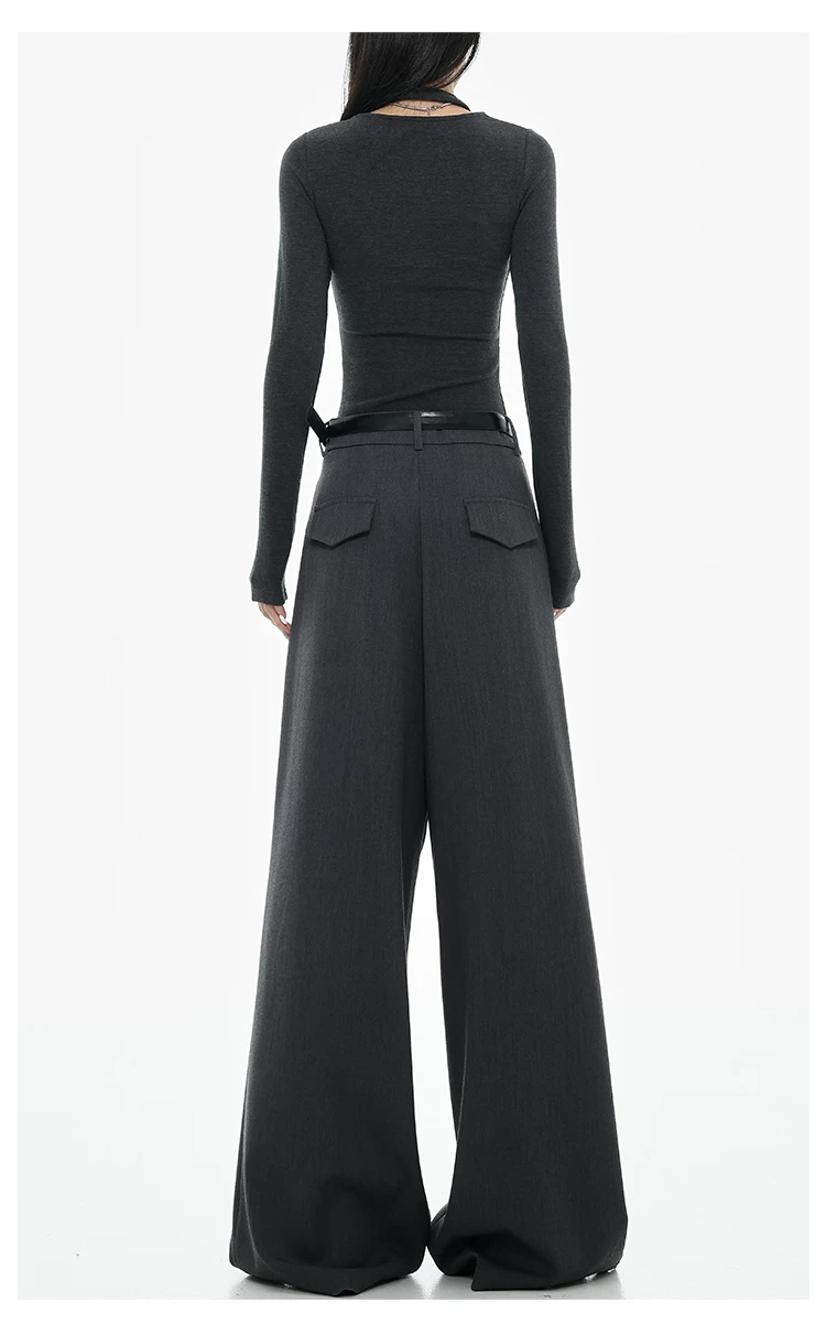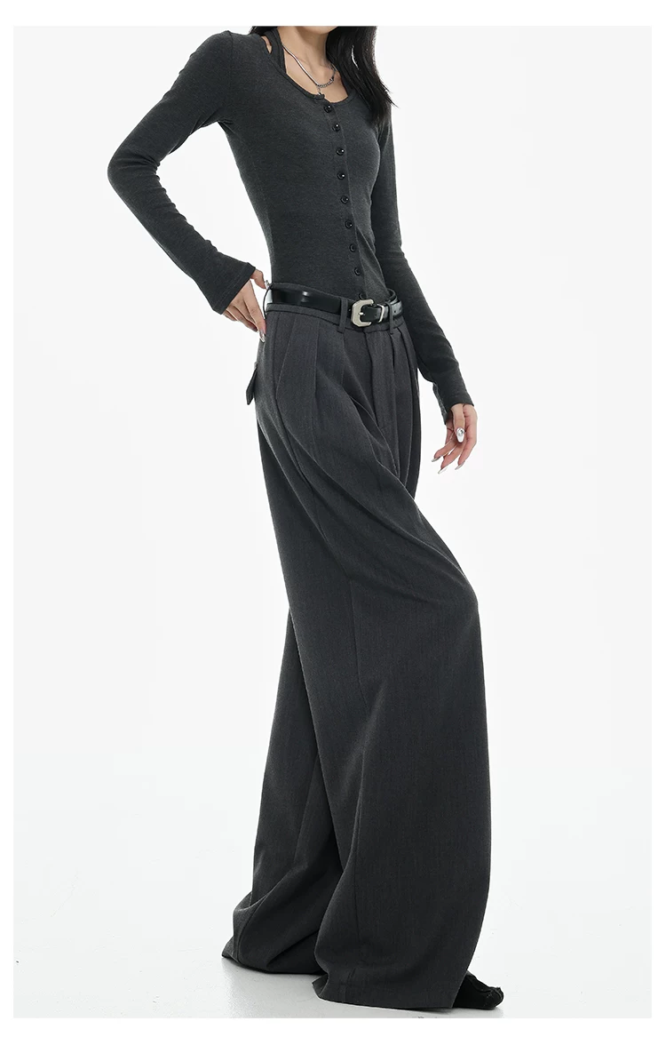 - KEN STUDIO Xuân Thu Quần tây ống rộng màu đen mới dành cho nữ, thiết kế cao cấp, xếp nếp, dáng rộng, giảm béo, quần dài ngang sàn