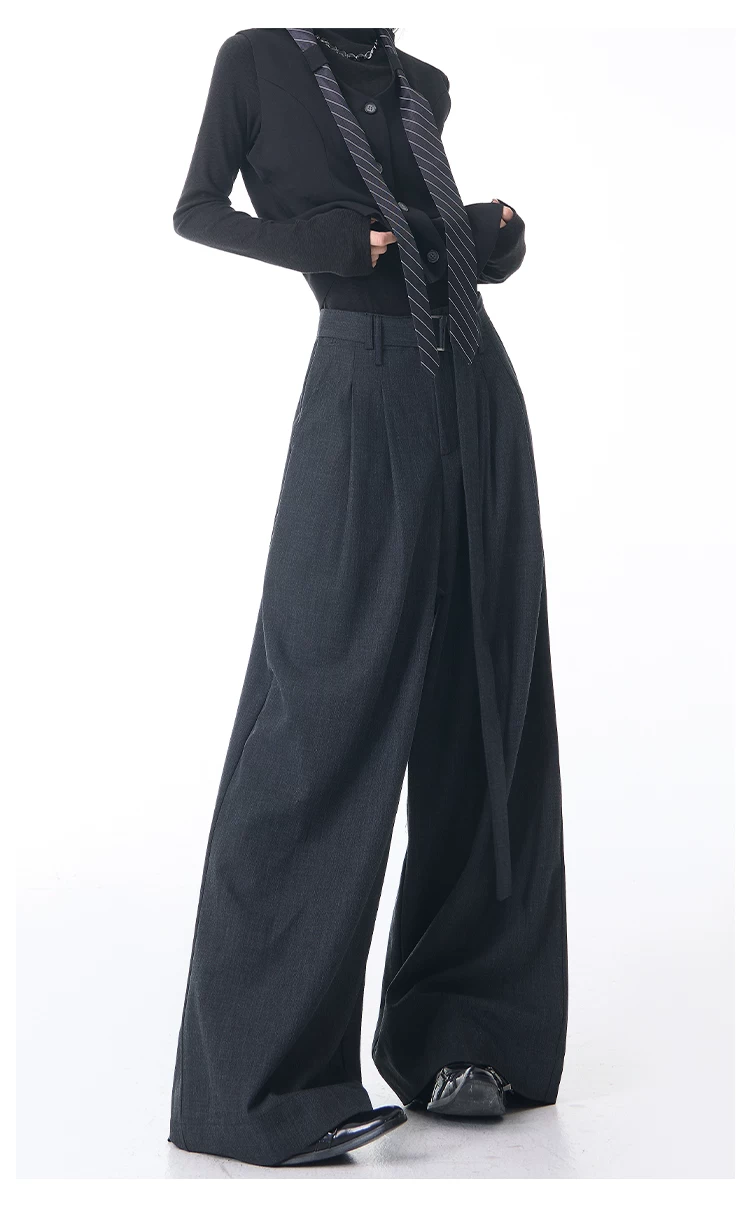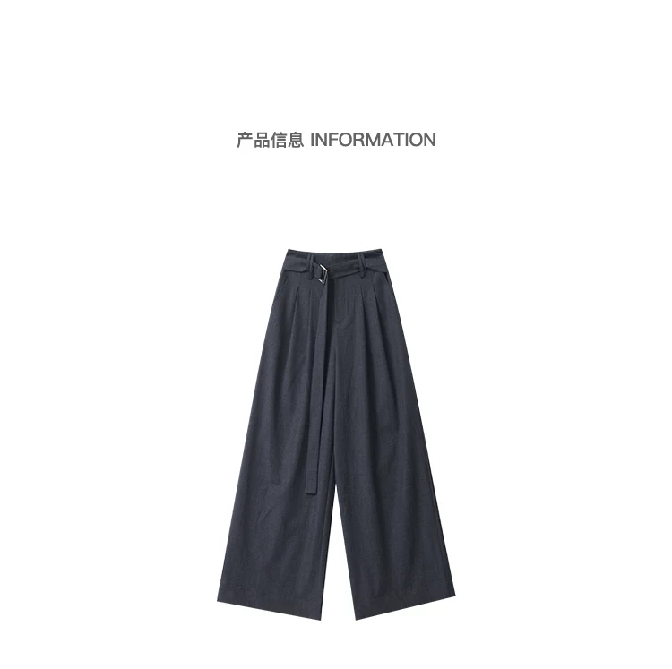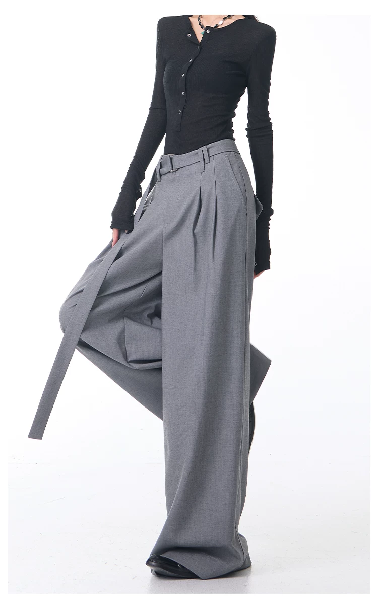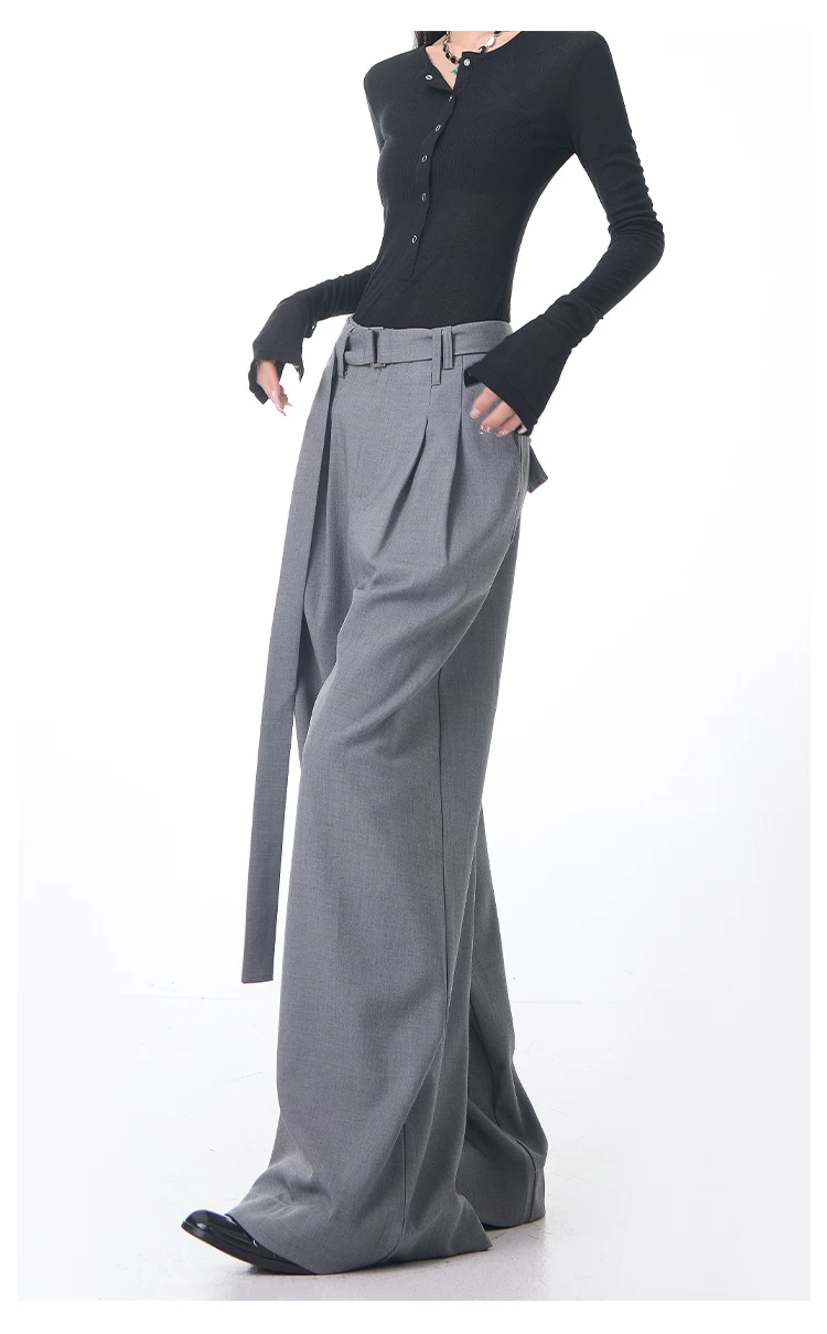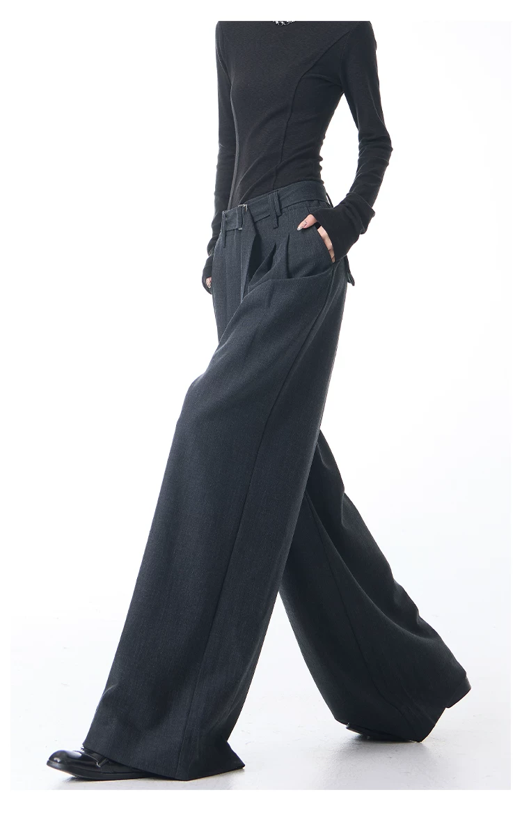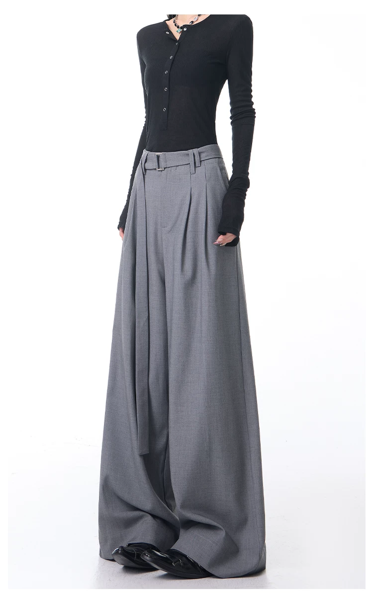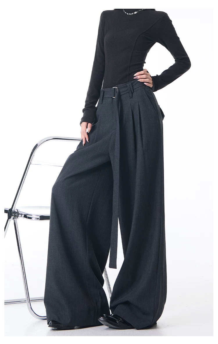 - KEN STUDIO Xuân Thu Thiết kế thắt lưng mới Quần tây ống rộng dành cho nữ Quần dài xếp nếp eo cao giảm béo dài đến sàn