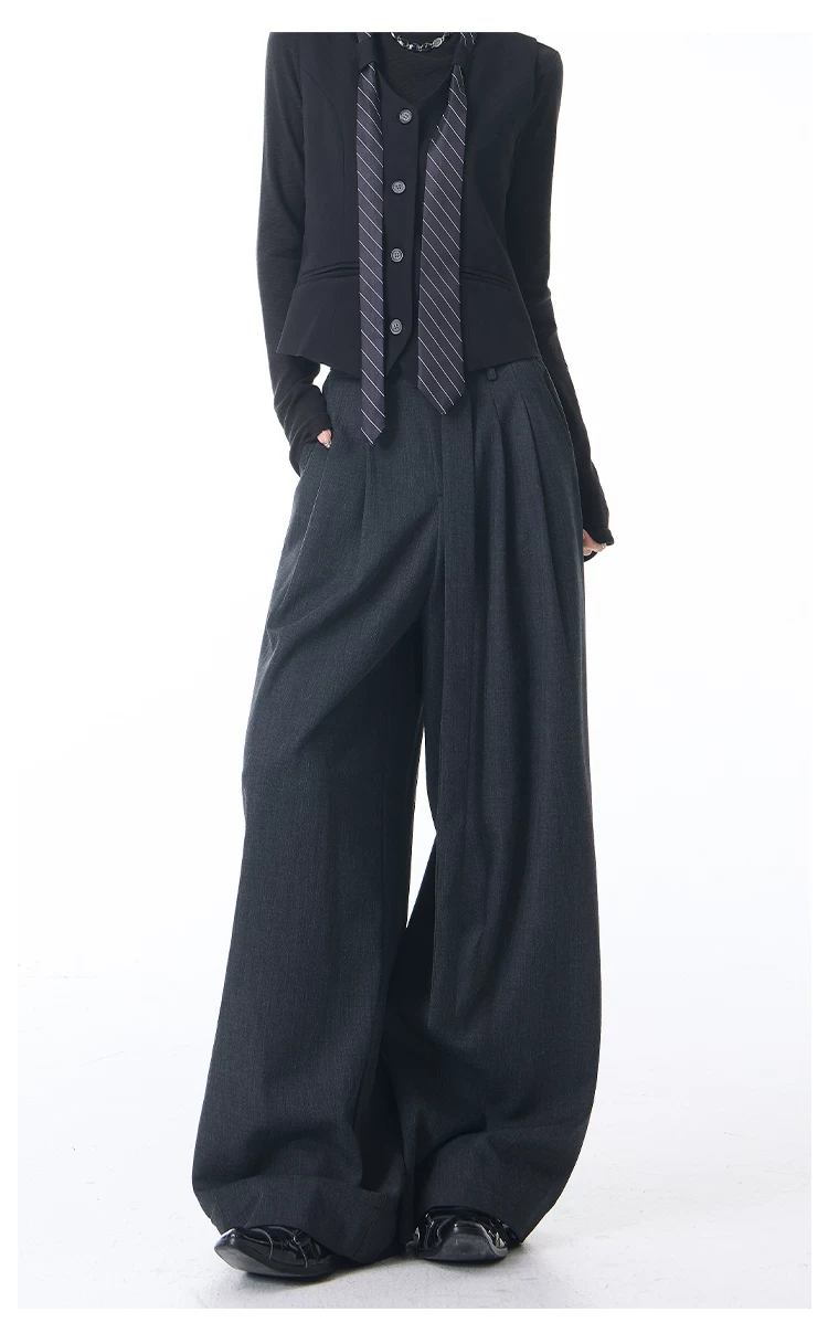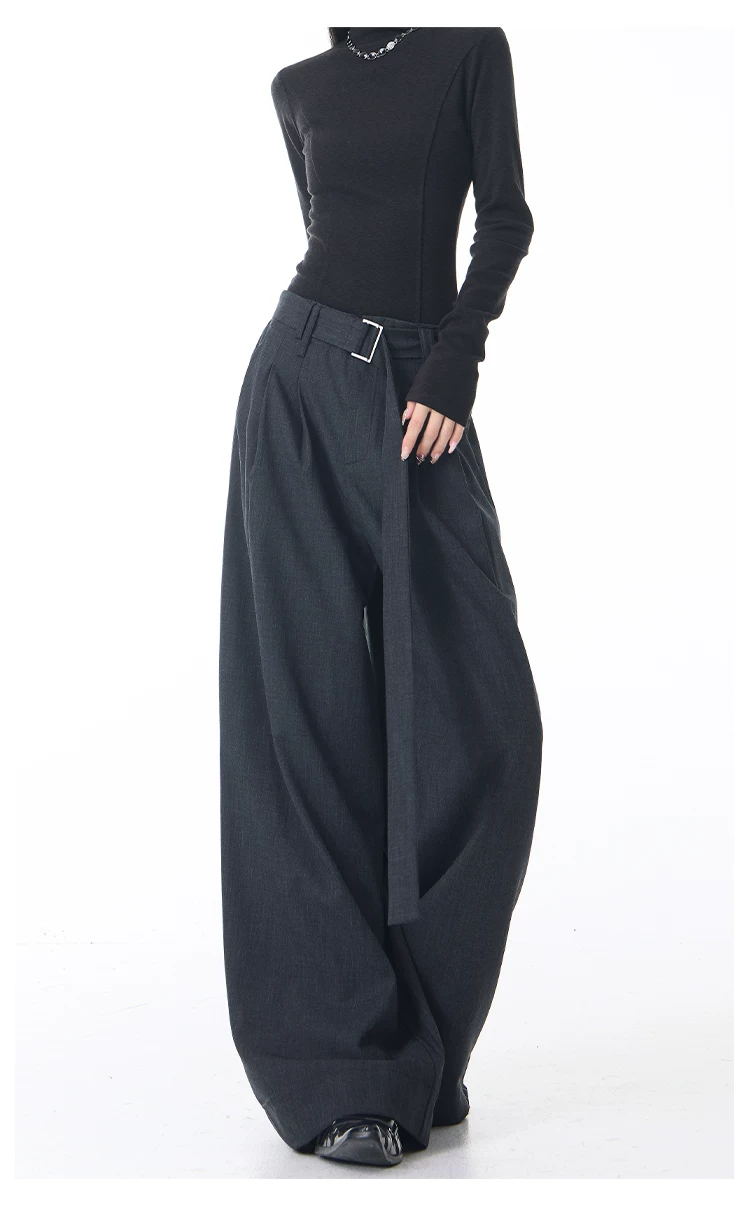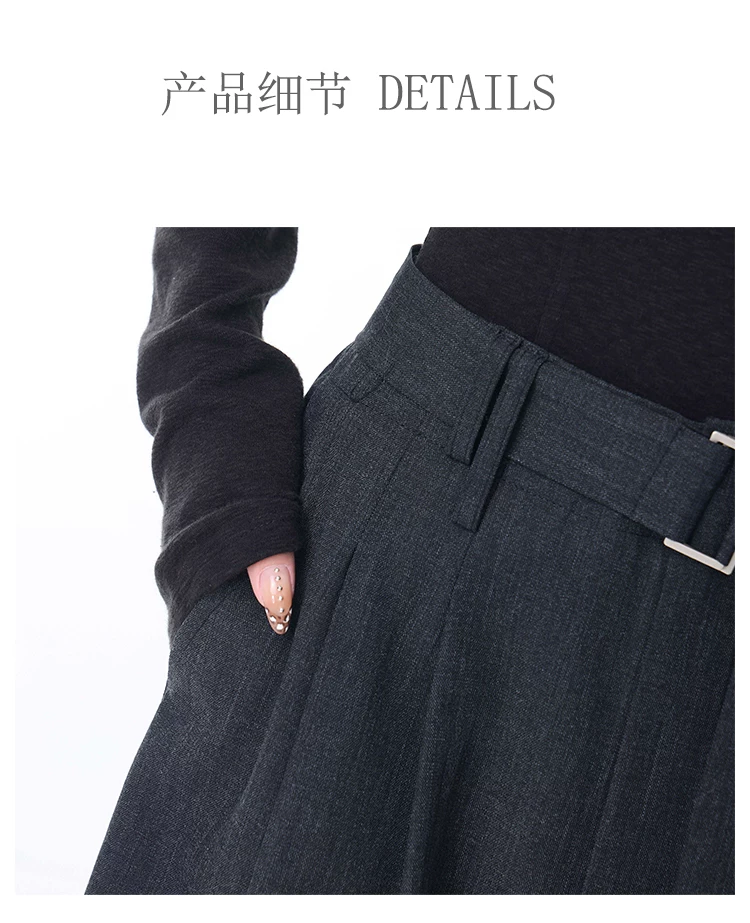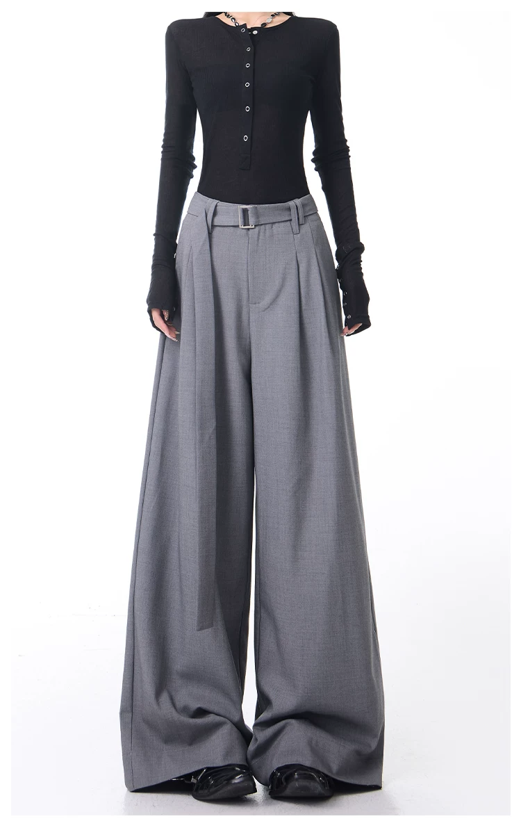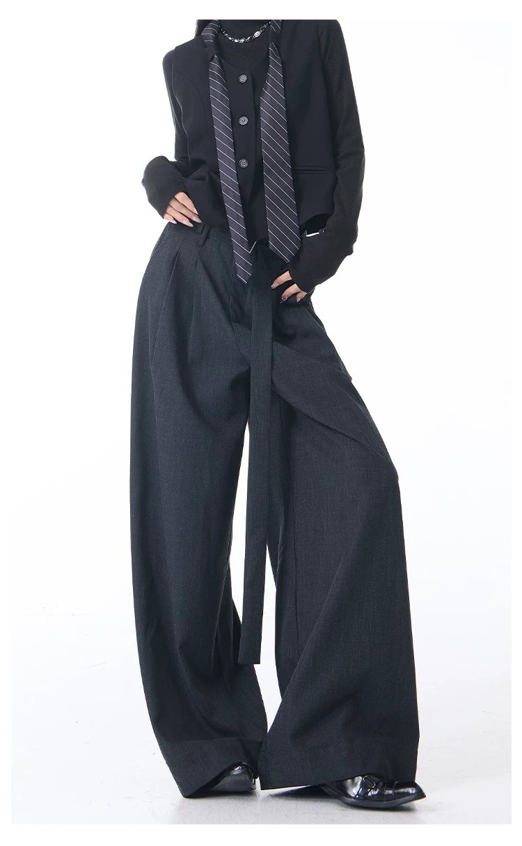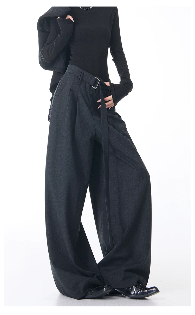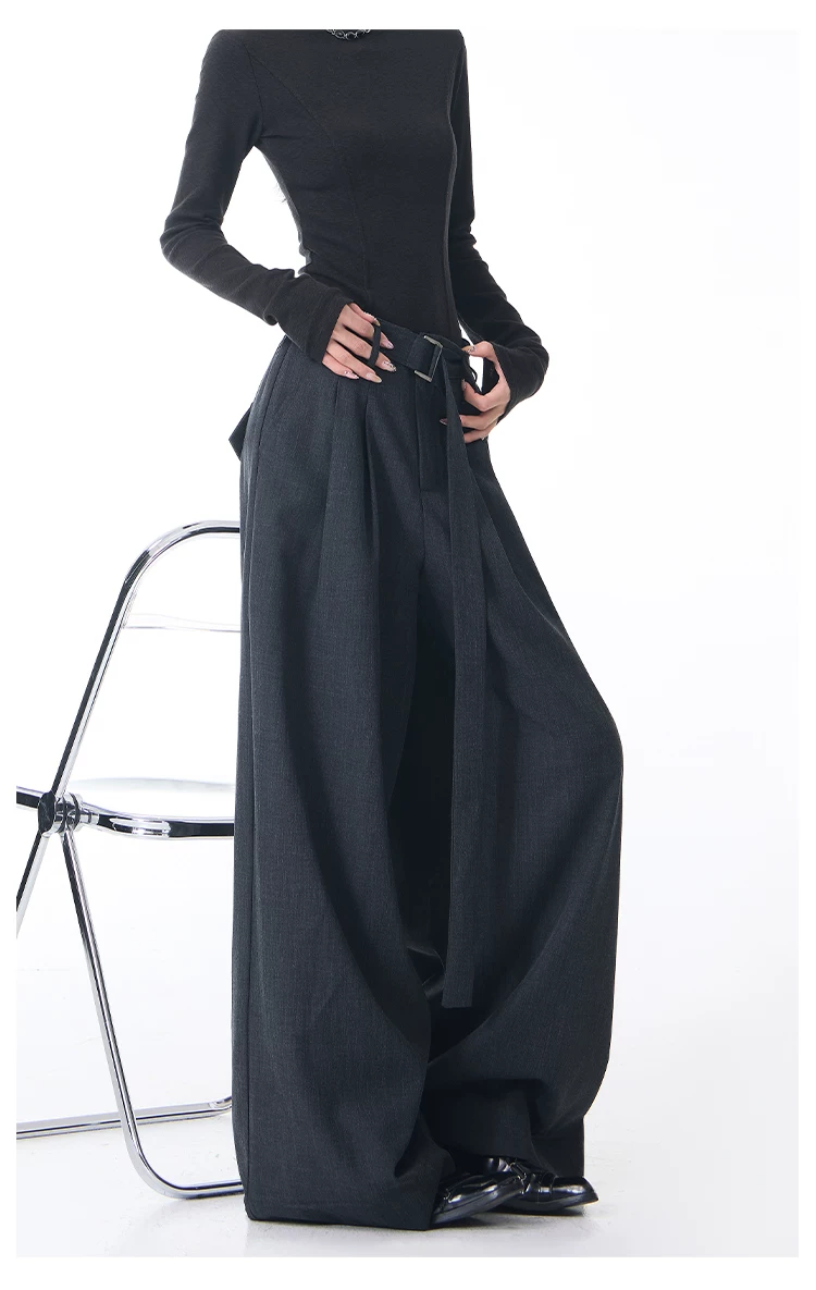 - KEN STUDIO Xuân Thu Thiết kế thắt lưng mới Quần tây ống rộng dành cho nữ Quần dài xếp nếp eo cao giảm béo dài đến sàn