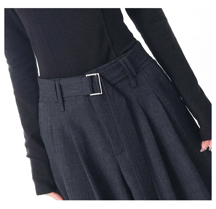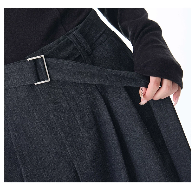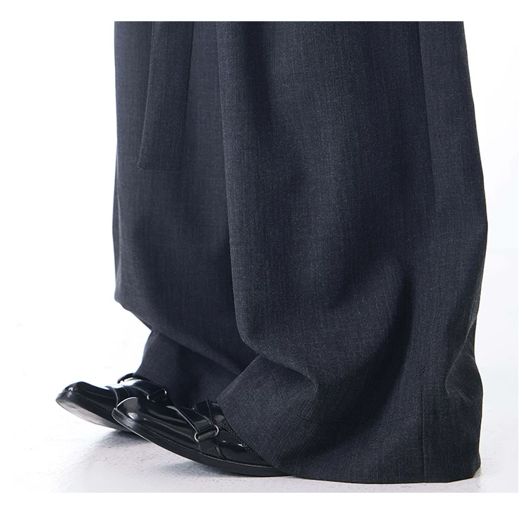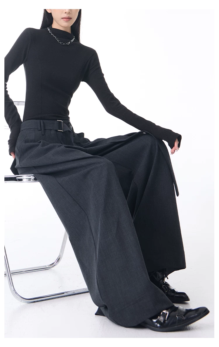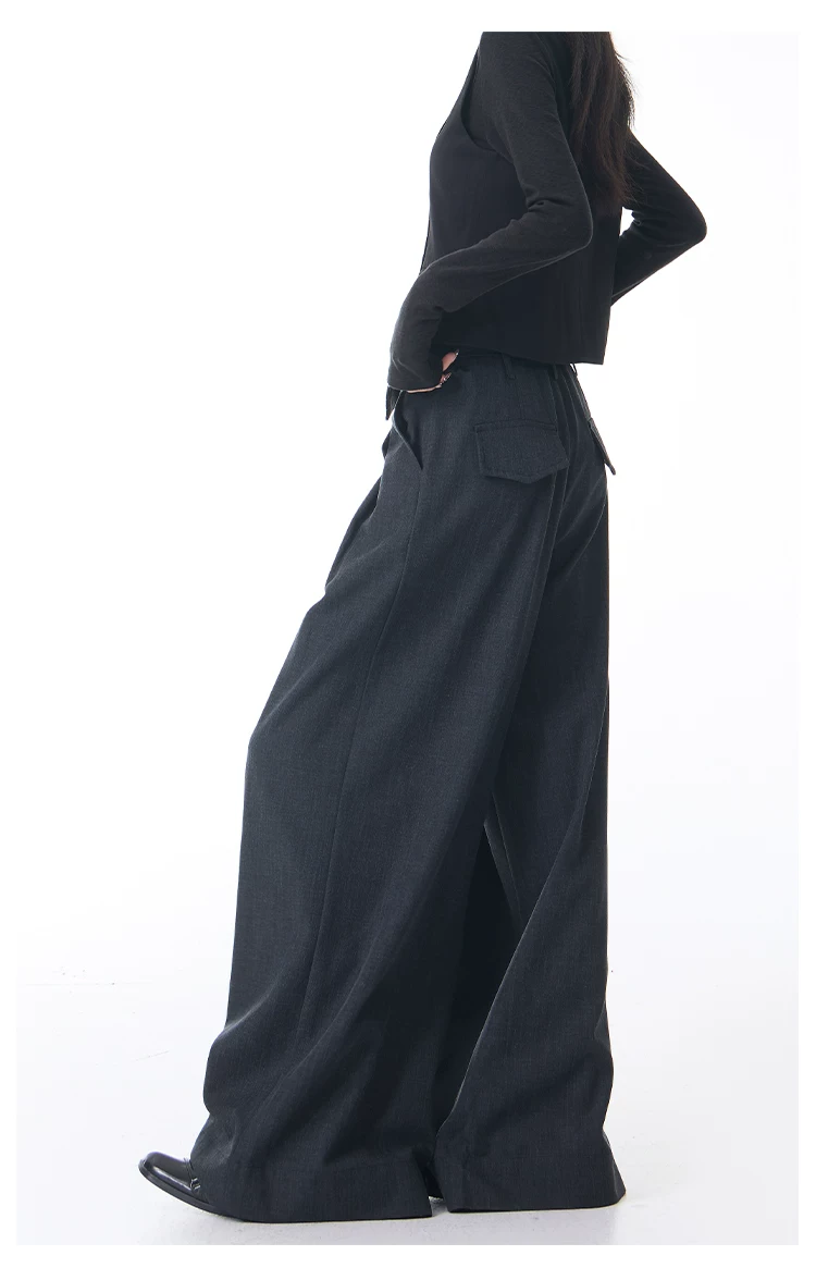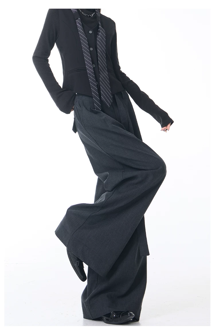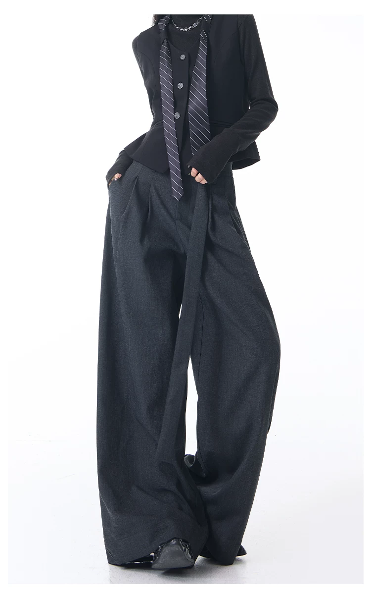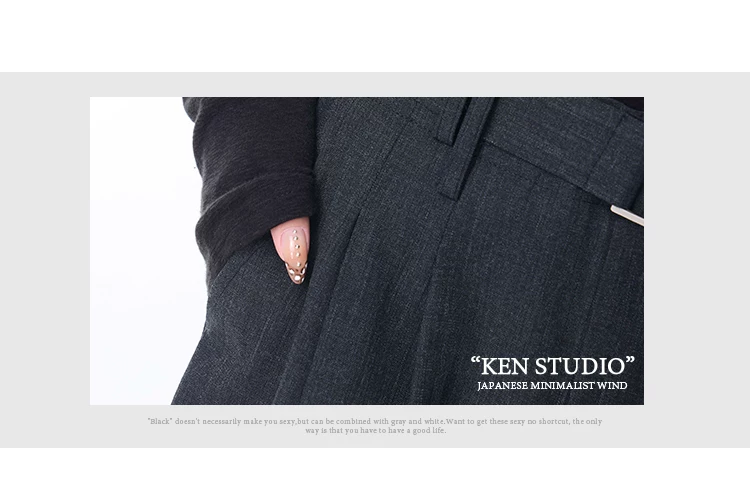 - KEN STUDIO Xuân Thu Thiết kế thắt lưng mới Quần tây ống rộng dành cho nữ Quần dài xếp nếp eo cao giảm béo dài đến sàn