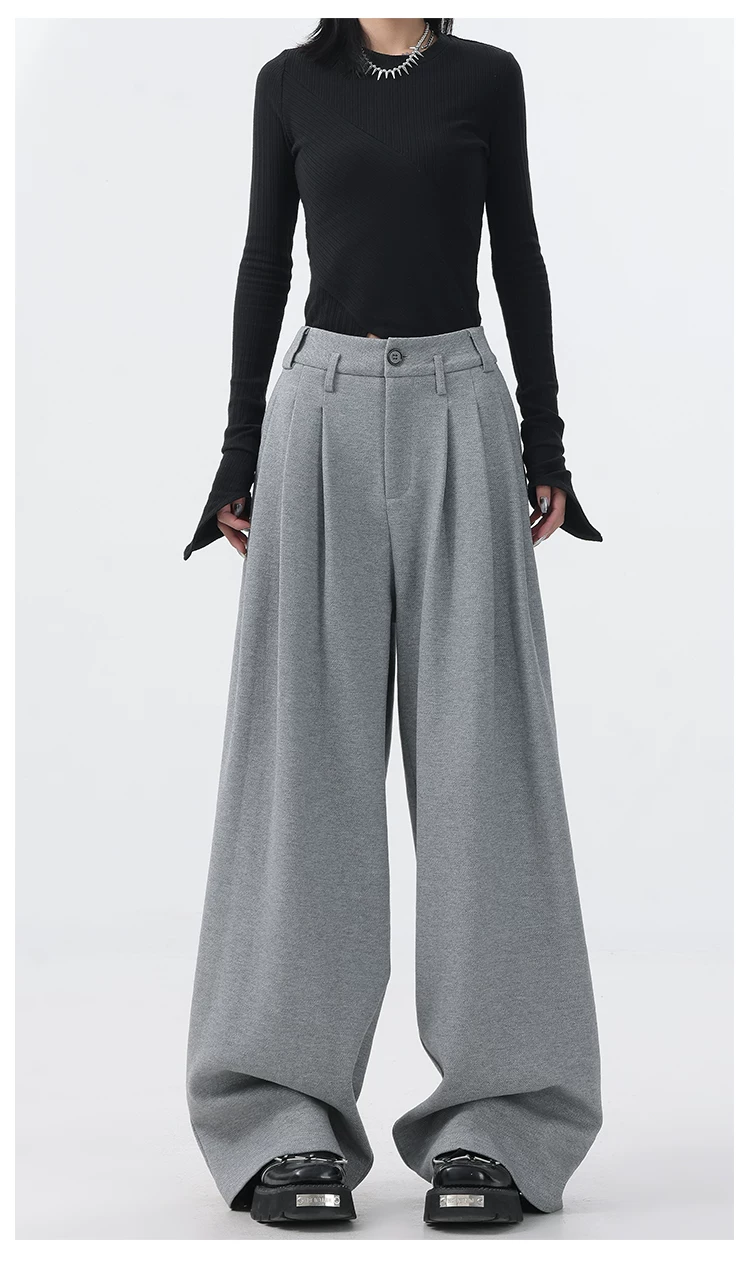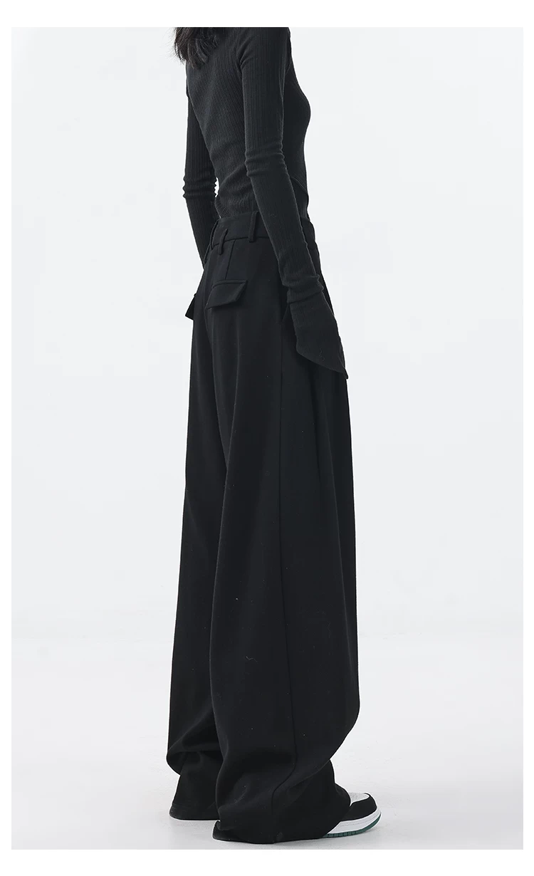 - KEN STUDIO2025 Xuân Thu Mới Quần Âu Màu Đen Nữ Xếp Ly Thiết Kế Rộng Quần Ống Rộng Quần Dài