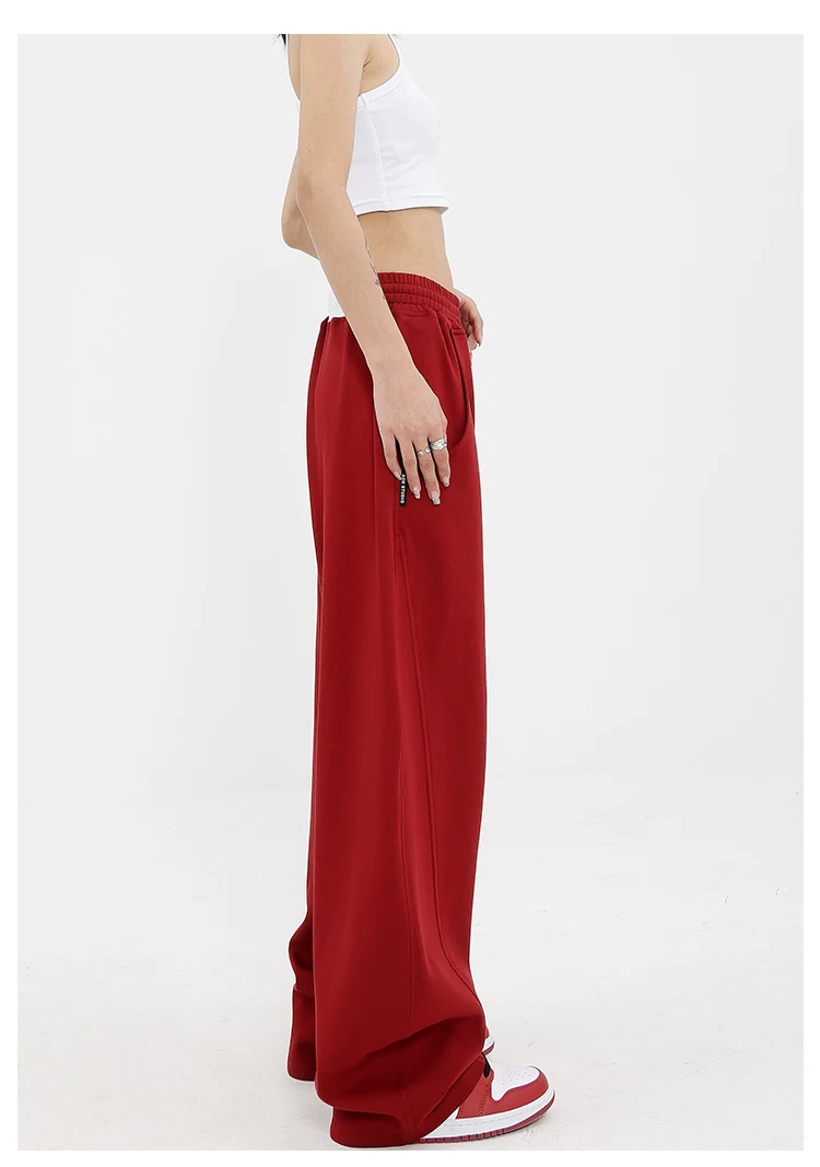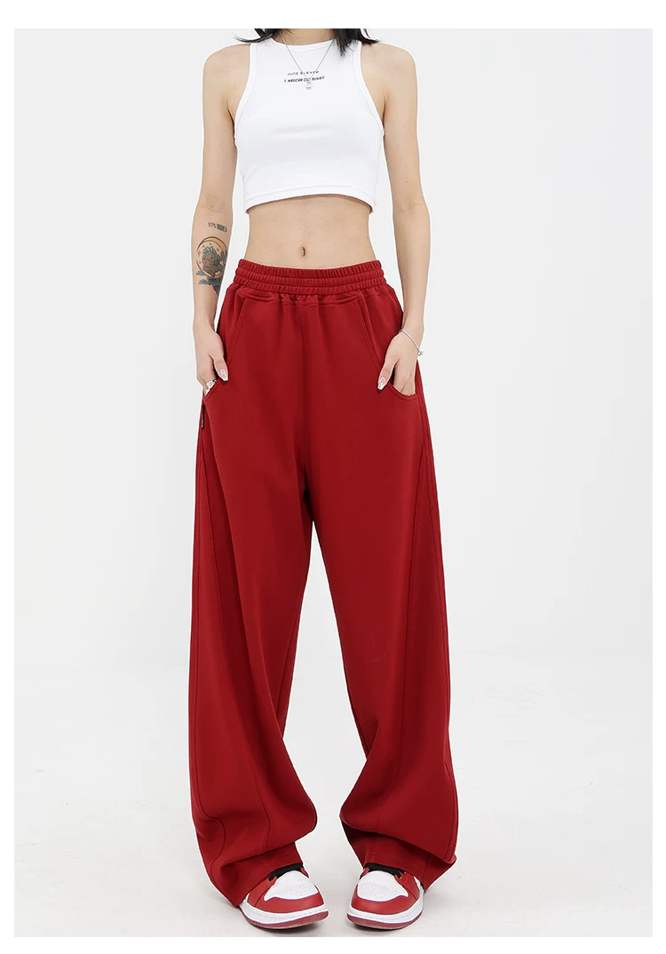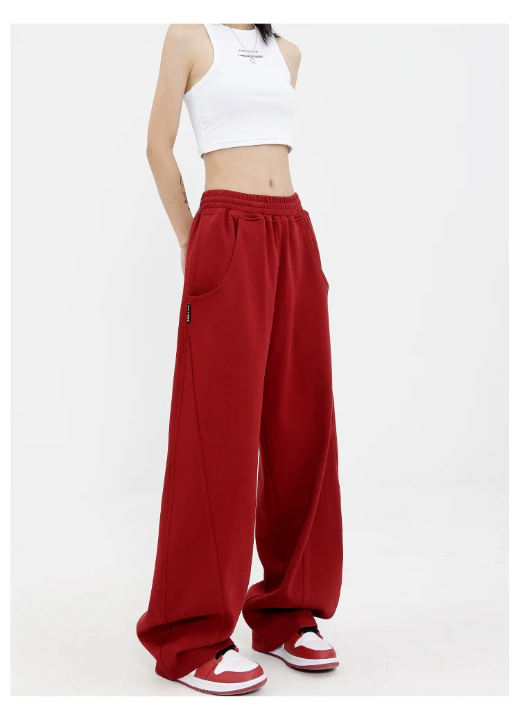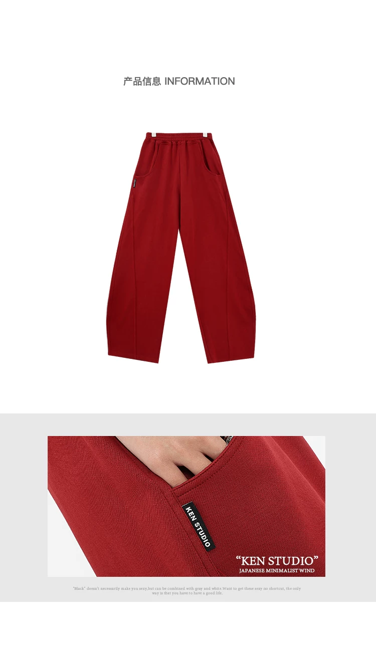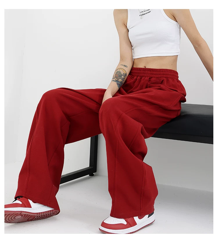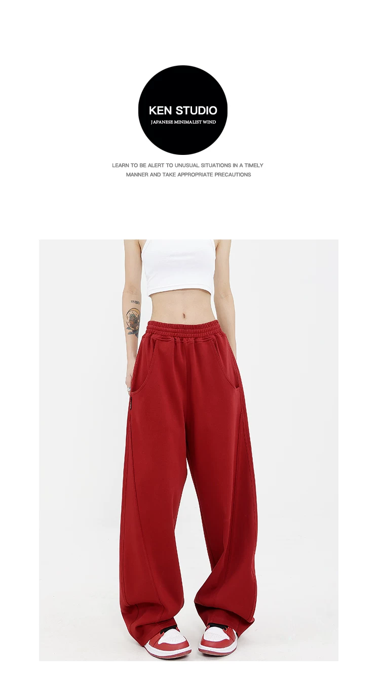 - KEN STUDIO2025 Xuân Thu Quần Thể Thao Màu Đỏ Nữ Cao Cấp Quần Dáng Chuối Quần Ống Rộng Quần Âu Quần Thể Thao Quần Dài
