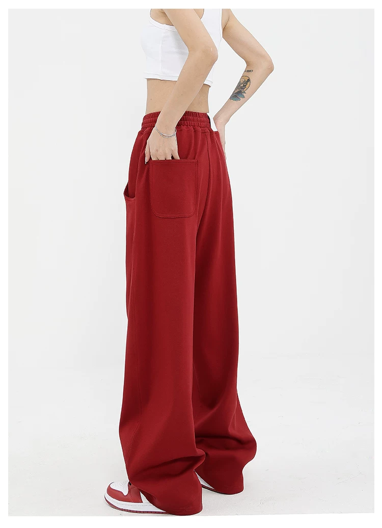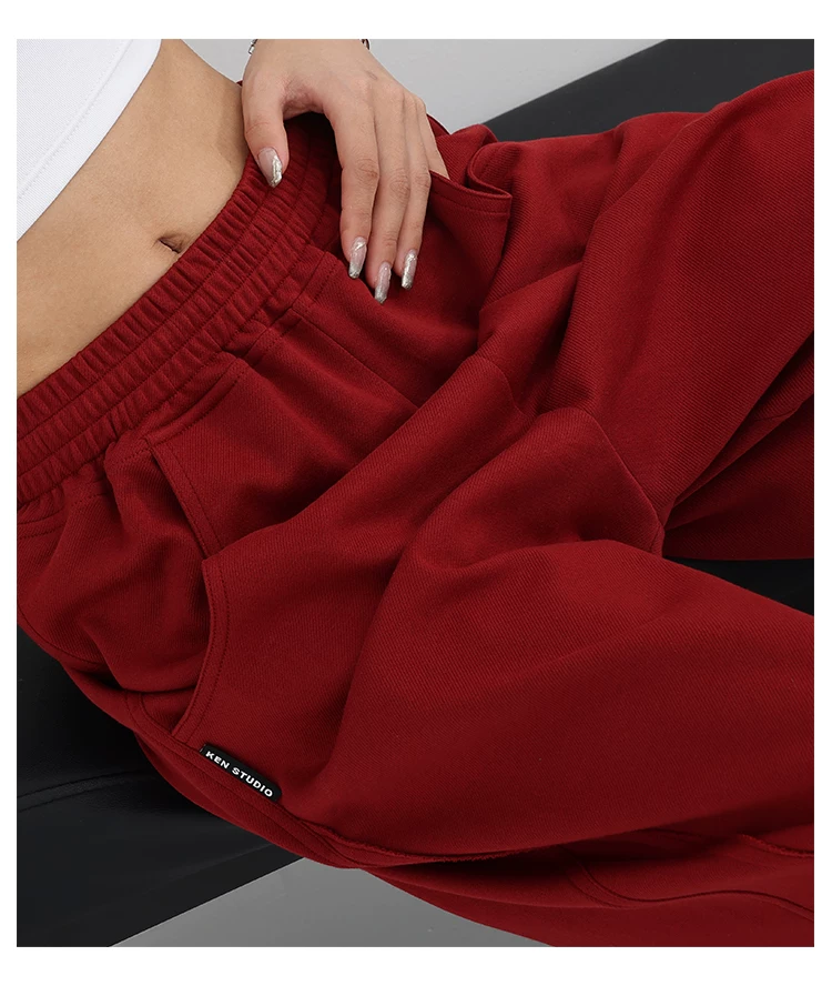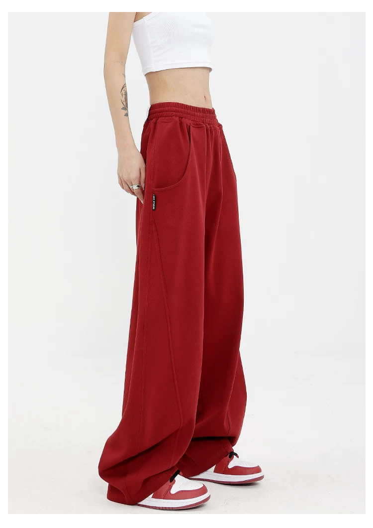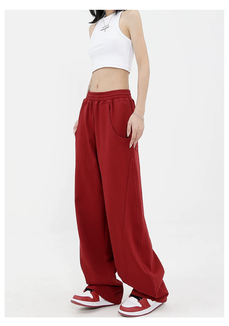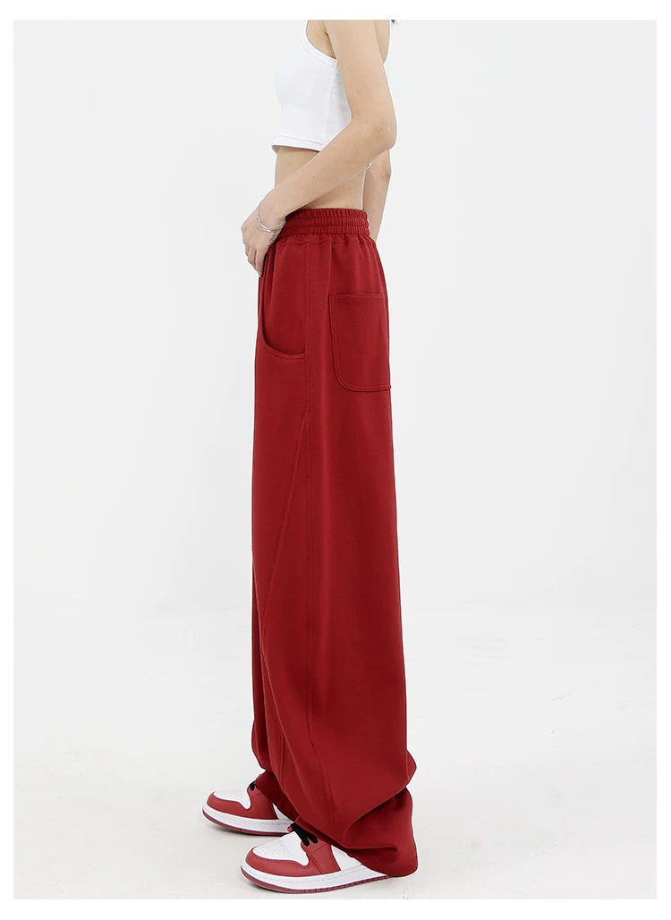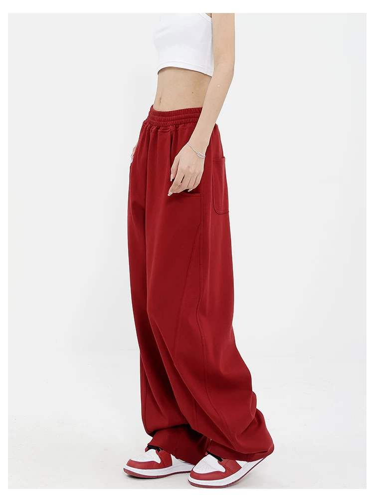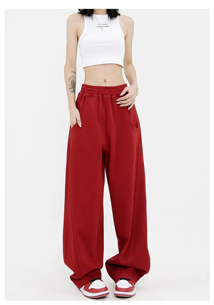 - KEN STUDIO2025 Xuân Thu Quần Thể Thao Màu Đỏ Nữ Cao Cấp Quần Dáng Chuối Quần Ống Rộng Quần Âu Quần Thể Thao Quần Dài