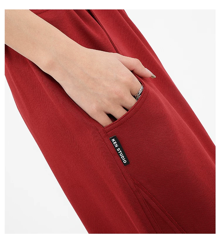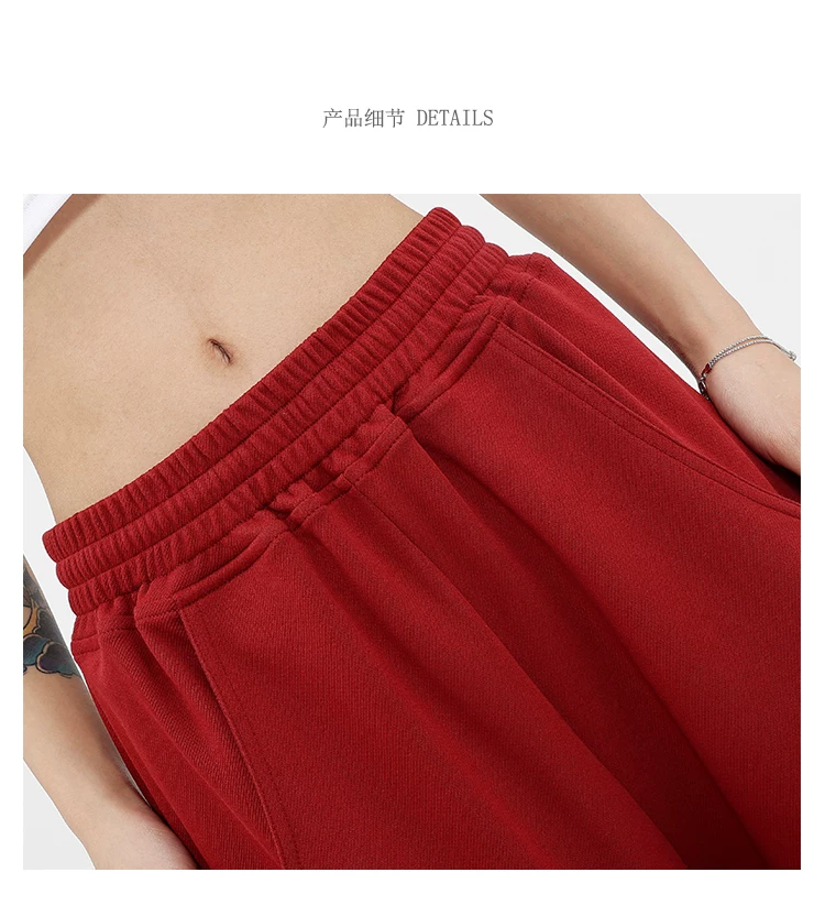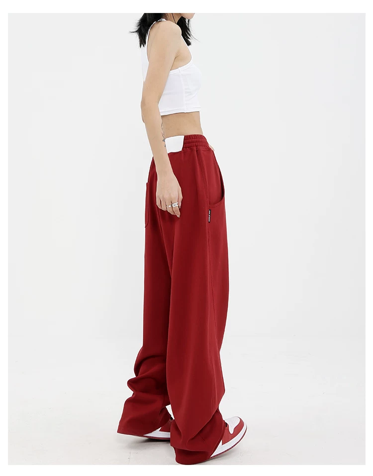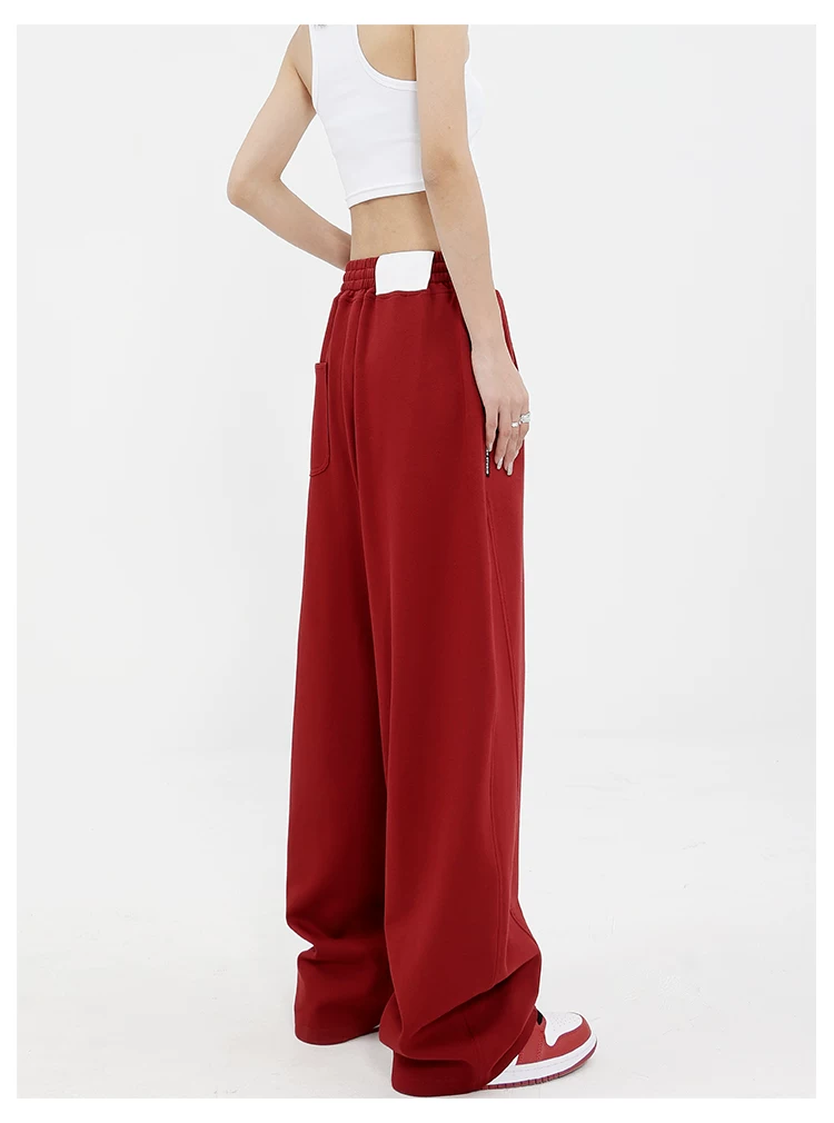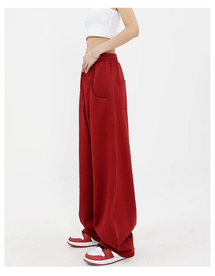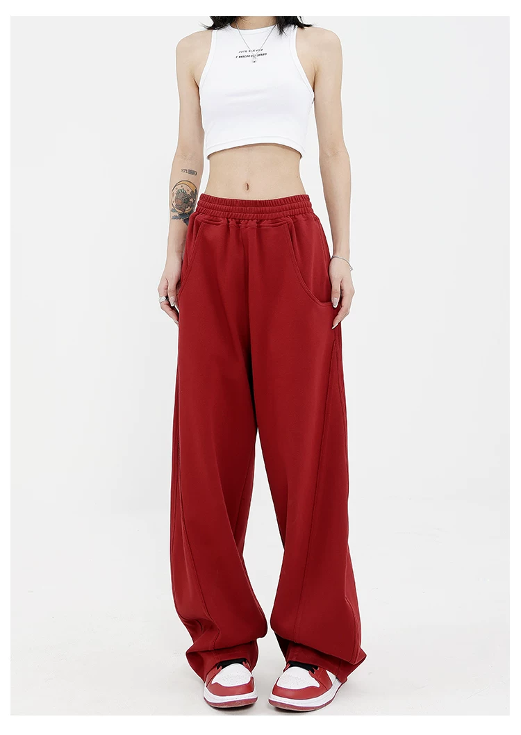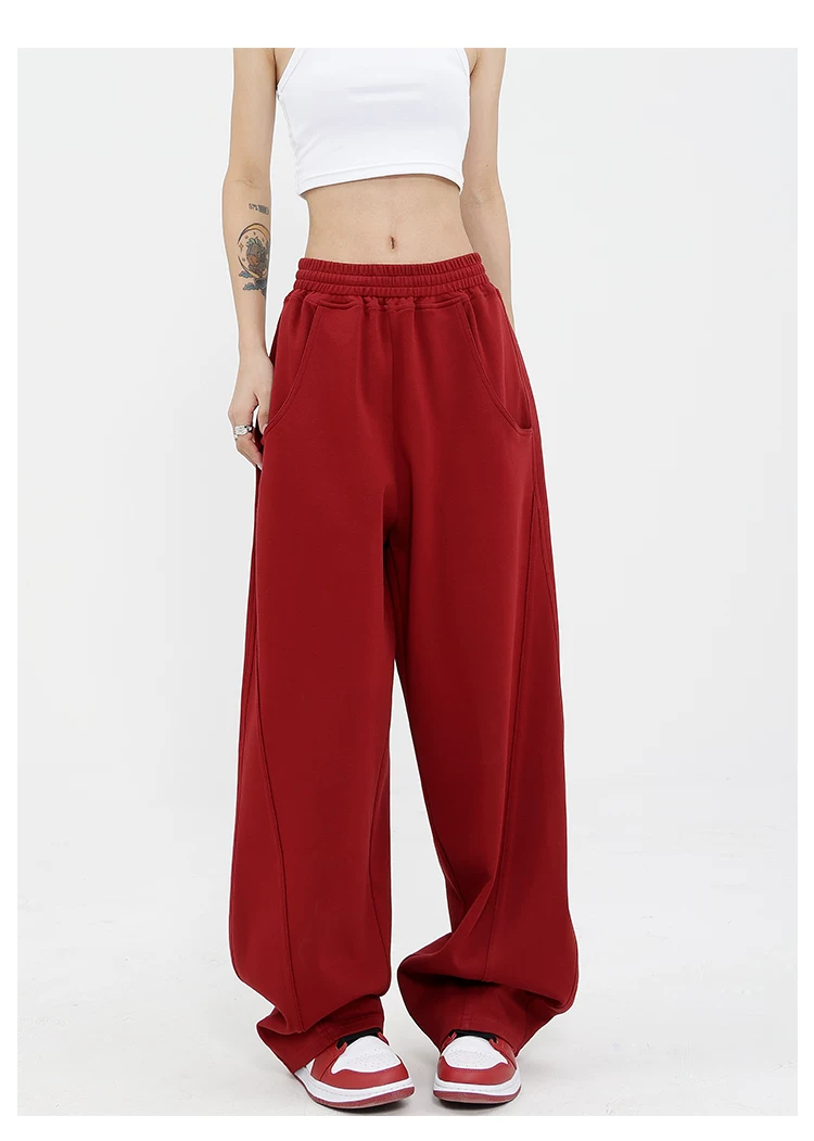 - KEN STUDIO2025 Xuân Thu Quần Thể Thao Màu Đỏ Nữ Cao Cấp Quần Dáng Chuối Quần Ống Rộng Quần Âu Quần Thể Thao Quần Dài