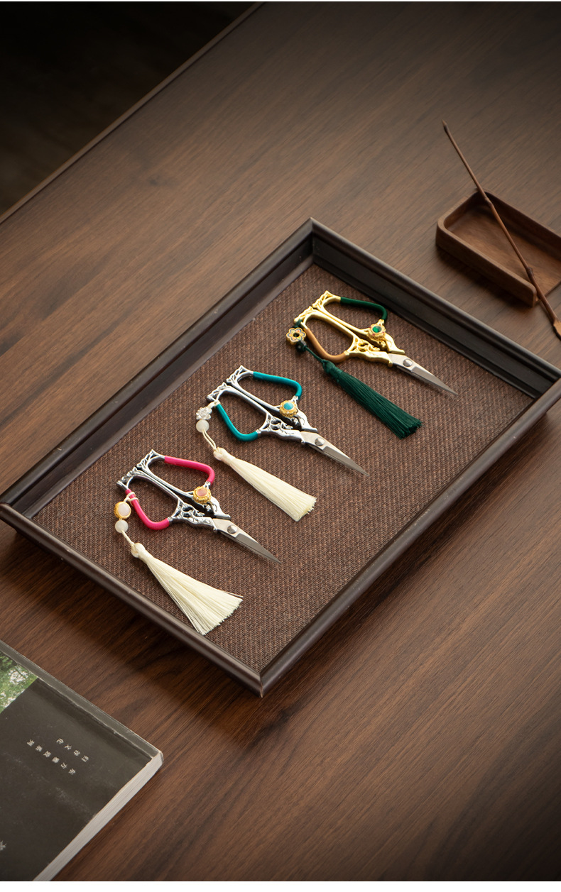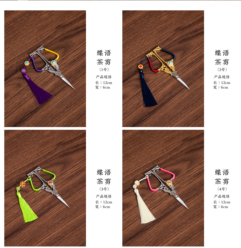 - Kéo cắt trà nhỏ đan tay nguyên bản tinh tế kéo nghệ thuật trà phong cách dễ thương kéo phụ kiện trà kéo thêu kim loại cho nữ