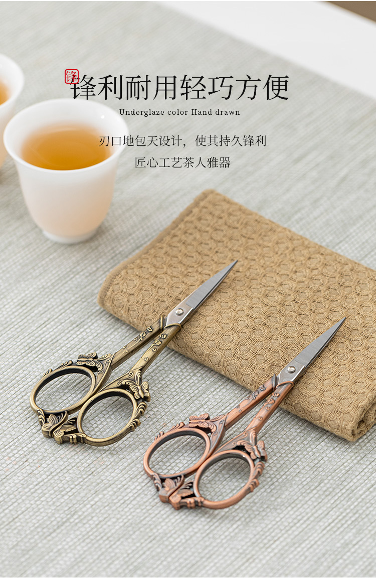 - Kéo nhỏ bằng titan bướm kéo trà thủ công gia dụng túi trà nghệ thuật túi trà kéo dụng cụ trà cổ điển phụ kiện trà đạo