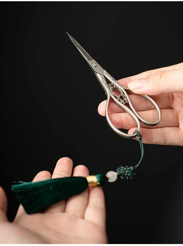 - Kéo nhỏ cổ điển gia dụng dao cắt giấy thủ công bằng thép không gỉ cắt túi trà đầu kéo dây phụ kiện trà đạo kiểu Trung Quốc lớn