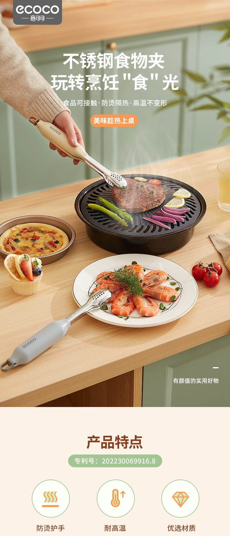 - Kẹp thực phẩm Kẹp thực phẩm nhà bếp kẹp silicon inox đặc biệt cho bít tết chiên dụng cụ nướng Thịt Kẹp Nướng chống bỏng